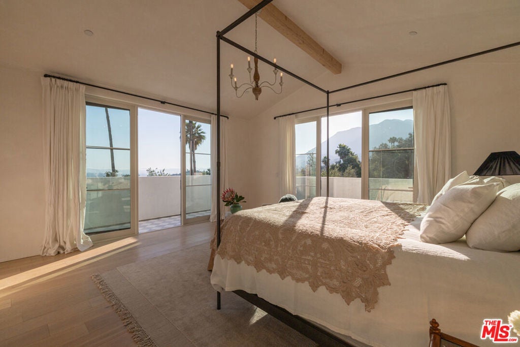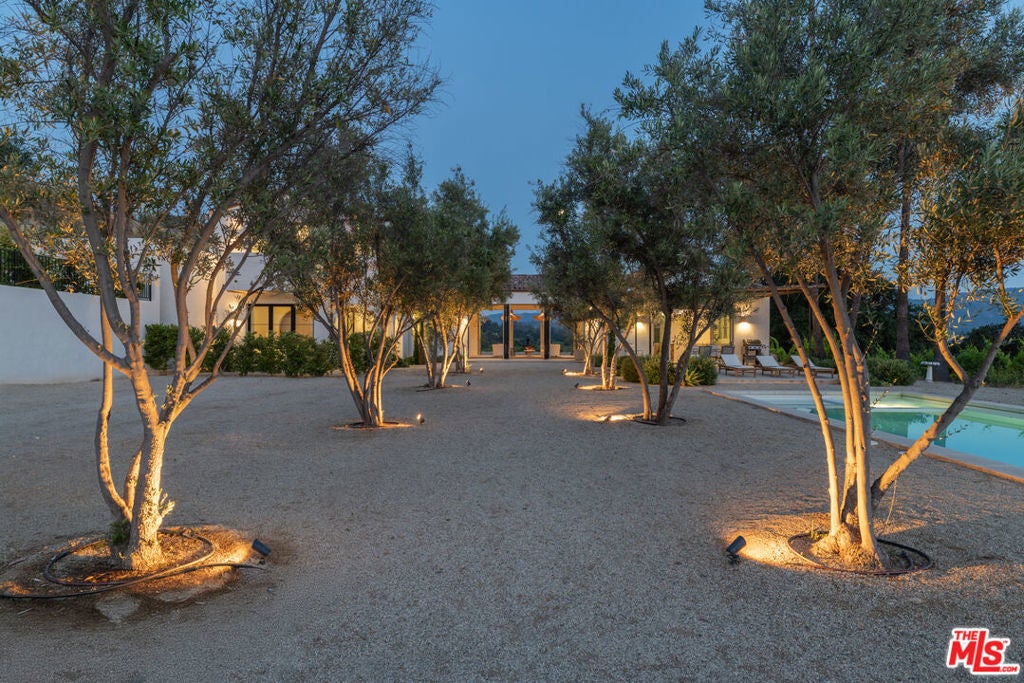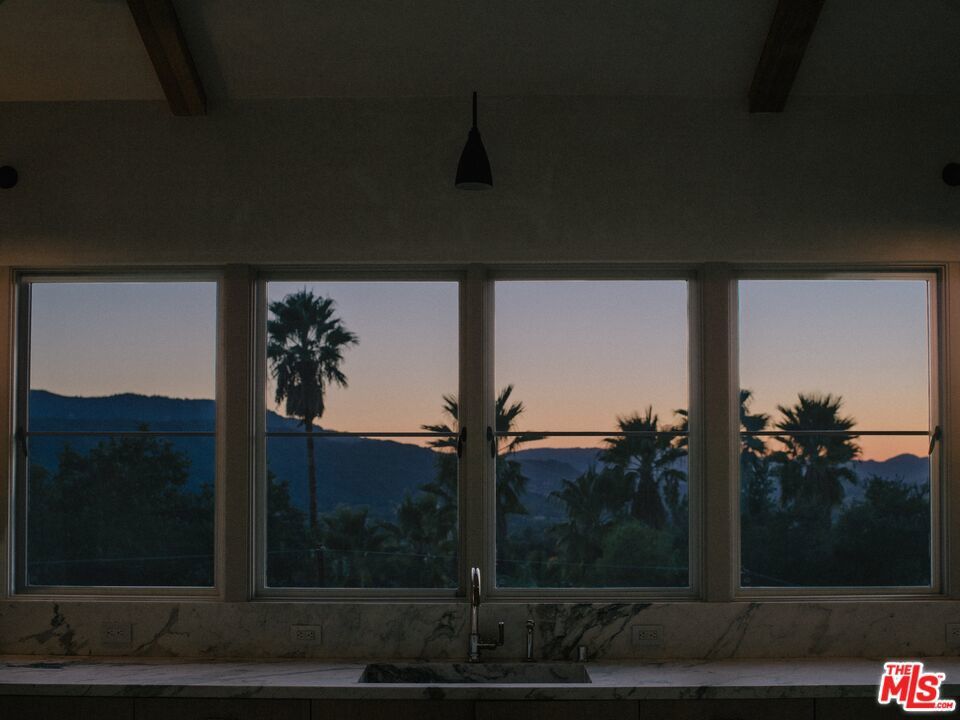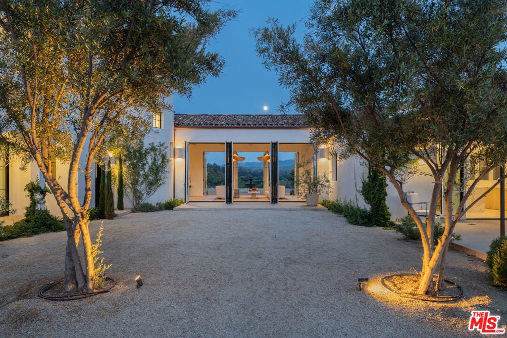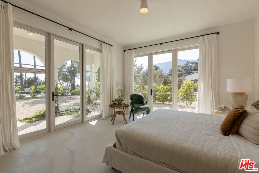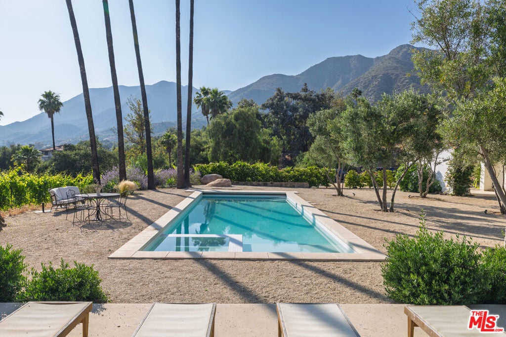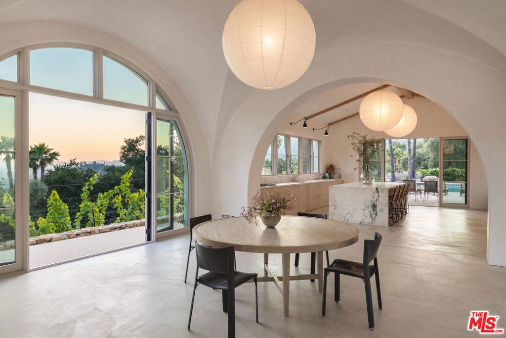 Perched on a private knoll in Ojai's coveted East End, this 2023-built estate blends modern Mediterranean design with refined living. The 5,100 sq ft villa sits on nearly two secluded acres and includes a fully licensed, organically farmed boutique vineyard with over 1,300 mature vines.Thoughtfully crafted with top-tier materials, the home features a dramatic great room with 12-foot ceilings, floor-to-ceiling French doors, groin-vaulted ceilings, and a sculptural circular staircase. White cement floors, hand-plastered walls, and arched passageways add timeless elegance.Designed for both entertaining and everyday luxury, the chef's kitchen boasts Sub-Zero refrigeration, Fisher & Paykel ovens, and Waterworks fixtures, flowing into open dining spaces and a veranda perfect for enjoying Ojai's "Pink Moment" sunsets.Four private bedroom suites, each with spa-style baths and outdoor terraces, provide serene retreats. The grounds offer ancient oaks, an olive allee, drought-tolerant gardens, a heated pool, spa, and multiple outdoor living areas.This estate combines beauty with function. Plans for an ADU, a potential winemaking facility, and safety features like fire-resistant materials, private hydrant, and emergency turnaround ensure long-term peace of mind.A rare blend of design, nature, and opportunitythis East End estate is more than a home; it's a legacy.