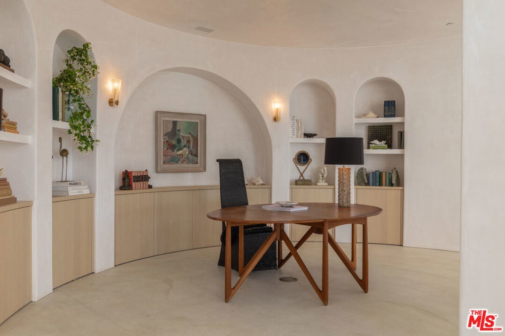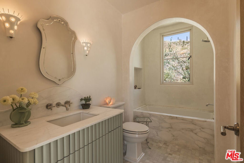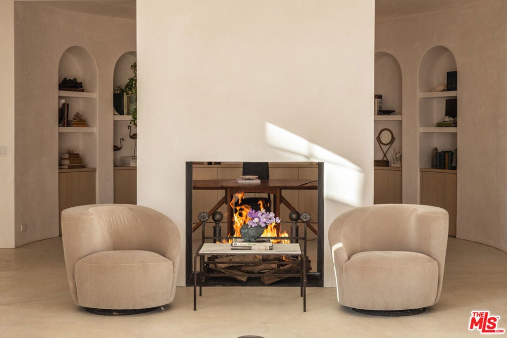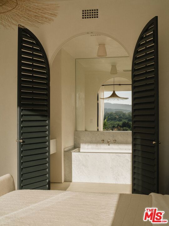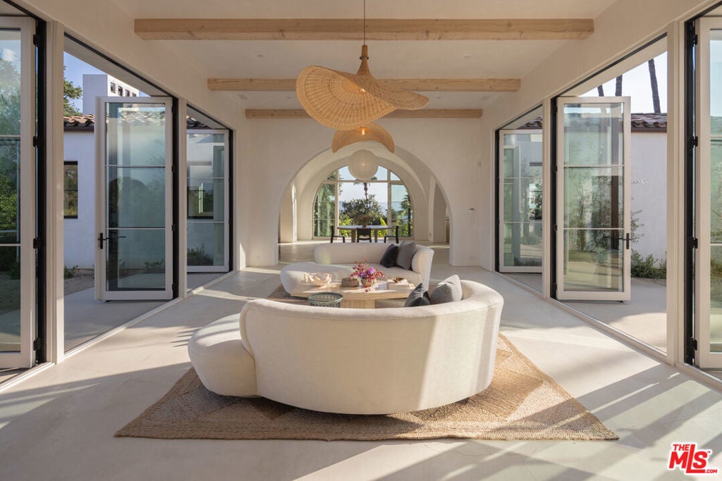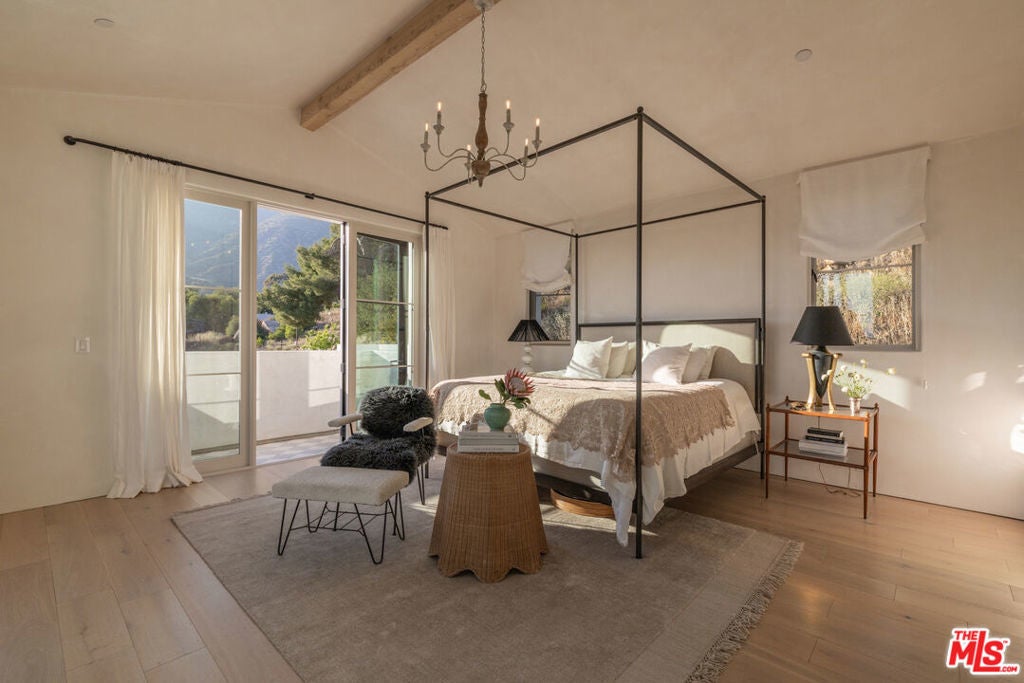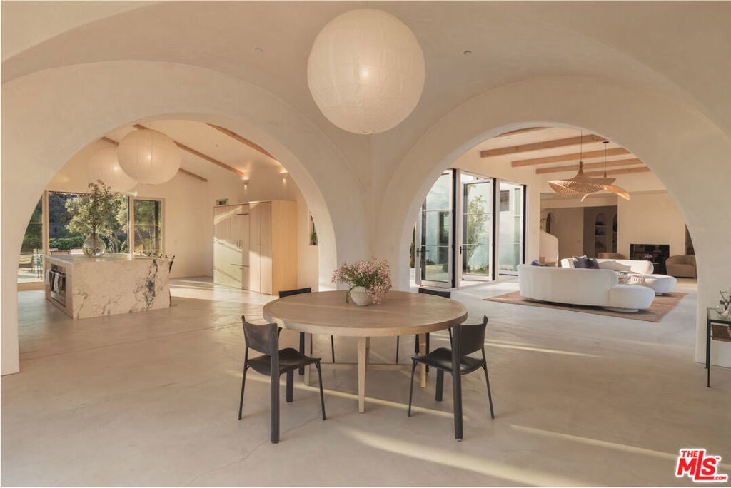 Perched on a private knoll in Ojai's coveted East End, this 2023-built estate blends modern Mediterranean design with refined living. The 5,100 sq ft villa sits on nearly two secluded acres and includes a fully licensed, organically farmed boutique vineyard with over 1,300 mature vines.Thoughtfully crafted with top-tier materials, the home features a dramatic great room with 12-foot ceilings, floor-to-ceiling French doors, groin-vaulted ceilings, and a sculptural circular staircase. White cement floors, hand-plastered walls, and arched passageways add timeless elegance.Designed for both entertaining and everyday luxury, the chef's kitchen boasts Sub-Zero refrigeration, Fisher & Paykel ovens, and Waterworks fixtures, flowing into open dining spaces and a veranda perfect for enjoying Ojai's "Pink Moment" sunsets.Four private bedroom suites, each with spa-style baths and outdoor terraces, provide serene retreats. The grounds offer ancient oaks, an olive allee, drought-tolerant gardens, a heated pool, spa, and multiple outdoor living areas.This estate combines beauty with function. Plans for an ADU, a potential winemaking facility, and safety features like fire-resistant materials, private hydrant, and emergency turnaround ensure long-term peace of mind.A rare blend of design, nature, and opportunitythis East End estate is more than a home; it's a legacy.