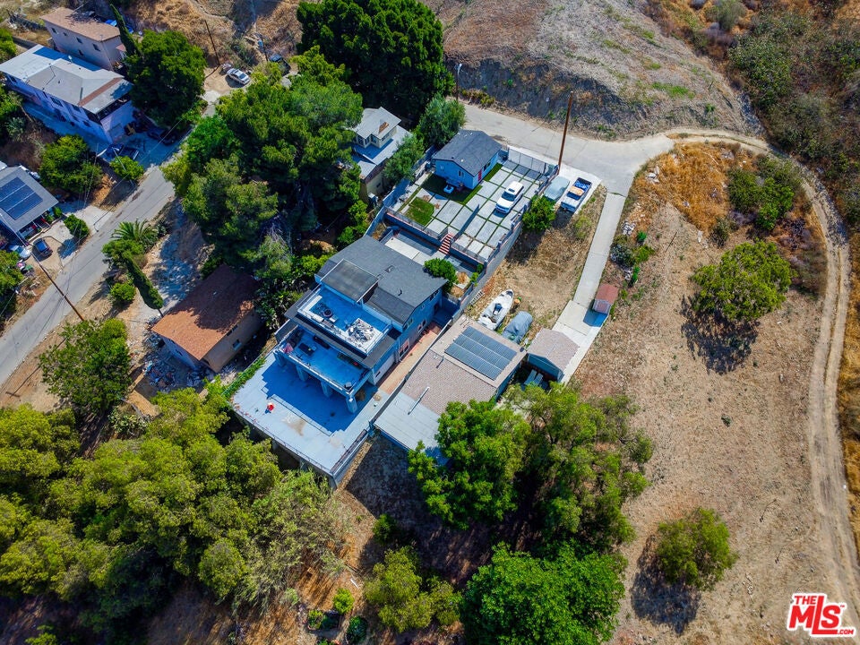 Perched high in the hills of Lincoln Heights, this 5-bedroom, 4.5-bath modern retreat invites you to experience its elegance, ease, and panoramic views of the downtown skyline! Inside, gleaming tile floors guide you to an open-concept living and dining area, blending effortlessly into a kitchen defined by stainless appliances, minimalist cabinetry, and a honeycomb backsplash. Three bright bedrooms grace the main floor, while two more, along with a stylish family corner and kitchenette, await on the lower level, where glass sliders open to an expansive entertainer's patio. Your generous primary suite features vaulted ceilings, a walk-in closet, and a chic ensuite. A flexible bonus room, a laundry nook, and a studio ADU with its own kitchen and bath add everyday versatility. Whether hosting under the stars on your rooftop deck or unwinding on one of several serene terraces, the city feels just far enough away. Located only a short drive from Dodger Stadium, local schools, major freeways, and the vast array of leisure and shopping options of DTLA, come explore a lifestyle with elevated design!
