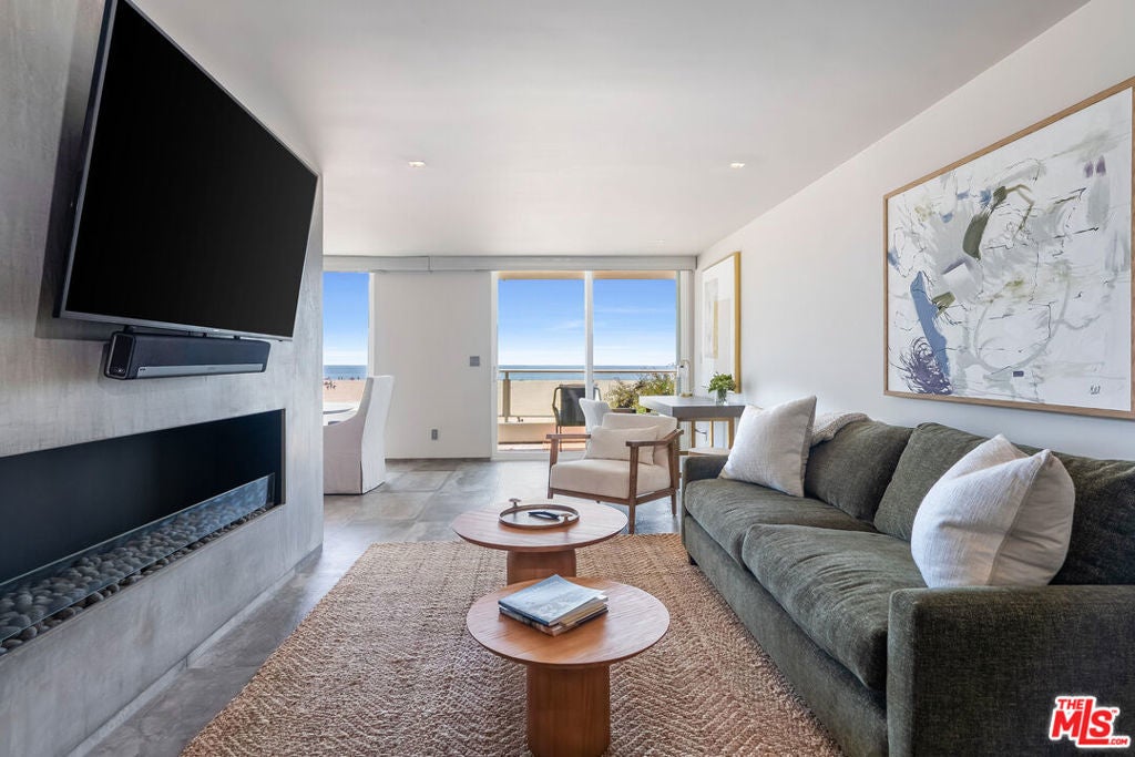 Perched along the sand on Palisades Beach Road, this meticulously renovated, spacious 2 bed/ 2 bath beachfront sanctuary offers an exceptional blend of contemporary elegance and highly coveted coastal living. Upon entering, enjoy breathtaking waterfront views from the boardwalk to the ocean waves crashing on the shoreline. This well appointed residence features designer artwork, furnishings, appliances, fixtures and sophisticated finishes. The gourmet kitchen features a Bertazzoni oven/range, engineered in Italy and complemented by sleek Kitchen Aid appliances. Embrace the enchanting coastline views from every room as you unwind, entertain, or discover cherished moments of tranquility whether you stay indoors or admire a sunset from the oversized balcony all while in close proximity to countless shops, restaurants and all Santa Monica has to offer. After a day at the beach, enjoy a luxurious steam shower followed by movie nights enhanced with a premium Sonos soundbar for an immersive sound experience. Be pampered in the bathrooms as they offer smart OVE toilets boasting a variety of bidet and temperature settings. The inviting Primary bedroom offers panoramic views, ample closet space and balcony access. The secondary bedroom is quite cozy with a private en suite balcony and access to the well equipped laundry room. Amenities include a fitness center, intercom access, 2 gated assigned parking spaces, storage and guest parking.
