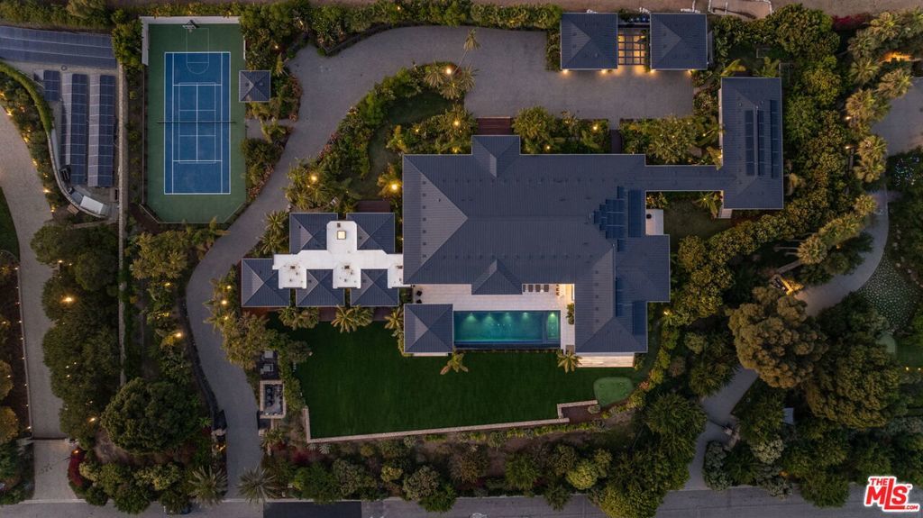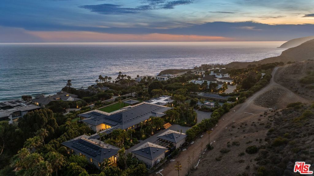 ***LUXURY PROPERTY AUCTION: 11-17 December. Accepting Starting Bids Through 10 December. Starting Bids Expected Between $15M-$20M. Earn an incentive by 10 December***A palatial single-story estate at MariSol Malibu, redefines sustainable luxury living. Built in 2023 by renowned architect Doug Burdge and inspired by the Four Seasons Hualalai, this certified net zero carbon residence captures the essence of Hawaiian resort living across two acres with breathtaking whitewater ocean views stretching to Catalina Island. The compound features tennis and basketball courts with pickleball, infinity pool pavilion, and a recently expanded backyard rivaling a sports pitch. Lush tropical landscaping and an interior glass bridge connecting main and guest houses create an island sanctuary. The nearly 2,000-square-foot primary suite opens to ocean waves while two kitchens with three center islands showcase Miele and Gaggenau appliances. Wellness amenities include gym, redwood sauna, and steam room. Built with sustainably sourced lava rock and low carbon concrete Southern California's first to meet Marin County standards this 100% electric home operates with Tesla Powerwalls and solar panels, representing the pinnacle of sustainable coastal living.