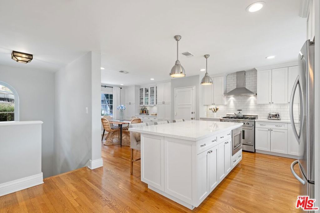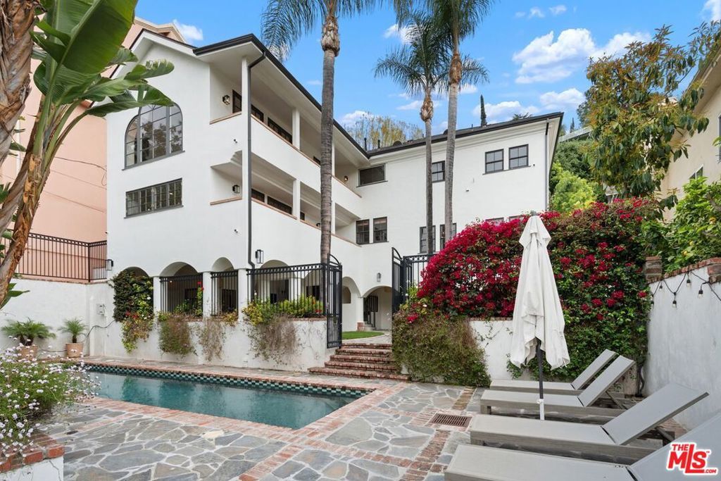 Welcome to your own private retreat nestled south of the boulevard in the coveted hills of Sherman Oaks. This stunning Santa Barbara-inspired hacienda has been thoughtfully upgraded to blend timeless architectural charm with modern comfort. Sunlight pours through expansive windows, illuminating rich wood floors and clean, elegant lines throughout.The gourmet chef's kitchen is the heart of the home, complete with stainless steel appliances, a generous center island with bar seating and a custom breakfast nook ideal for morning gatherings. An expansive formal dining room sets the stage for unforgettable dinners, flowing seamlessly into a sophisticated living room adorned with a fireplace, oversized windows and access to a sweeping balcony with scenic views.The romantic primary suite is a true retreat, featuring its own private balcony, a spacious walk-in closet and a spa-like en suite bath with a soaking tub, dual walk-in shower and double vanities. Three additional bedrooms offer high ceilings, large windows and designer details, ideal for guests. Downstairs, discover a sprawling bonus room with original Spanish tile floors great for a game room, home gym, office or creative studio. This versatile space opens directly to your backyard oasis, where tropical palms frame a sparkling lap pool, BBQ station, lush turf and multiple areas for lounging or dining al fresco.For added convenience and privacy, the property includes a separate attached guest quarters with its own entrance, two bedrooms and a full bath ideal for visitors. This home is the ultimate blend of smart home technology, luxury, warmth and California lifestyle with many upgrades including new roof, HVAC, outdoor Kitchen/BBQ, exterior lighting, epoxy garage flooring, cameras and pool pump. Don't miss your chance to own this one-of-a-kind sanctuary south of the Blvd in Sherman Oaks.