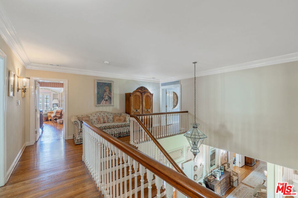 OWNER MAY CARRY UP TO $5,000,000.00 FOR 5 YEARS AT 5% INTEREST & GREAT NEW PRICE. Stately Hancock Park Estate Overlooking Wilshire Country Club. Nestled on one of Hancock Park's most coveted streets, this grand Colonial estate offers sweeping views of the Wilshire Country Club fairways and a lifestyle of timeless elegance. On the market for the first time in over 43 years, this exceptional residence combines classic architecture with gracious proportions and extraordinary indoor-outdoor living. A wide, elegant foyer spans the front of the home, setting the tone for the sophisticated interiors. The formal living room features a stately fireplace and garden views, flowing seamlessly into a library complete with a second fireplace. The impressive formal dining room easily seats 12 and overlooks the manicured rear gardens, creating the perfect setting for memorable gatherings. At the heart of the home is a beautifully appointed chef's kitchen with top-tier appliances, a large center island, and a sunny breakfast area framed by walls of windows. An adjacent family lounge with fireplace offers a comfortable space to relax and entertain. Also on the main level are two powder rooms, a maid's suite with bath, and direct access to a spacious three-car garage. The wide, sweeping staircase leads to a luxurious primary suite with panoramic views of the golf course. This serene retreat includes a sitting area with fireplace, generous dressing room, and a well-proportioned en-suite bath. Four additional bedrooms, three updated bathrooms, a playroom (or potential sixth bedroom), a laundry room with kitchenette, and a large luggage/storage closet complete the upper level. The expansive backyard is designed for entertaining, with multiple outdoor living and dining spaces, a private pool, fireplace patio, and unobstructed golf course views all surrounded by lush landscaping. A true Hancock Park classic, rarely available and set in one of the neighborhood's most prestigious locations. . Private showings only. No public open houses. Fireplaces are decorative.