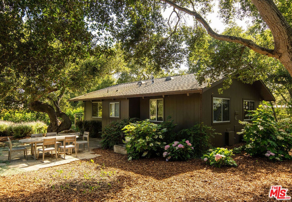 A rare midcentury modern architectural offering in the heart of Montecito, The Erving House, described as a "glass tent" by Time magazine in 1951,is a singular expression of architectural and landscape mastery, gracefully nestled on 2.7 acres of private, artfully curated grounds. Designed in 1950 by renowned architect Lutah Maria Riggs during her iconic modernist phase, and complemented by the legendary California landscape architect Thomas Church, this estate exemplifies the essence of indoor-outdoor living.Enter through private gates, where a meandering driveway weaves beneath a canopy of majestic oaks, setting a serene, cinematic approach to the residence. It culminates in a spacious motor court, where the home's striking flat-roof carport seamlessly marries form and function with timeless elegance.A covered walkway leads to the home's entrance, where a dramatic double-height foyer with floor-to-ceiling glass walls flood the space with natural light and frame expansive views of the surrounding landscape and mountains. This breathtaking entrance sets the tone for a home in constant dialogue with nature.The main living space unfolds with a soaring pitched ceiling, its apex seemingly reaching toward Montecito Peak, and a sculptural, biomorphic Santa Barbara stone fireplace, a subtle homage to Brazilian architect Oscar Niemeyer, Riggs' contemporary and collaborator. Walls of glass, both fixed and sliding, span the length of the room, opening to terraces and gardens and dissolving the boundaries between inside and out.The primary suite is a private retreat, featuring a spa-like bath, dual large dressing rooms, and tranquil views of the gardens and the coastal range. The home office offers inspiring solitude, framed by vistas of mature landscape and mountain ridgelines.The European-style kitchen is outfitted with custom Poggenpohl cabinetry and top-tier appliances, crafted with the serious chef in mind. The adjoining formal dining area also enjoys views of both the northern mountains and the home's terraced gardens and native flora beyond.Adjacent to the main house is a detached studio, providing flexible use, as a guest bedroom, creative workspace, or private retreat, its large windows revealing the natural beauty of mature oaks. Across the property is a serene 1-bedroom, 1-bath creekside guest house offering peaceful accommodations far enough from the main home to feel entirely its own.The grounds, once altered by previous owners,have been thoughtfully revived by landscape architect Susan Van Atta, who honored much of Church's original vision while adding her own artistry through native plantings. Wander through fruit orchards, lavender fields, and raised vegetable gardens, or enjoy a game at the bocce ball court, each element curated for both beauty, sustainability, and enjoyment.The Erving House is more than a residence, it is a living piece of architectural history and one of Montecito's most important homes. It offers unparalleled privacy, serenity, and a lifestyle that celebrates the seamless interplay between nature and design. Additional features include a high- functioning well with RO system for landscaping and a full power backup generator.