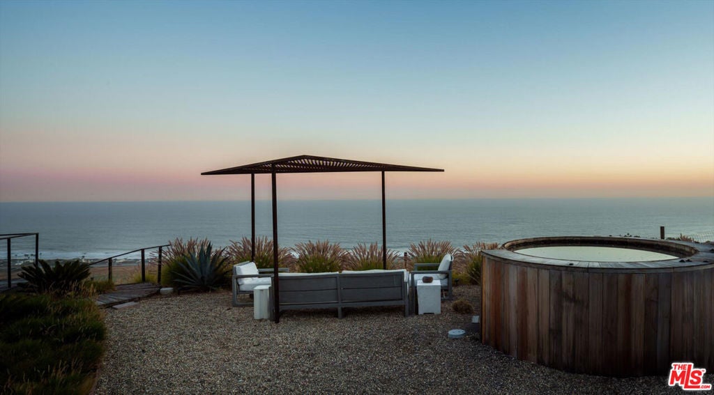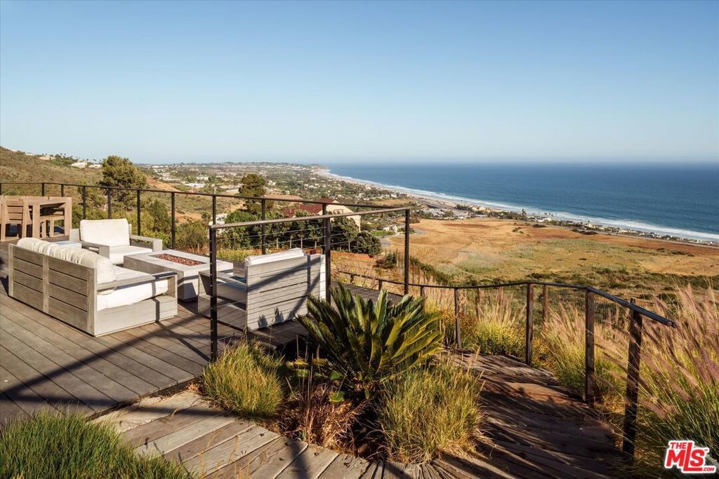 Set high above the Pacific on 3.28 private acres, this stunning Malibu coastal retreat offers unobstructed vistas spanning Zuma Beach, the Santa Monica Mountains, Point Dume, Catalina, and the Channel Islands. Merging privacy, scale, and refined architecture, this property represents a rare opportunity just moments from Broad Beach and Vintage Grocers. Crafted to showcase its spectacular surroundings, the residence embraces a modern coastal aesthetic defined by clean, elegant lines and seamless indoor-outdoor living. The expansive great room features wraparound ocean views, Italian oak floors, and a striking sculptural stone fireplace. Floor-to-ceiling pocket doors dissolve boundaries, opening onto a sweeping entertaining terrace perched above the bluff. Beyond the main terrace, an ocean-facing deck provides dedicated spaces for dining and lounging, thoughtfully positioned to capture the evolving coastal light from dawn until dusk. The chef's kitchen impresses with marble countertops, premium appliances, a full butler's pantry, and a sun-filled breakfast nook opening onto the deck. Additional living spaces include a den with an adjoining an ocean-view office with a private balcony. Upstairs, the luxurious primary suite boasts a private terrace with panoramic views, fireplace, sitting area, dual walk-in closets, and an expansive ensuite bath. Three additional bedrooms offer diverse perspectives of the coastline, mountains, and gardens. The beautifully landscaped grounds unfold in tranquil layers: a bluff-top lounge deck, meticulously terraced native plantings, a serene Japanese soaking spa paired with a sunken conversation pit, and a charming boardwalk pathway leading to a secluded sandy retreat. Additional highlights include a three-car garage complete with a gym and laundry area, a private well with storage tanks, and fully fenced grounds. 6007 Trancas Canyon embodies a rare harmony of thoughtful design and the breathtaking natural beauty of Malibu's iconic coastline.