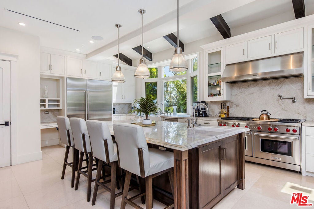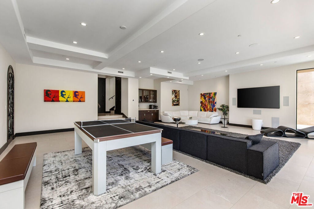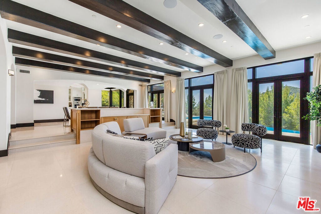 Best price per foot in Beverly Hills. Experience a life of impeccable style and supreme comfort at this expansive, move-in-ready estate designed for the modern entertainer, with a variety of terraces, lounging areas, and outdoor spaces that harmonize with the home's natural surround and dramatic vistas. It enjoys a unique position immediately neighboring celebrity-rich Beverly Park's 24-7 guard-gate, with its around-the-clock patrol, and overlooks the exclusive community's mansion-studded grounds. The home's organic cobblestone facade is complemented by bold, sharp lines, resulting in a fusion of classic and contemporary architecture. Enter the elegant foyer to discover a totally done layout with everything included. In the step-down living room, bursts of greenery appear through arched windows flanking the river-rock fireplace. Exposed beams overhead repeat into the formal dining room as a bank of French doors open to the outside. The gourmand's kitchen features an oversized island, farm and prep sinks, garden window, an abundance of cabinetry, beautiful stone backsplash, recipe desk, and chef-grade appliances including Wolf range with hood and pot filler. In the family room, floor-to-ceiling paned windows frame gorgeous rolling hills and mountains. Upstairs, the primary suite has its own private balcony plus lavish spa-inspired bath with jetted marble tub, separate oversized shower, and dual-sink vanity. A large walk-in closet has built-ins and dresser island. A wraparound terrace with fireplace can be accessed by primary and secondary bedrooms, perfect for evening conversation fireside. Other amenities include an elevator, large media/gaming room, massage area with steam room, wine cellar, and gated driveway leading to a massive eight-car garage, an auto enthusiast's dream! Facing breathtaking views, the rear grounds include an infinity pool and spa, baja shelf, multiple gathering and lounging patios, and outdoor dining room with barbecue for dining al-fresco. Ascend the Tuscan spire to the top-most-level and behold 360-degree vistas from the sprawling rooftop deck. Relish this fresh, private lifestyle just moments to Sunset Boulevard, The Beverly Hills Hotel, the fine dining and shopping of Beverly Hills, and all the Westside has to offer. Priced to sell.