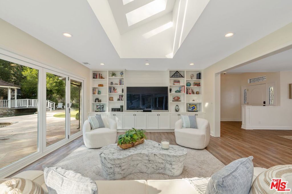 Situated on an expansive 1.2 acres, this beautifully crafted single-story home with separate guest house is located in the highly sought after neighborhood of Hidden Hills! $1,000,000 in upgrades! The property offers a 6-bedroom, 6-bathroom main house spanning 3,983 square feet of open-concept living. Designed with entertaining in mind, this home features bi-fold patio doors that seamlessly connect indoor and outdoor spaces, opening to a private, spacious yard with a sparkling pool, raised spa, serene gazebo, and a tranquil Koi Pond. The gourmet kitchen is a chef's dream, boasting a spacious island with premium finishes perfect for hosting family and friends. The newly added primary suite is a true sanctuary, featuring vaulted ceilings, abundant natural light, and a luxurious en-suite bathroom with a rainfall shower and jacuzzi tub. The home also features 5 beautifully appointed fireplaces throughout. Equipped with an indoor sprinkler system. Every detail has been thoughtfully designed for comfort and sophistication. In addition to the main home is a charming 557-square-foot, 1-bedroom, 1-bathroom guest house, with separate street access which can be used for a studio, gym, or a source of rental income. Beyond the home, the vibrant Hidden Hills community offers an array of exceptional amenities. Join neighbors at the community center for weekly summer BBQs and a variety of HOA hosted social events. The center features a large pool and spa, tennis, pickleball and basketball courts, a BBQ area, a private theater and recreational room. Horse enthusiasts will appreciate the equestrian facilities, including riding arenas and miles of trails. Guard gated. Don't miss this rare chance to live in a truly special community that combines elegance, leisure, and connection. Make this Hidden Hills treasure your forever home!