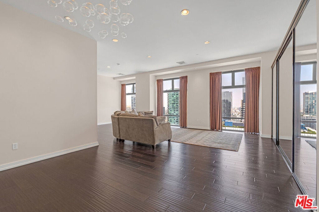 Breathtaking city light views of Downtown Los Angeles! Private entrance to an open floor plan delightful and relaxing DTLA loft, this home has 2 spacious bedrooms with the potential to be 2 bedrooms or office, 2 full baths with modernized details throughout. This charming, chic expansive open floor plan invites with an gorgeous European inspired gourmet kitchen with Italian cabinets, corian countertops and GE Monogram appliances. The great room welcomes with spectacular views featuring floor to ceiling windows while embracing a luxurious dining area to entertain and display an exquisite gallery. Hardwood floors embrace the loft allowing for comfort and relaxing ambiance while enjoying mesmerizing views. High ceilings expose the open feel to enjoy captivating evenings enjoying the amazing L.A. nightlife. Two individual parking spaces in a secure garage with 24-hour onsite security, new fitness center, movie theater and large entertainment room located off the main lobby. Located across the street from Whole Foods, CVS Pharmacy and Ralphs just two blocks away. Close shopping, restaurants and near 101, 10 and 110 freeways.