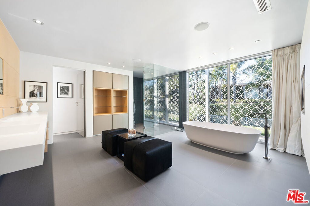 Nestled on Trousdale Estates' hillside, this Beverly Hills jewel presents an awe-inspiring 180-degree vista panoramic view stretching from downtown LA to the enchanting Catalina Island, adored from the infinity edge pool/jacuzzi and the inviting Primary suite within the 5-bedroom modern villa. Steve Hermann's redesign prioritizes harmonious indoor-outdoor integration and abundant natural light. This residence embodies luxury intertwined with modern conveniences, impeccably suited for its prestigious setting. The property features an expansive yard, Poliform kitchen/closets, Crestron home automation, Vantage lighting, and top-tier finishes, culminating in an emotionally compelling masterpiece of flawless design.