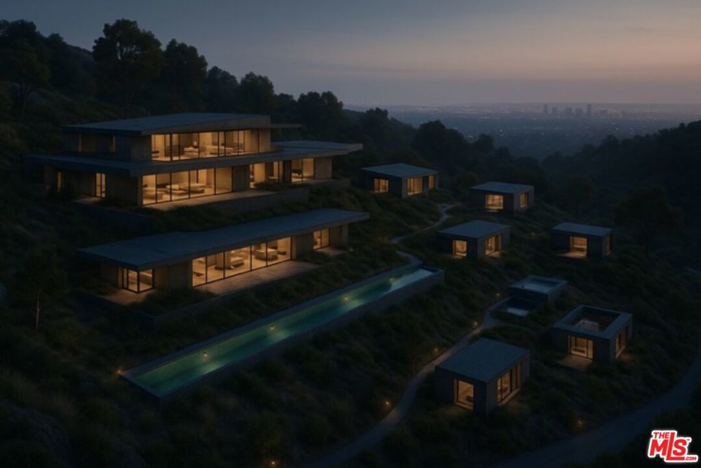Strategic investment opportunity in the heart of the Hollywood Hills. Offered for the first time in decades, this ultra-private, gated estate represents a rare chance to acquire one of the largest and last developable parcels in the core of the Hollywood Hills. Totaling approximately 2.5 acres of buildable flat and gently sloped land, the property combines location, scale, and historic pedigree making it a premier trophy asset. Fully executed architectural (Baumschlager Eberle/ SPF:a Studio Pali Fakete) plans available and a lot line adjustment nearly complete; dividing the lot into two parcels, lower and upper. Located just above Sunset Boulevard in the Hollywood Foothills, adjacent to Runyon Canyon and Wattles Park estate, offers protected greenbelt surroundings, panoramic 360-degree views, and seamless access to both central Hollywood and the Westside. This unique blend of privacy, views, and centrality is increasingly rare and virtually impossible to replicate under current zoning and topographical constraints. The estate includes a lot line adjustment with two parcels, each offering expansive city views and discreet access. Together, they present a compelling value-add opportunity to build a landmark luxury compound on one of L.A.'s largest contiguous residential lots, develop two premier view estates with exceptional resale potential, create an income-producing live/work artist retreat or creative campus, or establish a private family estate or trust-held generational asset with long-term appreciation potential. Originally built in 1923, the existing Andalusian-style structure totals approximately 5026 sf and was previously owned by screen legend Raymond Burr and later music executive Miles Copeland III. While the home may no longer meet modern standards, it provides an architectural footprint and historic narrative that may support rehabilitation tax incentives, or luxury adaptive reuse strategies. Two legal parcels offer flexibility for dual development. The property has an entitlement history that includes multiple historic permits for retaining walls, greenhouse structures, and auxiliary buildings. Inventory of large hillside development sites with flat pads and city/ocean views is virtually nonexistent. Exit strategies include custom resale, spec luxury homes, family compound, or long-term land banking. Structure: 8,697 sq ft (combined square footage of main house (5,026 +sq ft) and auxiliary structures - all tear-down or renovation candidates). Parcels: Approx. 1 acre + 1.5 acres = 2.5 buildable acres. Views: Downtown to the Pacific Ocean. Location: Above Franklin Ave, just north of Sunset Blvd. This is a strategic acquisition for investors seeking a secure foothold in one of Los Angeles' most iconic and supply-constrained enclaves. The property combines intrinsic land value, irreplaceable geography, and multiple monetization pathways. See the documents tab for proposed architectural plans. Tree report available upon request.