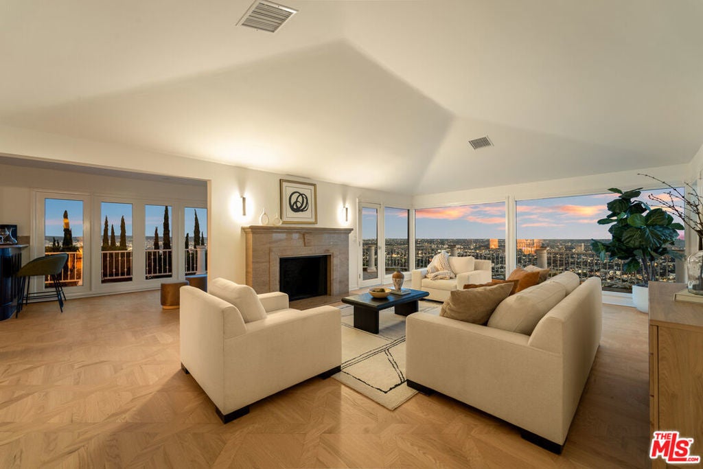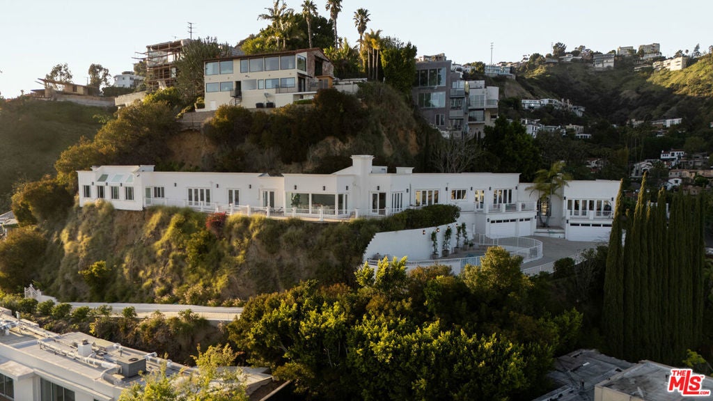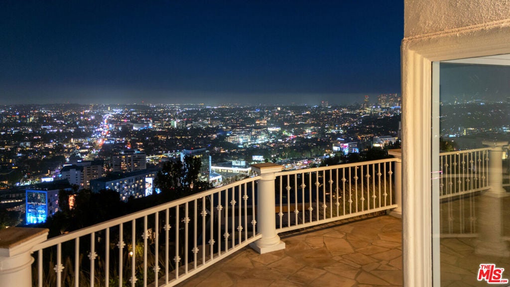 Presenting a remarkable opportunity to own a spectacular view estate perched above the famed Sunset Strip with incredible 270-degree views, among the very best in LA, that stretch from downtown to the Pacific. Move in today and refresh over time or fully redevelop, remodel, reimagine, or build anew. The possibilities are endless in this coveted, iconic locale! Up a gated, private driveway, the property wraps around its own promontory to provide dazzling vistas from multiple vantage points, balconies, patios, and nearly every room. Enjoy the pleasure of optimal indoor/outdoor flow from the foyer, bar/salon, formal living room, dining room, and bedrooms, each opening to a vast wraparound terrace. Dine-al fresco, entertain under the stars, or lounge poolside amidst striking panoramas that must be seen to be believed. The primary suite includes a bathroom with jetted tub, separate glass shower, and dual-sink vanity, giving way to a bonus living area, gym, or dance studio with skylights and fireplace. The kitchen is replete with custom cabinetry and cooktop with hood. A nearby breakfast room connects to the guest wing which was previously a separate structure and has been adjoined to the main house to create a shared lounge with patio access. The guest house offers its own separate patio, fireplace, wet bar, dining area, and kitchen, perfect for an end-user who wants to refresh and/or utilize the space for ADU income potential or short-term vacation rentals (buyer to verify local requirements). Welcome to an incredible location just moments to the area's very best shopping, fine dining, entertainment, nightlife, and so much more.