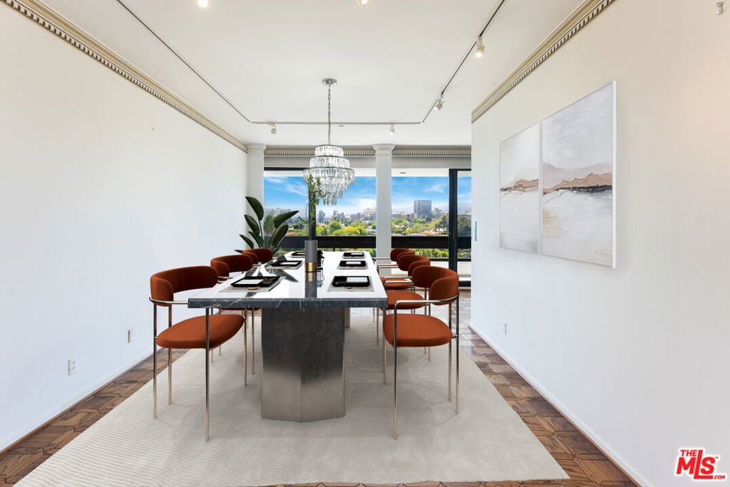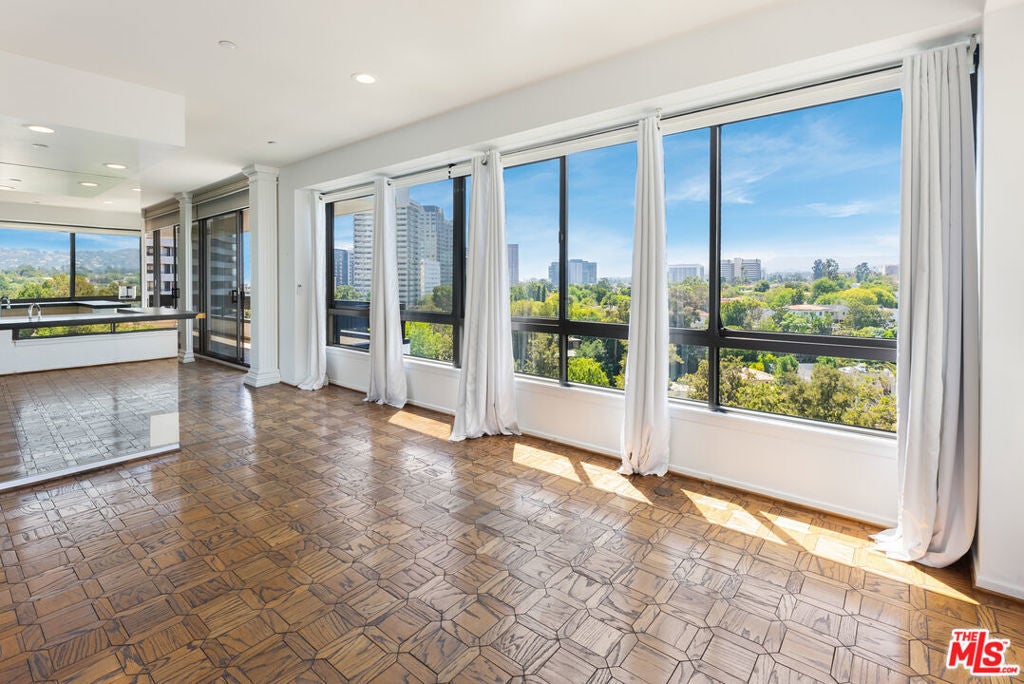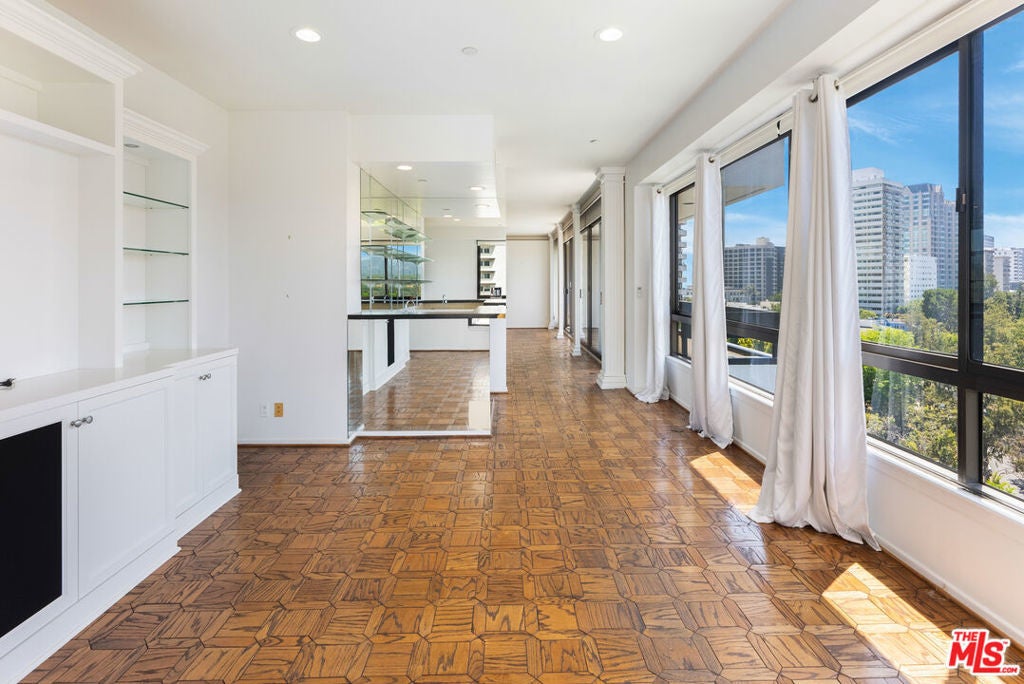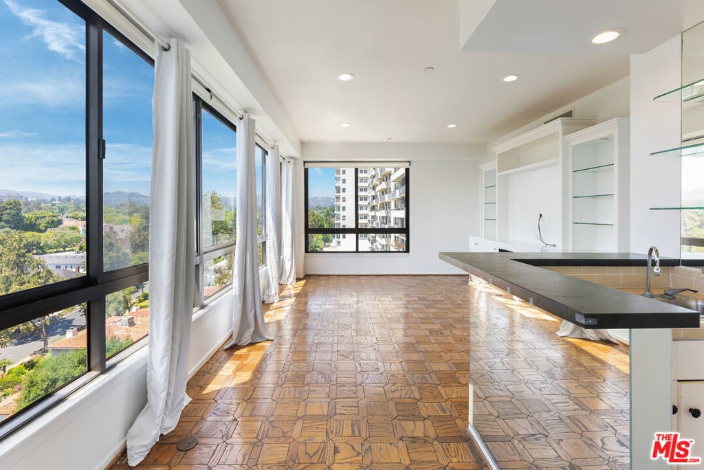 Great condo on the Wilshire Corridor in the Wilshire Regency just under 2,400 sf. Located on the "back" of the building with beautiful views of Holmby Hills and UCLA. Large open floor plan with large windows and tons of light, family room/tv room, living room and dining all flow open to each other. The kitchen is remodeled with white cabinets and stone countertops, a great center island and newer appliances. Huge primary bedroom with 3 walk-in closets and views of Holmby Hills. The primary bath is remodeled with white cabinets and stone countertops. The second bedroom is ensuite and a great size. Full service building with valet, doormen, parking, storage, pool, gym, and recreation room for entertaining large groups.