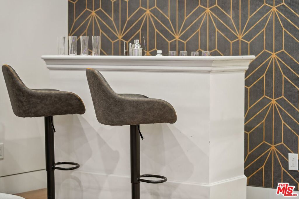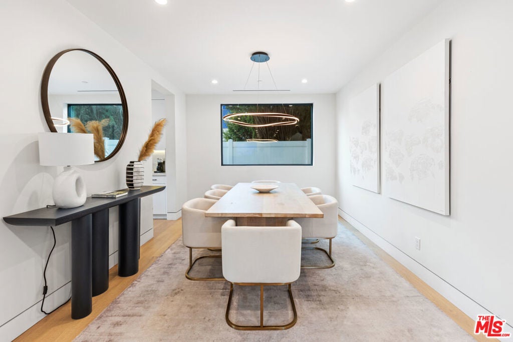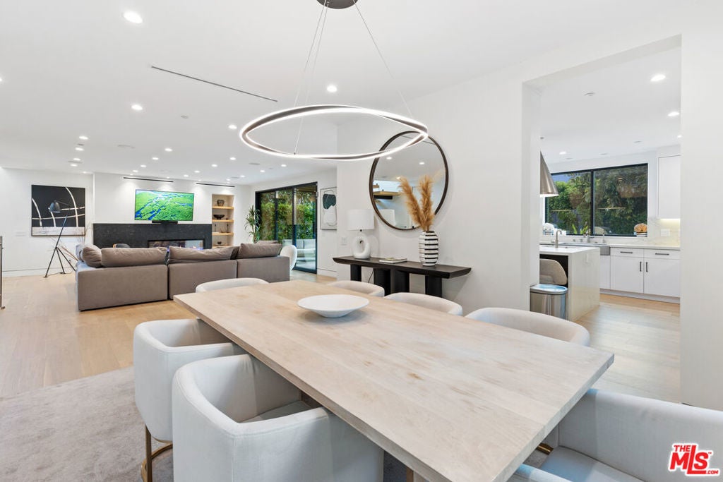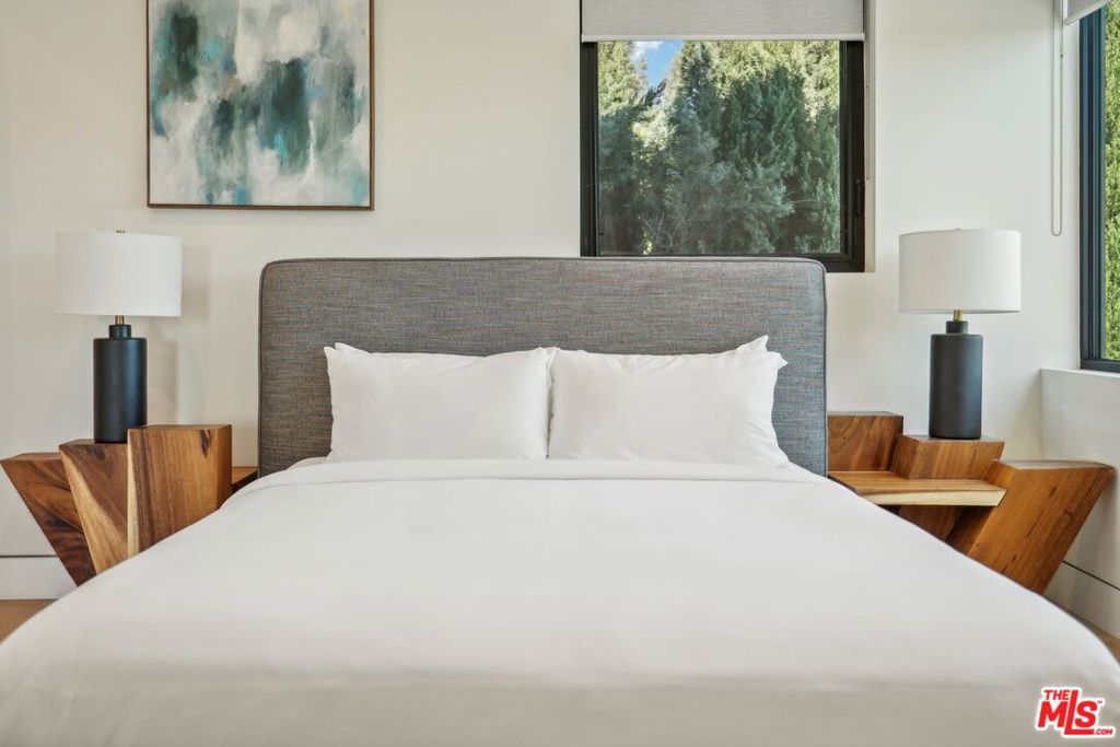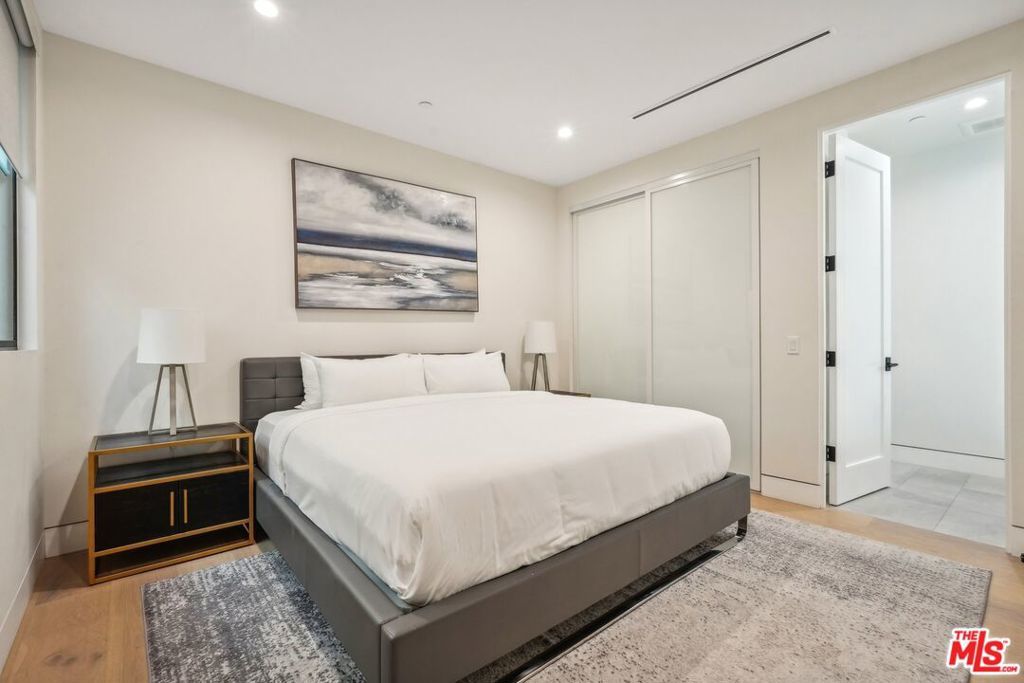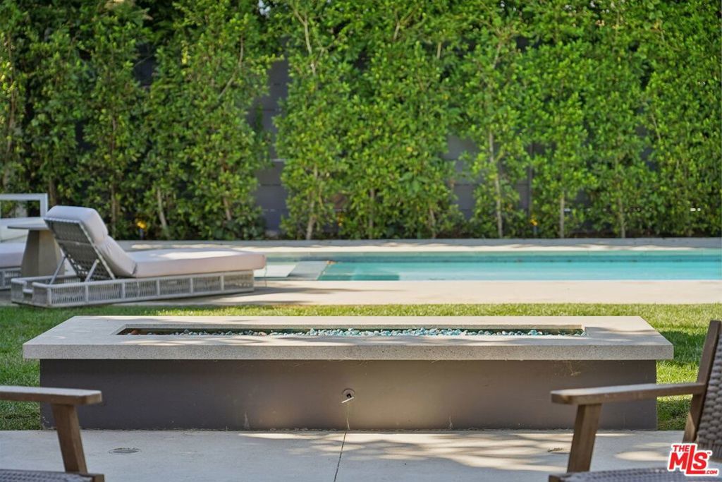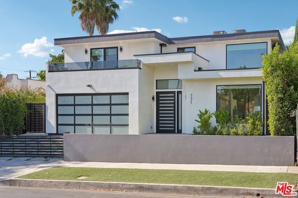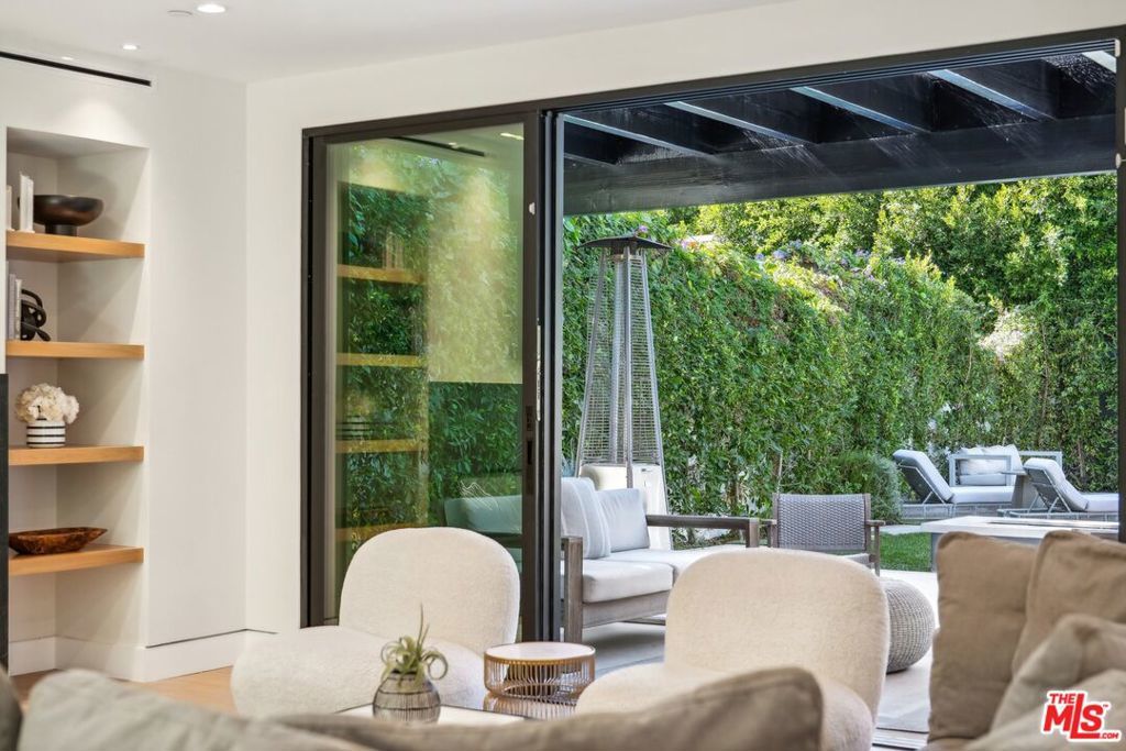 This property comes fully furnished and is all set for you to move in right away. Immerse yourself in the epitome of luxury and tranquility with this stunning, newly constructed home in Beverly Grove. This architectural masterpiece welcomes you with a sweeping open floor plan and elegant oak wood floors. The main level features an executive office, a cozy fireplace-accented living room, and a chef's kitchen equipped with Thermador appliances, a stone-topped center island, and expansive sliding glass doors leading to the meticulously manicured backyard. Step outside to discover an outdoor oasis boasting a fully equipped kitchen, a comfortable lounge area, and a magnificent pool and spa surrounded by lush Ficus plants for ultimate privacy and serenity. Ascend the floating stairs to the opulent master bedroom with a deluxe en-suite bathroom, his-and-hers closets, and a terrace overlooking the peaceful backyard. Three spacious bedrooms, one with a terrace offering street views, complete this level. The lower level is an entertainer's dream with a generous great room, state-of-the-art theater, two additional en-suite bedrooms, a storage room, a laundry room, and a captivating glass wine cellar. This privately gated home is just steps away from Los Angeles' finest dining and shopping, making it the perfect residence for those seeking elegance and convenience.
