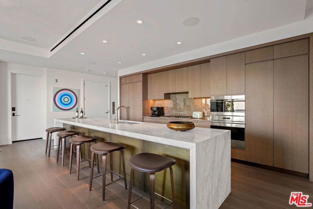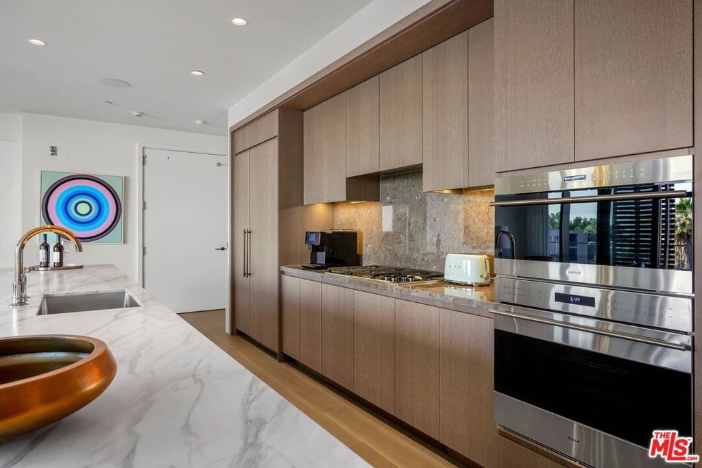 Immerse yourself in luxury at the The Sun Rose West Hollywood (formerly Pendry Residences) , a 24-hour full-service amenity building, located on the iconic Sunset Strip. Residence 307 offers unparalleled privacy with breathtaking south-facing Downtown LA views. Serene and sophisticated, the home exudes an opulent ambiance with wide plank white oak flooring and floor-to-ceiling glass walls that bathe the space in natural light. The chef's kitchen, designed by Martin Brudnizki, is the perfect blend of functionality and elegance equipped with top-of-the-line Subzero and Wolf appliances, custom white oak stained cabinetry, Waterworks fixtures, and an oversized Calacata Borghini marble island. The generously sized primary suite is a haven of luxury, featuring a customized Poliform walk-in closet and a marble spa-like bathroom with custom double vanities and high-end polished chrome fixtures. Completing the residence are a guest bedroom with en-suite bath, powder room, laundry room, in-wall speakers, direct access via a private elevator, and two side-by-side parking spaces equipped with a triple charger. The Sun Rose Residences offers a range of residential amenities, including 24-hour concierge and security services, valet parking, a state-of-the-art fitness center, a resident lounge, a tranquil garden deck, a rooftop pool, and services of Sun Rose Hotel.