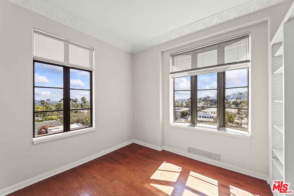 Hayworth Towers, built in 1931, is a fine example of old Hollywood Art Deco Living in the heart of West Hollywood. Restored and Historic, this building features original detail not found in properties of today. This beautiful 6th floor apartment has spectacular views of Downtown LA and also facing west to all of West Hollywood. This apartment has a formal foyer, is light and bright with city views, 2 beds + 1 Bath - approx 1,100 SqFt and great closet space. Master has tons of light and walk in closet. The very large living room has a large bay windows facing West, good size formal dining area and ample kitchen. Hardwood floors with high 9 ft ceilings are carried throughout, all on a tranquil tree-lined street. All utilities are PAID except for internet/cable. 2nd floor accesses a huge community terrace and sundeck. A separate special gated dog run for your 4 legged friends. In a registered historic Art Deco 7 story high rise building in the Center City neighborhood of West Hollywood with a short distance to all restaurants. Photos shown are of unit # 502. We will have photos for this unit published later this evening or tomorrow morning.