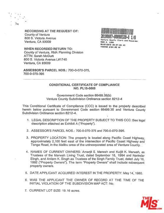 NEW LISTING! A unique opportunity to develop a "one of a kind" Major Malibu Estate in West Malibu! With much space for a spectacular 180-degree ocean view home and includes room for pool, tennis court and horses! Most of the 19.16 acres is flat to gentle slope with 1,931 feet of street frontage and all across from public beach access! Close by are multimillion dollar homes without the ability to add much-desired improvements this site can offer!