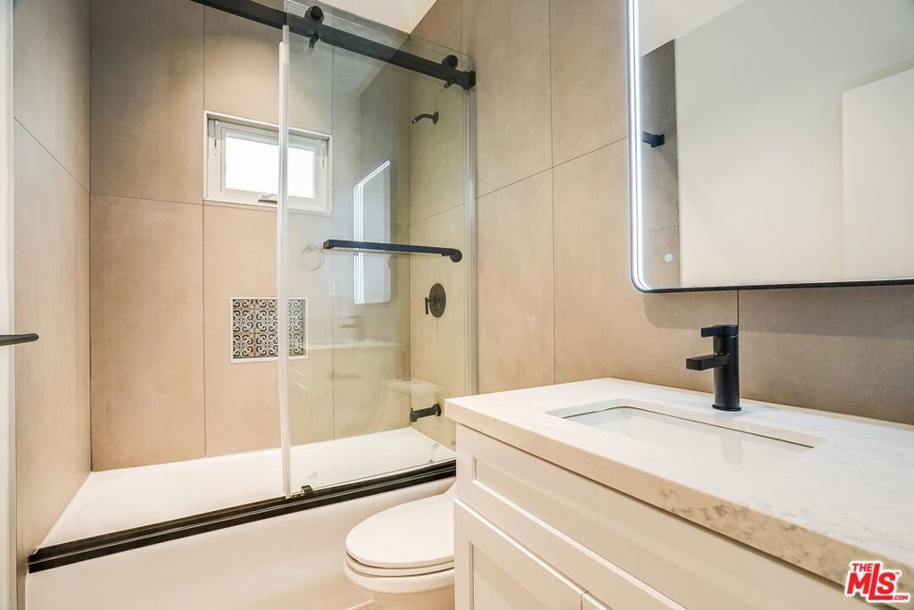 Move in Special: last 2 weeks of lease free. Recently renovated Mid Century Modern building in Beverly Hills. Secured formal entry with a Door Bird Intercom call box. This large ground floor 1 bedroom unit features All Brand New floors with dual paned windows, new Air Conditioning mini splits to control different temperatures from each room, smoothed walls, new lighting, in-unit Washer and Dryer and more. The Bedroom is located in the center of the unit and there no shared bedroom walls. Kitchen wall is the only shared wall. Completely rebuilt kitchen with newer Stainless Steel Appliances including in-unit Samsung Washer and Dryer, Samsung Oven / Stove, Large Refrigerator and Freezer, Quartz Countertops, White Shaker Cabinets with soft closing drawers. Unit and building has been extensively remodeled with a brand new bathroom, shower over bathtub, LED Mirror with a defroster. Located within the Beverly Hills Unified School District ( BHUSD ), close to parks, grocery stores and everything Beverly Hills has to offer! No Pets, Sorry.