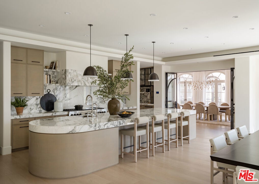 PRICE REDUCTION! $49,500,000. The Westside's most exclusive offering - a rare and exciting opportunity to acquire the only completely redone tennis estate in the ultra-private enclave of Brentwood Country Estates, the guard-gated community of just 13 homes known for its unmatched 24/7 security, privacy and gorgeous views. Gracefully sited on its own five acre promontory, behind its own gates, this truly one of a kind property, completely reimagined and redesigned, is offered fully furnished, ready to welcome you without delay. When you arrive, you are overtaken by a sense of serenity, peace and calm. Taking your first breath of the mountain air, you can feel yourself starting to relax. Where else west of the 405, can you live in your own five star resort and enjoy the low key comforts of home? A "welcome home" lounge area is the first "Oh wow" moment, leading through the property to the many curated outdoor areas, each providing private spaces for different ways to enjoy the ultimate California lifestyle. The gorgeous pool and spa invite you to luxuriate in the afternoon sunshine. Surrounding the pool, the expansive lawn offers a fun putting and chipping green. Beyond through the olive tree lined walkway is a sunken and lit tennis court, easily converted for pickleball and basketball, with a viewing pavilion complete with its own changing room and bath. The property is beautiful during the day, but in the evening it absolutely glows with gorgeous lighting and music everywhere. The approximately 9960 square foot interior is filled with natural light and stylish sophistication. The sightline of the entry hall previews great things to come, and it does not disappoint. The entry leads to the formal living room and expansive dining room, flanked by a beautiful office all with floor to ceiling windows offering views of the perfectly manicured grounds. The heart of the home is the chef's kitchen with a spacious breakfast area with its own big screen TV, temperature controlled wine room, and oversized island, with all the best high end appliances, double Wolf range, double side by side Dacor refrigerators, three sinks, and "they thought of everything" butler's pantry. Right outside the kitchen facing the mountains, through two sets of French doors, the barbecue and outdoor dining areas provide the perfect venue to gather under the stars and watch the moonrise. Adjacent to the kitchen is a fabulous family room, designed for pool, backgammon or just hanging out until dinner is ready. Motorized black-out drapes can convert this space for snuggling up on a comfy sectional to watch your favorite movie. The first level also features a large guest suite, and commodious laundry room with double appliances, a mud room and plenty of storage. On the second level, the dreamy primary suite offers a sanctuary with peaceful views to the sky and mountains, reminiscent of your last great trip to Tuscany or Provence. Tons of mirrored closets and built-ins separate the two sides to the bath area, connected by a distinctive wet room double shower and tub. Three additional ensuite bedrooms provide comfort and privacy for guests or family, and a fully equipped gym completes the upper level. The entire home is powered by a state-of-the-art Crestron smart system, offering seamless control of lighting, music, climate and security with cameras everywhere. In addition to the oversized three car garage, the circular motorcourt is large enough to accommodate ten cars. Located in lower Mandeville Canyon, Brentwood Country Estates, provides easy access to Santa Monica, and other areas of the Westside, with wonderful restaurants, shops, hiking trails, golf and the beach minutes away.