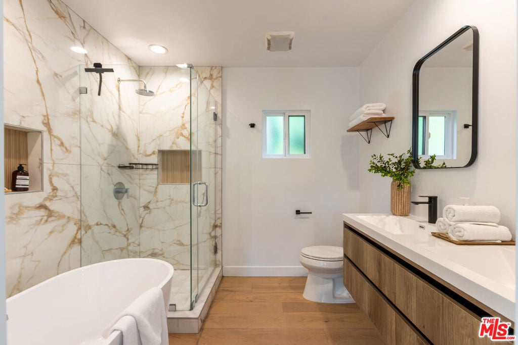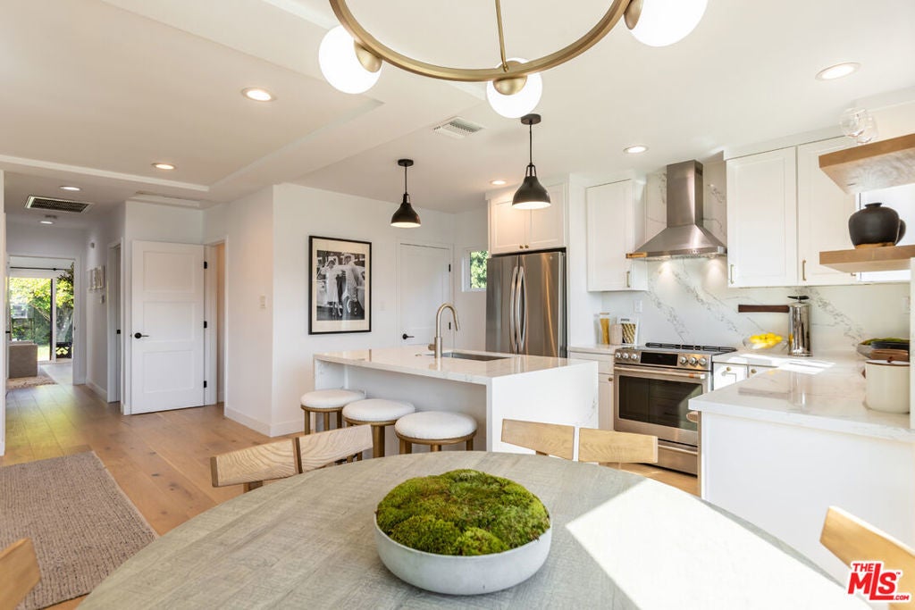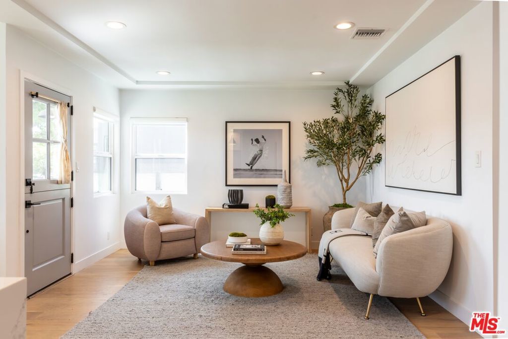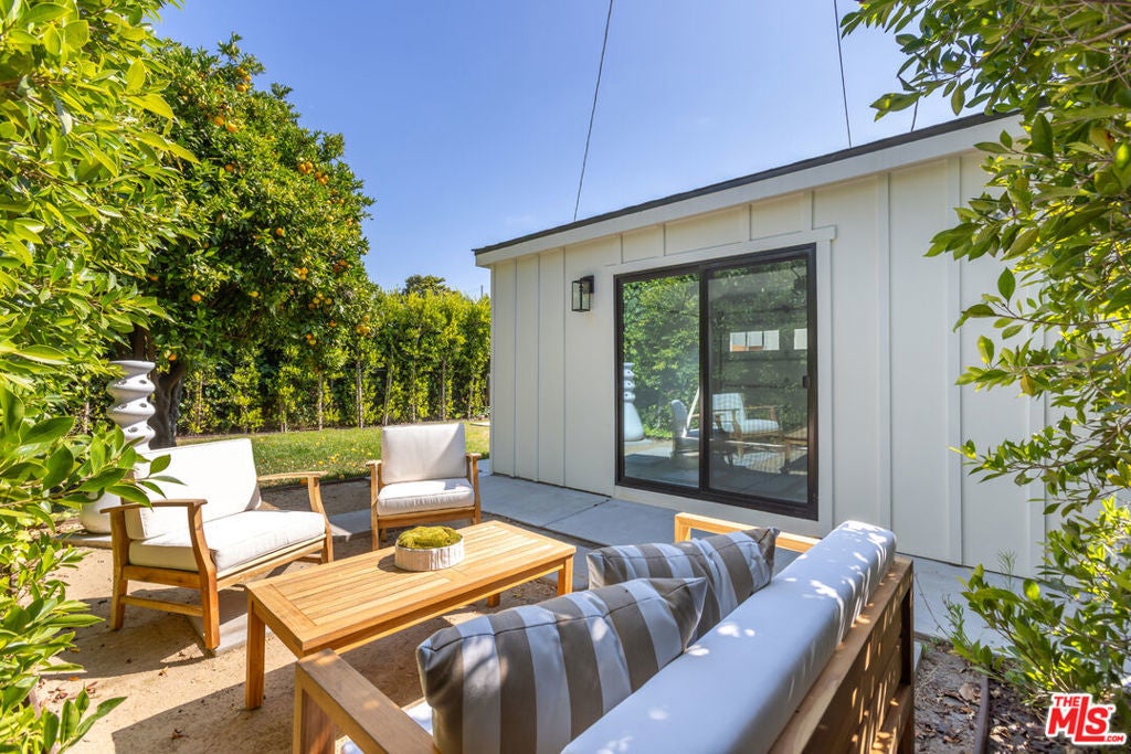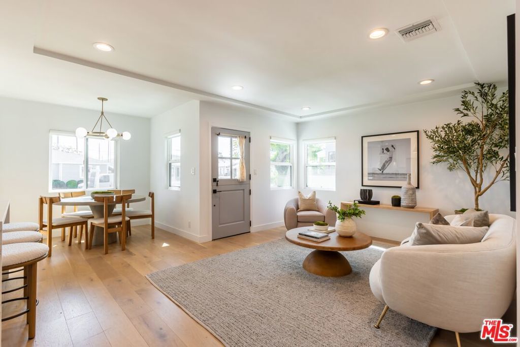 Welcome home to this charming turnkey Mar Vista residence with a large garage ripe and ready for an ADU for additional living space. The exterior, wrapped in sleek vertical siding, makes for a great first impression. A Dutch door welcomes you into an airy, thoughtfully designed interior where high-end finishes, seamless flow, and abundant light define the space. Rich hardwood floors run throughout, setting the tone for an open-concept layout anchored by a stunning culinary hub. The kitchen is the centerpiece, combining elegance and function with a dramatic quartz waterfall island, designer backsplash, bespoke cabinetry, and state-of-the-art appliances. Whether you're entertaining guests or making your morning smoothie, this kitchen was built for function and flow. Retreat to a generously sized primary suite, complete with a large walk-in closet and en-suite bath. Unwind in the soaking tub or enjoy the walk-in shower, framed by oversized Porcelanosa slabs and complemented by floating vanities and designer fixtures. The outdoor space features a tranquil garden setting with automatic sprinkler system to keep your lawn fresh and green. The oversized driveway provides ample off-street parking, while the detached two-car garage offers endless opportunity. Perhaps you envision a creative studio, guest suite, or future ADU, so you'll love that the space is already wired, styled, and sun-filled, with polished floors, vaulted ceilings, dual sliding doors, and its own private courtyard access. Whether you're basking in the morning light with coffee in hand or hosting friends under the stars, this home invites you to slow down and enjoy the the relaxed rhythm of Westside life. **Buyer to do all due diligence regarding review of permits, zoning, use, etc. Listing Broker/Agent doesn't guarantee accuracy of square footage, lot size, permit info, or other: info/condition of property provided by the seller or obtained form Public Records/ other sources. Buyer is advised to independently verify the accuracy of all info.