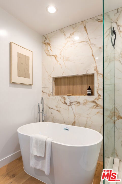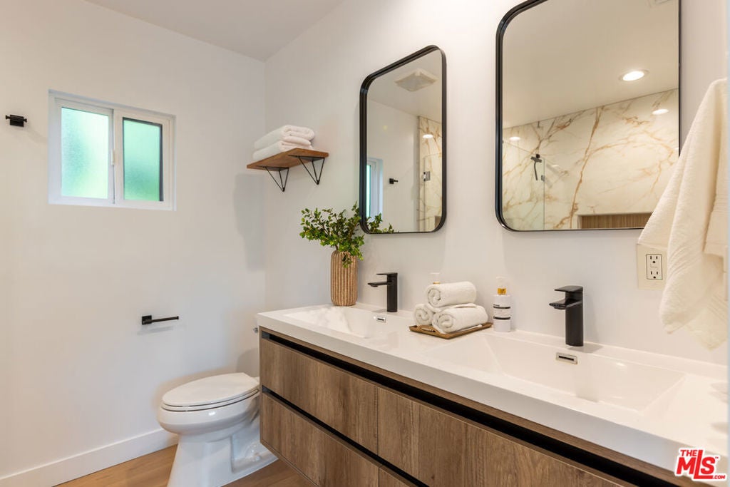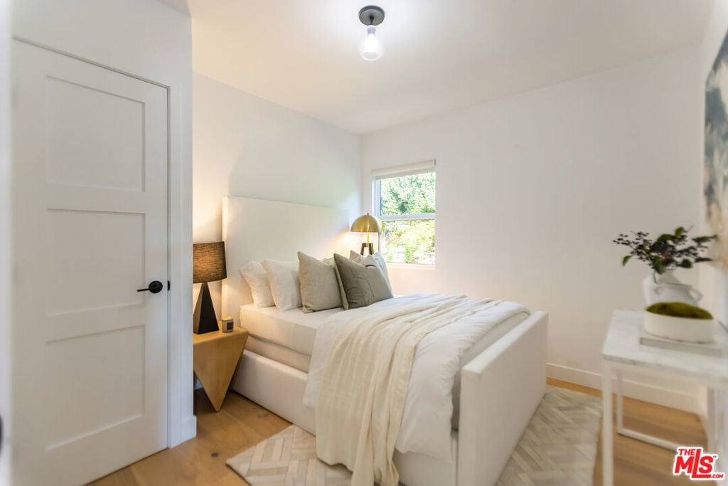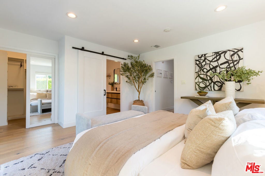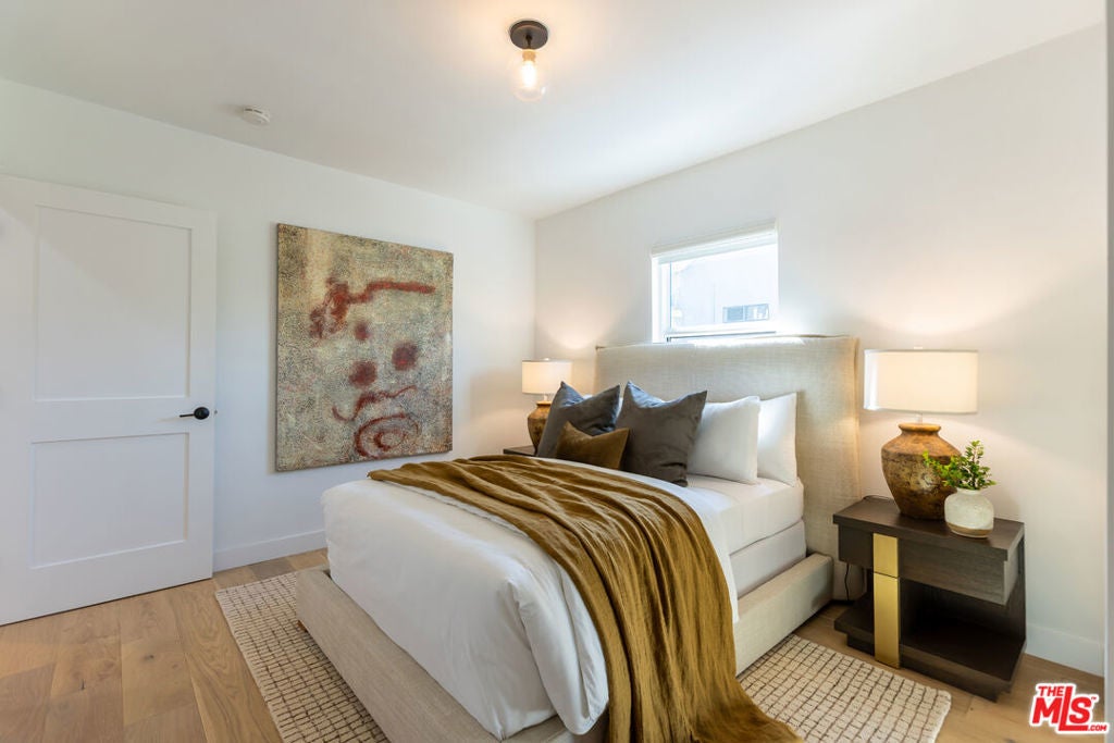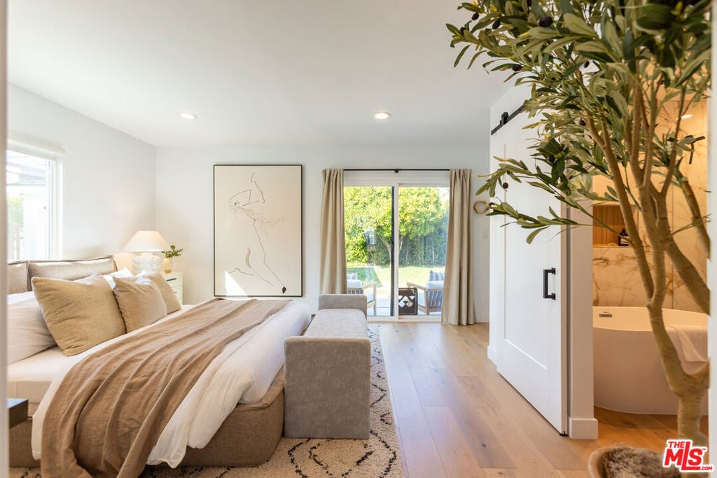 Welcome home to this charming turnkey Mar Vista residence with a large garage ripe and ready for an ADU for additional living space. The exterior, wrapped in sleek vertical siding, makes for a great first impression. A Dutch door welcomes you into an airy, thoughtfully designed interior where high-end finishes, seamless flow, and abundant light define the space. Rich hardwood floors run throughout, setting the tone for an open-concept layout anchored by a stunning culinary hub. The kitchen is the centerpiece, combining elegance and function with a dramatic quartz waterfall island, designer backsplash, bespoke cabinetry, and state-of-the-art appliances. Whether you're entertaining guests or making your morning smoothie, this kitchen was built for function and flow. Retreat to a generously sized primary suite, complete with a large walk-in closet and en-suite bath. Unwind in the soaking tub or enjoy the walk-in shower, framed by oversized Porcelanosa slabs and complemented by floating vanities and designer fixtures. The outdoor space features a tranquil garden setting with automatic sprinkler system to keep your lawn fresh and green. The oversized driveway provides ample off-street parking, while the detached two-car garage offers endless opportunity. Perhaps you envision a creative studio, guest suite, or future ADU, so you'll love that the space is already wired, styled, and sun-filled, with polished floors, vaulted ceilings, dual sliding doors, and its own private courtyard access. Whether you're basking in the morning light with coffee in hand or hosting friends under the stars, this home invites you to slow down and enjoy the the relaxed rhythm of Westside life. **Buyer to do all due diligence regarding review of permits, zoning, use, etc. Listing Broker/Agent doesn't guarantee accuracy of square footage, lot size, permit info, or other: info/condition of property provided by the seller or obtained form Public Records/ other sources. Buyer is advised to independently verify the accuracy of all info.