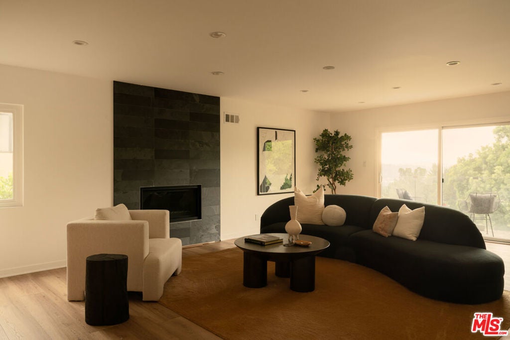 Best value in Los Feliz! Perched on a quiet hillside, this spacious 5-bedroom, 4-bathroom home was completely remodeled in 2018 and offers refined comfort, thoughtful design and a price per foot that can't be beat. With ample square footage, a seamless flow, and a generous floor plan, the home features multiple living spaces, an office space, and a 3-car garage combining everyday functionality with elevated California living. The main level welcomes you with an open-concept layout, centered around a warm and inviting living room with soaring ceilings and ample natural light. A formal dining area flows effortlessly into the modern kitchen with stone countertops, custom cabinetry, stainless steel appliances, and abundant storage. Upstairs, the primary suite offers a spa-like en-suite bath, soaking tub, and large walk-in closet. The additional bedrooms are thoughtfully designed for both comfort and versatility. The dedicated office, complete with hillside views, takes working from home to the next level and providing a quiet, elevated space ideal for focus and productivity. Multiple outdoor patios invite you to relax, entertain, and take in the serene hillside surroundings from morning coffee on the balcony to dinners in the backyard, perfect for indoor/outdoor entertaining. This is an incredible opportunity to live in one of the most sought after neighborhoods in Los Feliz for under $3M, just minutes from Griffith Park, the Greek Theatre, and many other iconic shops and restaurants of Hillhurst and Vermont.
