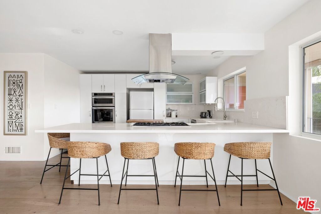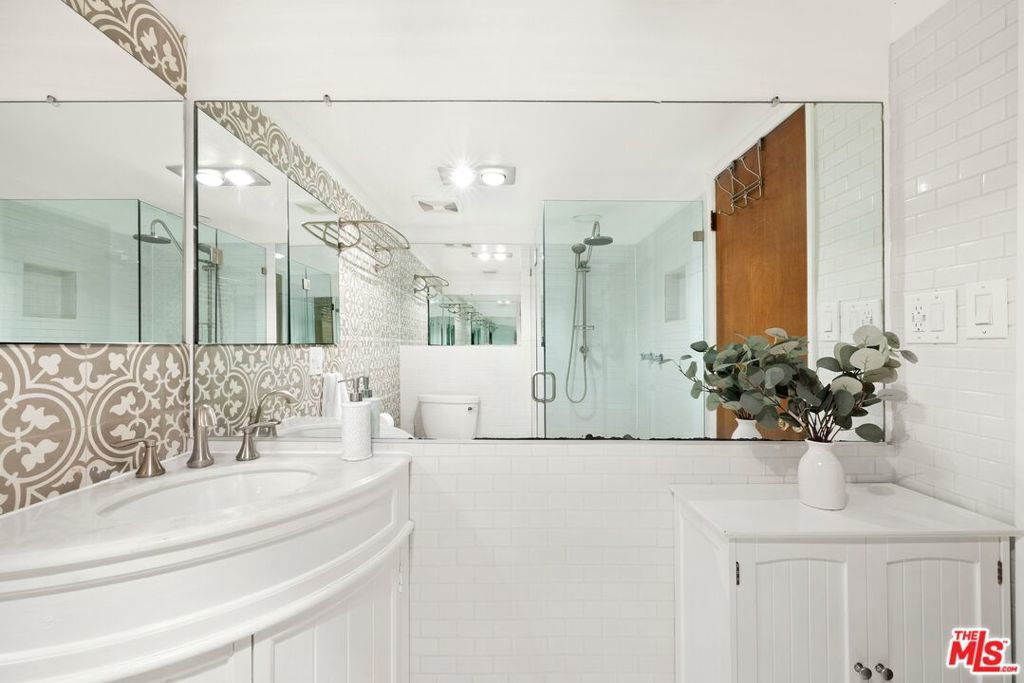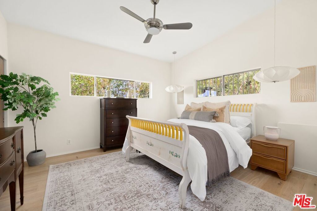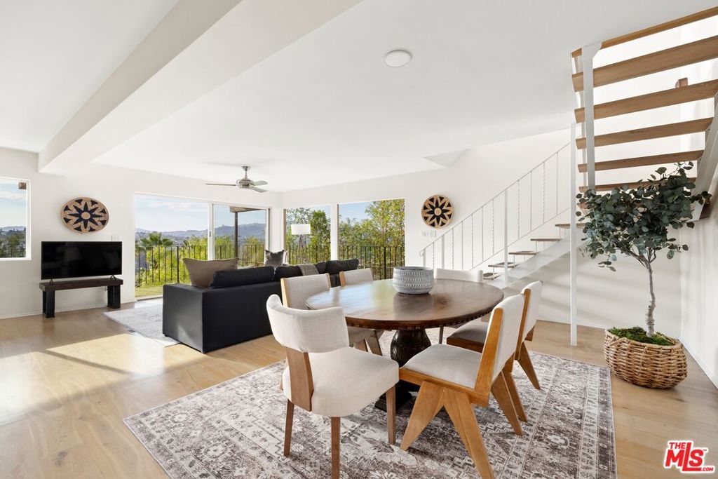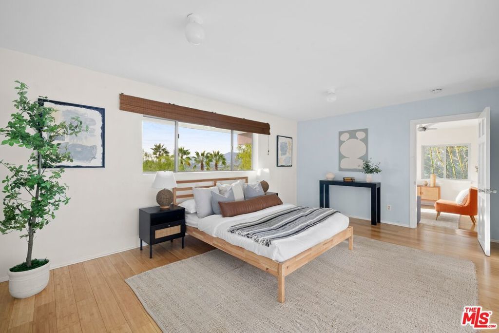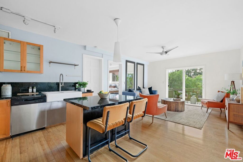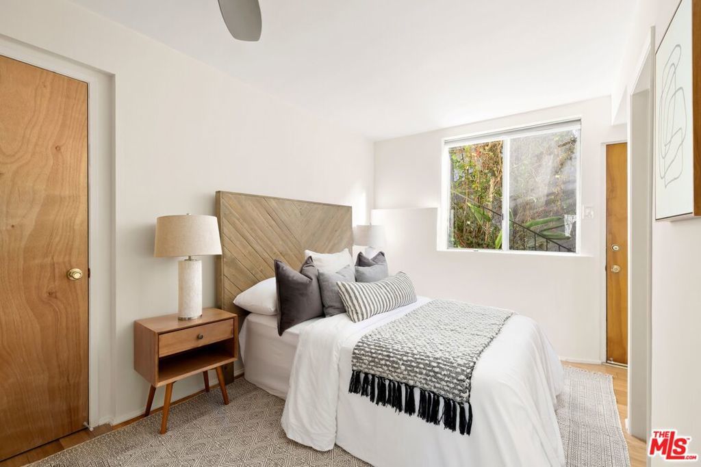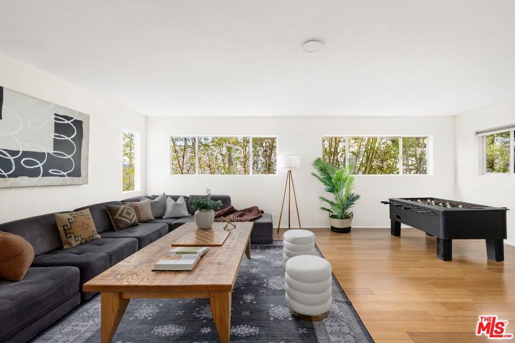 Resting on top of one of the highest points of Silver Lake with sweeping views of the reservoir, this classic midcentury retreat offers sweeping panoramas of the Hollywood Hills, the shimmering Silver Lake Reservoir below, and iconic LA landmarks including the Griffith Observatory and the Hollywood Sign. With such close proximity to downtown, cultural attractions like the Los Angeles Music Center and city hall are just ten minutes by car or twenty minutes by public transit, making this the perfect location for commuting professionals and lovers of the arts. The main level comprises a formal living room and primary suite, each accessing a large wraparound deck for quiet relaxation amidst striking vistas of lush treetops and rich architectural fabric. The main bath is dressed in smart designer tiling and fitted with a floating dual-sink vanity, rainwater shower, and soaking tub. Downstairs, the sleek kitchen features glossy cabinetry, stainless-steel appliances, and large peninsula with breakfast bar ledge and cooktop with hood. Wide-plank floors flow into the adjacent open-concept formal dining area and family room which opens via sliding glass to a second viewing balcony, perfect for al-fresco bites and drinks. Nearby, a media or gaming lounge has picture windows inviting natural light within. Secondary bedrooms and bathrooms are well appointed and maximize use of space. On the lower level, discover a guest apartment equipped with its own kitchen area with full-size refrigerator, washer, farm sink, and island. There is also a living room which opens to the outside as well as a spacious bedroom and delightful en-suite bath, allowing the option for additional passive income. Enjoy a slice of paradise enveloped by mature trees and verdant plantings from the patio, hot tub, and terraced gardens with vivid sunsets as an ideal backdrop. For modern convenience, there is also an EV charger. Celebrated for its creative vibe and diverse culture, Silver Lake draws artists, musicians, writers, and celebrities alike. Experience the beauty of Los Angeles at nearby Elysian Park Trail and Angels Point, known for scenic cycling and hiking paths plus fantastic views of the DTLA skyline. A variety of trendy boutiques, shops, cafes, and buzzing nightlife are also just moments away. Welcome!