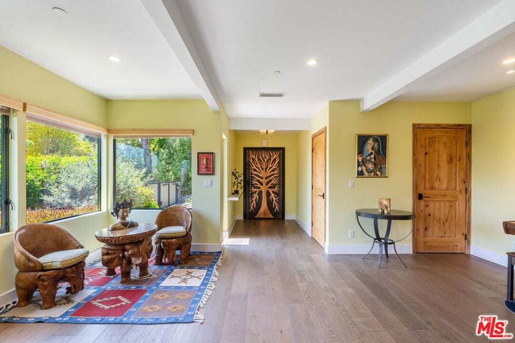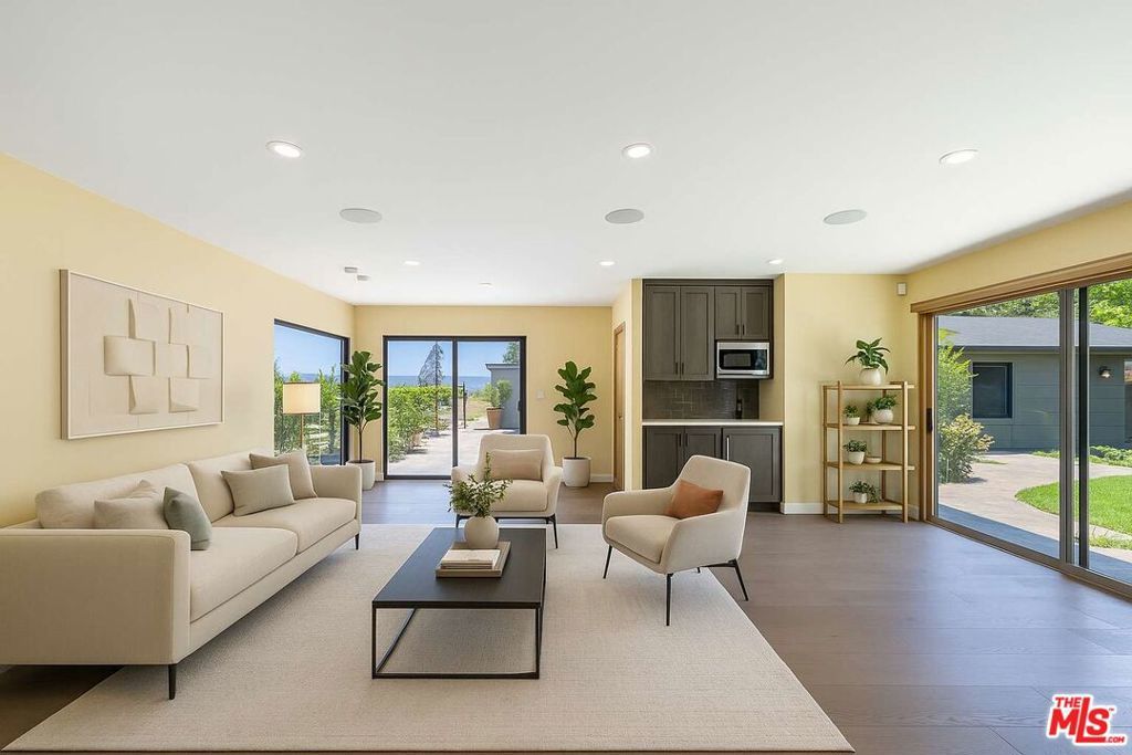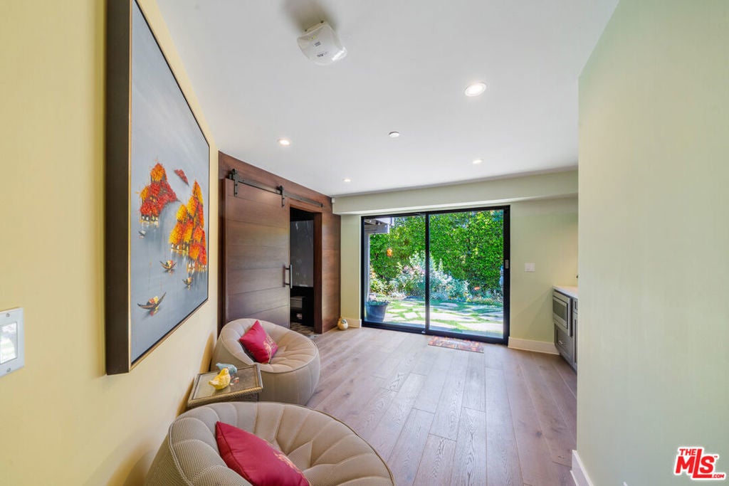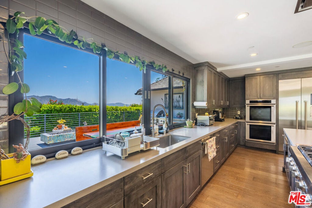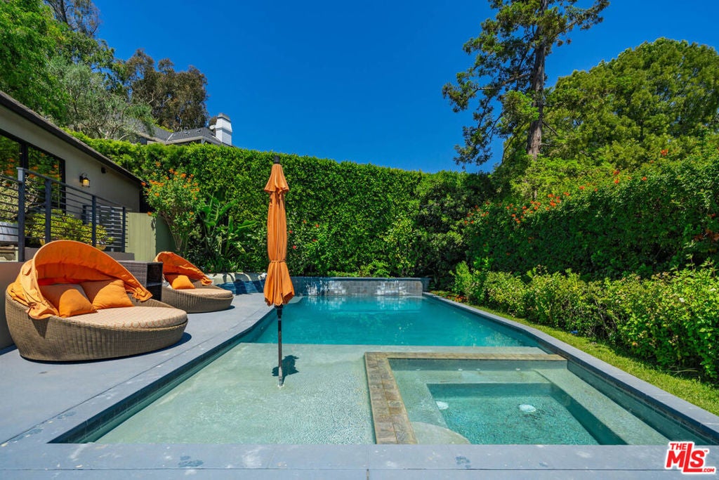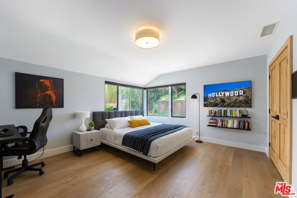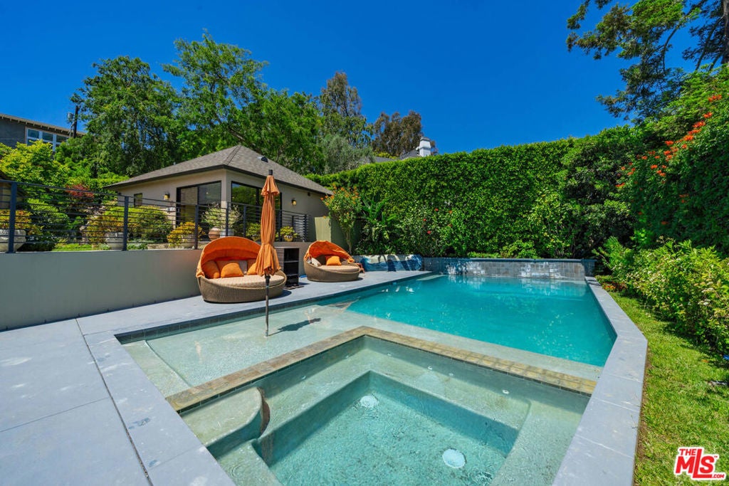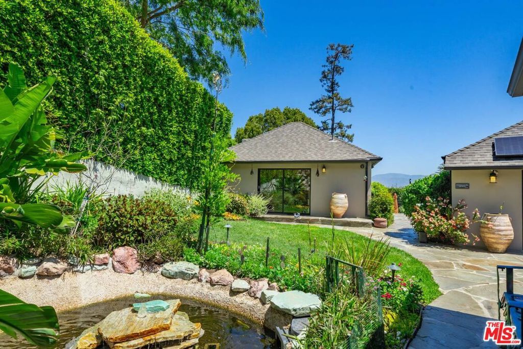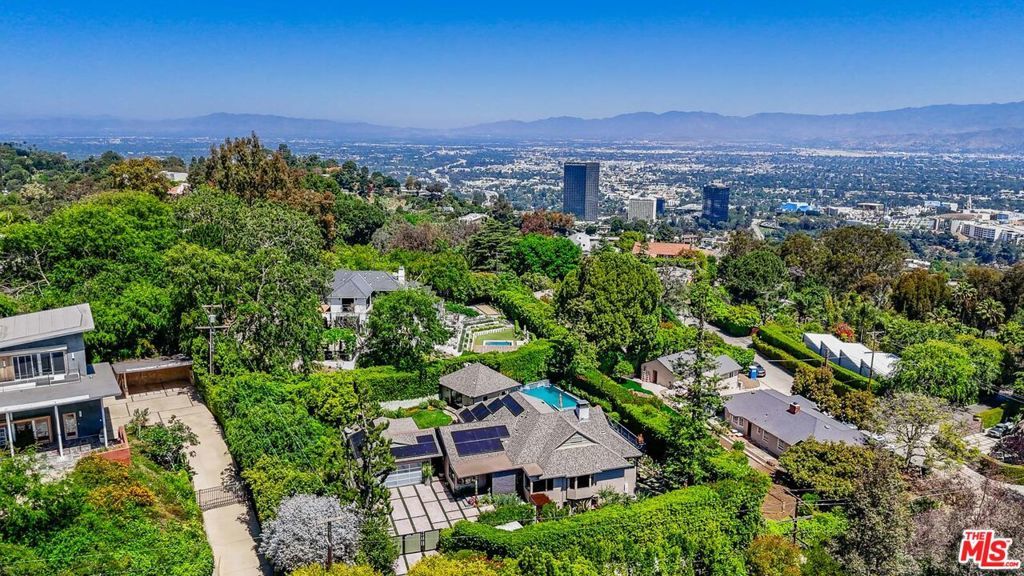 Welcome to a private gated home that combines exceptional design and smart home digital features, rarely found at this price point. This is easily one of the best values currently offered in the Hollywood Hills. Built from the studs up with fire safety in mind, the home is designed for seamless indoor-outdoor living, with beautiful natural light, expansive glass doors and high quality wide-plank wood floors. The spacious primary suite features two closets and a spa-like bathroom with a soaking tub positioned to capture clear views of the Hollywood sign, lovely Santa Monica mountains and Mount Baldy. Additional highlights are a 480-bottle wine cellar, Dolby Atmos home theater, upgraded gym, bar area, and a detached guest house with kitchenette and bath. A slew of Tech-forward upgrades includes a smart home system with iPad controls, remote-controlled blinds, custom garage doors, fully paid solar panels, and a separate guardhouse with its own bathroom and over 15 security cameras for added privacy and peace of mind. Thoughtful improvements such as earthquake retrofitting, new sewer lines, advanced water filtration, and fire-retardant sprinklers make this home a smart and secure investment. Entertain effortlessly with a saltwater heated pool, generous fire pit, built-in BBQ, retractable patio sunroof, and a 60-light landscape system that transforms the space at night. This hidden gem offers a sanctuary-like setting with layered landscaping, vibrant flowers, and fruit trees including avocado, guava, pomegranate, citrus, and more. The grounds are alive with butterflies, hummingbirds, and natural beauty throughout the year. Three tranquil water features, including a koi and turtle pond, a Buddha fountain, and a lush plant wall create a peaceful and inspiring outdoor experience. Located just moments from Runyon Canyon's scenic trails and views of the famous Hollywood Sign, this unique home offers the perfect balance of privacy, convenience, and lifestyle. Luxury, location, and comfort all come together in a rare offering that truly stands out in today's market.
