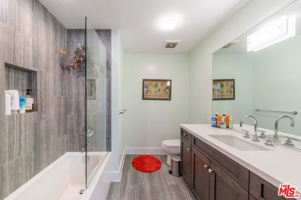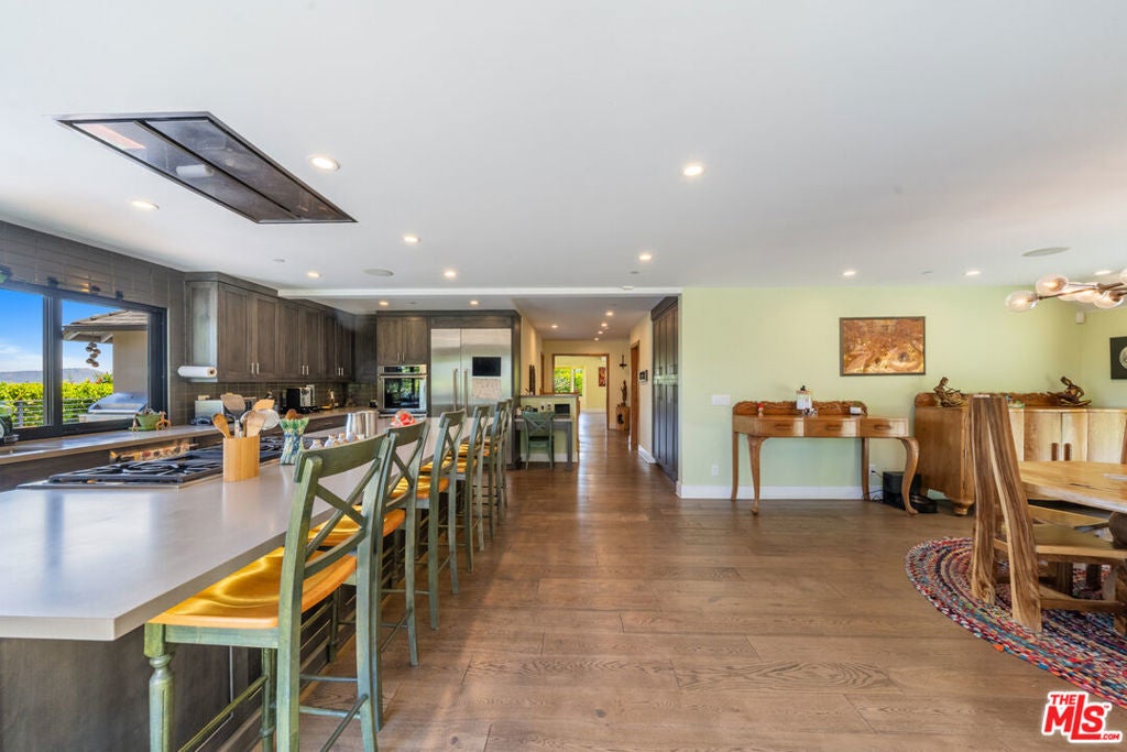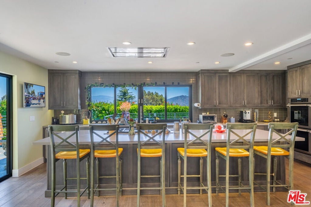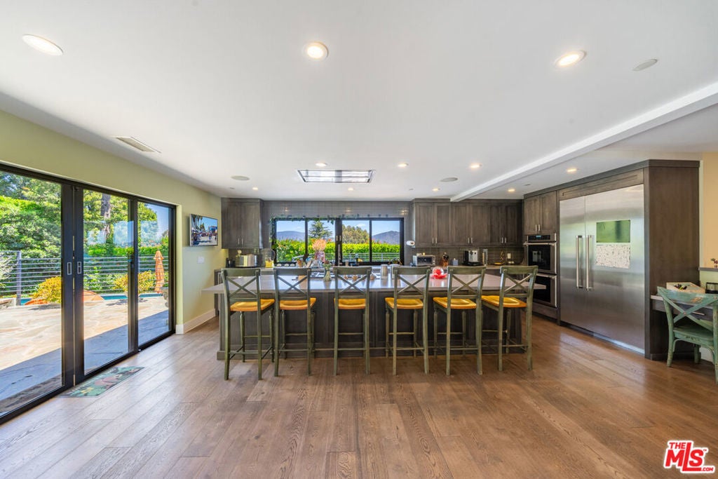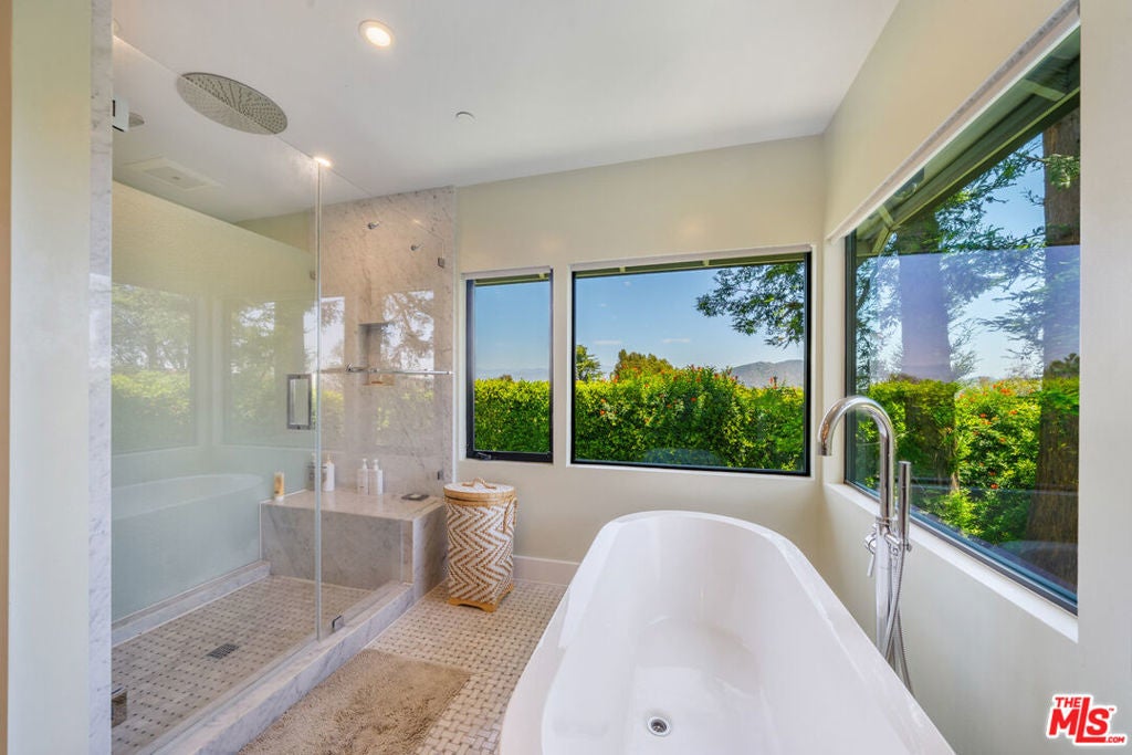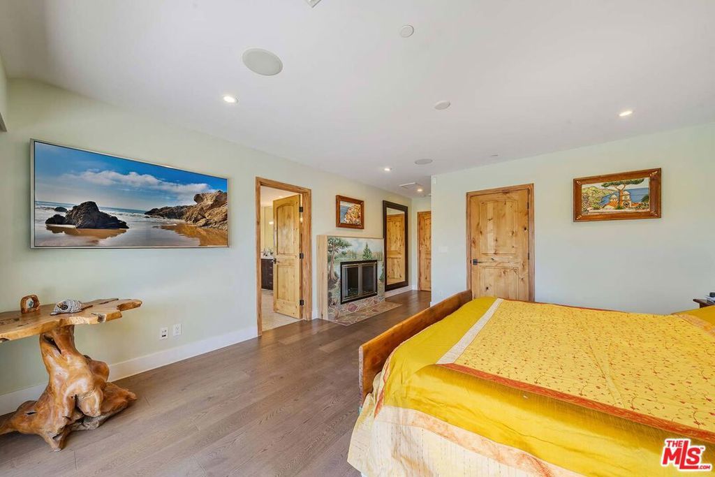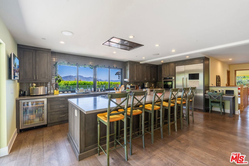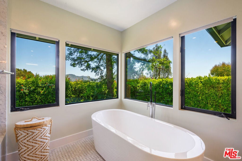 Welcome to a private gated home that combines exceptional design and smart home digital features, rarely found at this price point. This is easily one of the best values currently offered in the Hollywood Hills. Built from the studs up with fire safety in mind, the home is designed for seamless indoor-outdoor living, with beautiful natural light, expansive glass doors and high quality wide-plank wood floors. The spacious primary suite features two closets and a spa-like bathroom with a soaking tub positioned to capture clear views of the Hollywood sign, lovely Santa Monica mountains and Mount Baldy. Additional highlights are a 480-bottle wine cellar, Dolby Atmos home theater, upgraded gym, bar area, and a detached guest house with kitchenette and bath. A slew of Tech-forward upgrades includes a smart home system with iPad controls, remote-controlled blinds, custom garage doors, fully paid solar panels, and a separate guardhouse with its own bathroom and over 15 security cameras for added privacy and peace of mind. Thoughtful improvements such as earthquake retrofitting, new sewer lines, advanced water filtration, and fire-retardant sprinklers make this home a smart and secure investment. Entertain effortlessly with a saltwater heated pool, generous fire pit, built-in BBQ, retractable patio sunroof, and a 60-light landscape system that transforms the space at night. This hidden gem offers a sanctuary-like setting with layered landscaping, vibrant flowers, and fruit trees including avocado, guava, pomegranate, citrus, and more. The grounds are alive with butterflies, hummingbirds, and natural beauty throughout the year. Three tranquil water features, including a koi and turtle pond, a Buddha fountain, and a lush plant wall create a peaceful and inspiring outdoor experience. Located just moments from Runyon Canyon's scenic trails and views of the famous Hollywood Sign, this unique home offers the perfect balance of privacy, convenience, and lifestyle. Luxury, location, and comfort all come together in a rare offering that truly stands out in today's market.