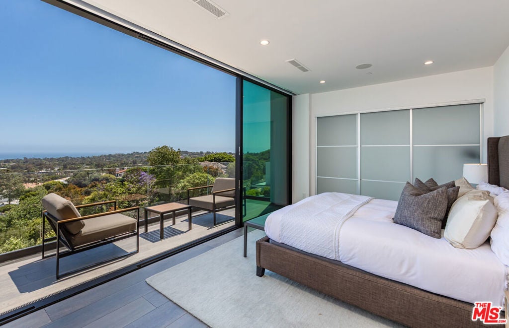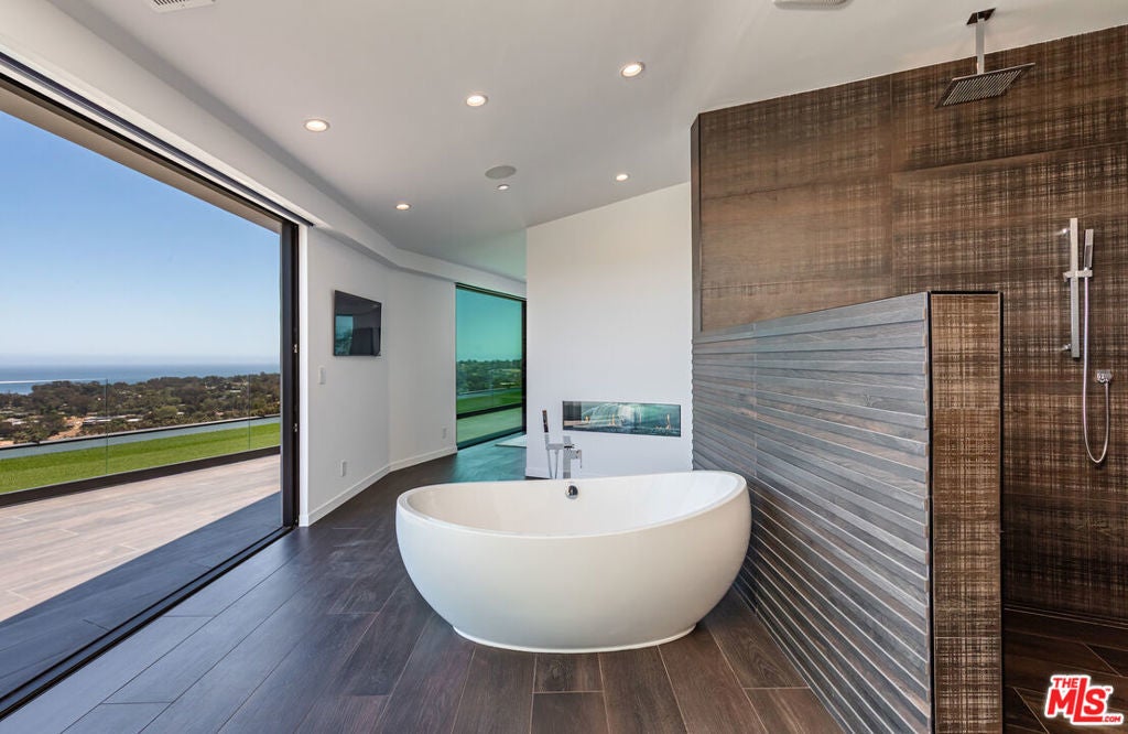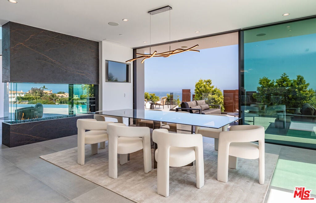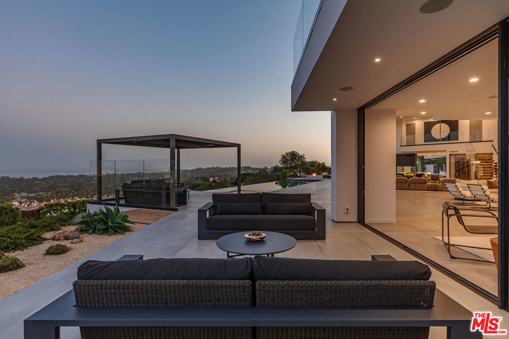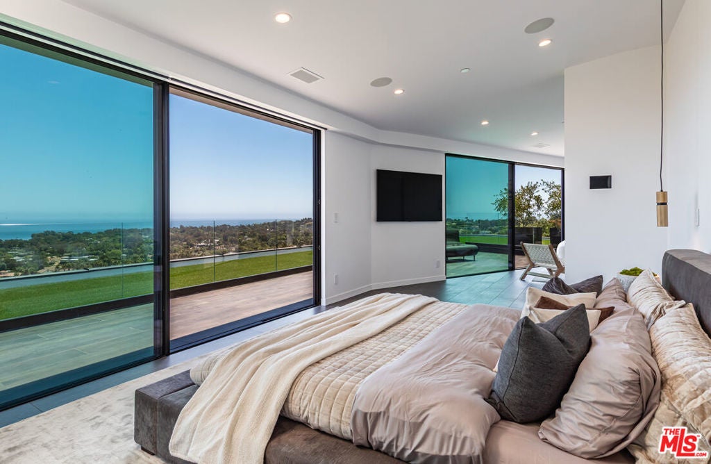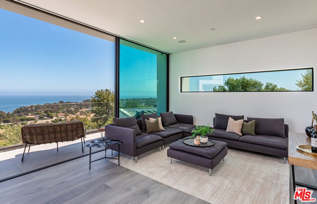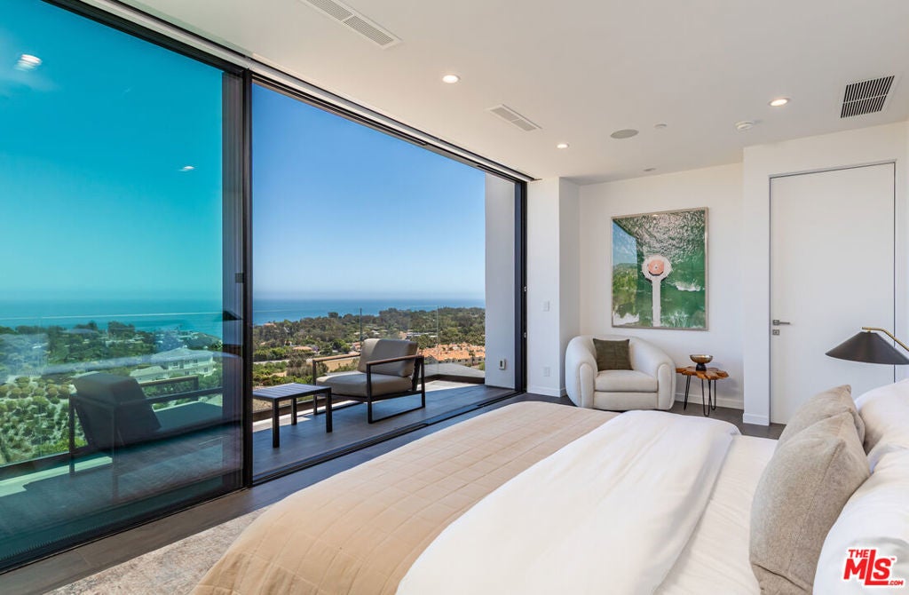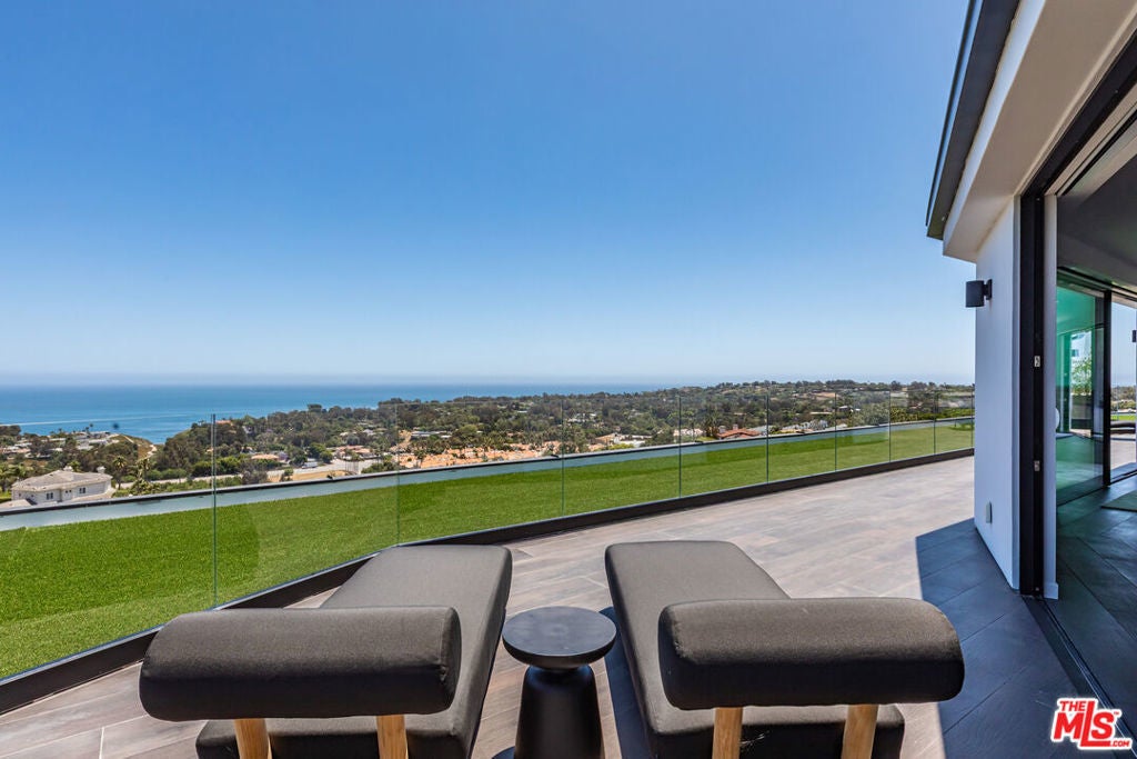 Perched on two pristine acres in Malibu, this brand-new, gated contemporary estate, spans 7,200 square feet and showcases dramatic ocean views through floor-to-ceiling glass walls. The main house features airy living spaces, including a great room with 21' ceilings that opens to a 54' long infinity pool blending into the Pacific Ocean, a seamless flow into a Leicht European kitchen and dining area, a wine cellar, study, and state-of-the-art theater. The entire top-floor primary suite offers a wraparound deck, luxurious bathroom with freestanding tub, and expansive walk-in closet, complemented by four additional ensuite ocean-view bedrooms. Manicured grounds with fire pits, fountains, and a grassy lawn lead to a BBQ pavilion with a full outdoor kitchen, fireplace, and TV, while a detached 815-square-foot guest house mirrors the estate's stunning views. Complete with an elevator, Control4 automation, camera security, a 4-car garage, and a gated motor court, this architectural masterpiece redefines coastal luxury.