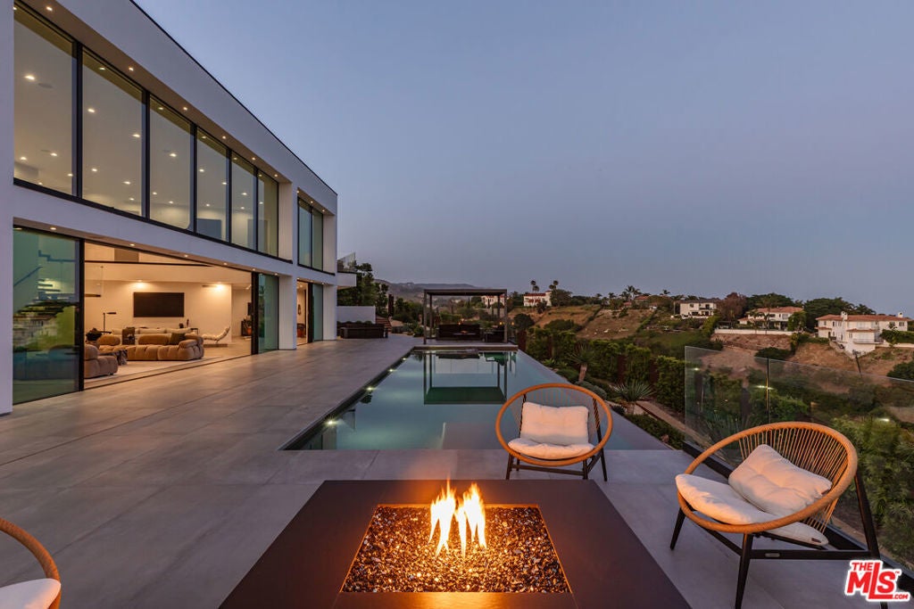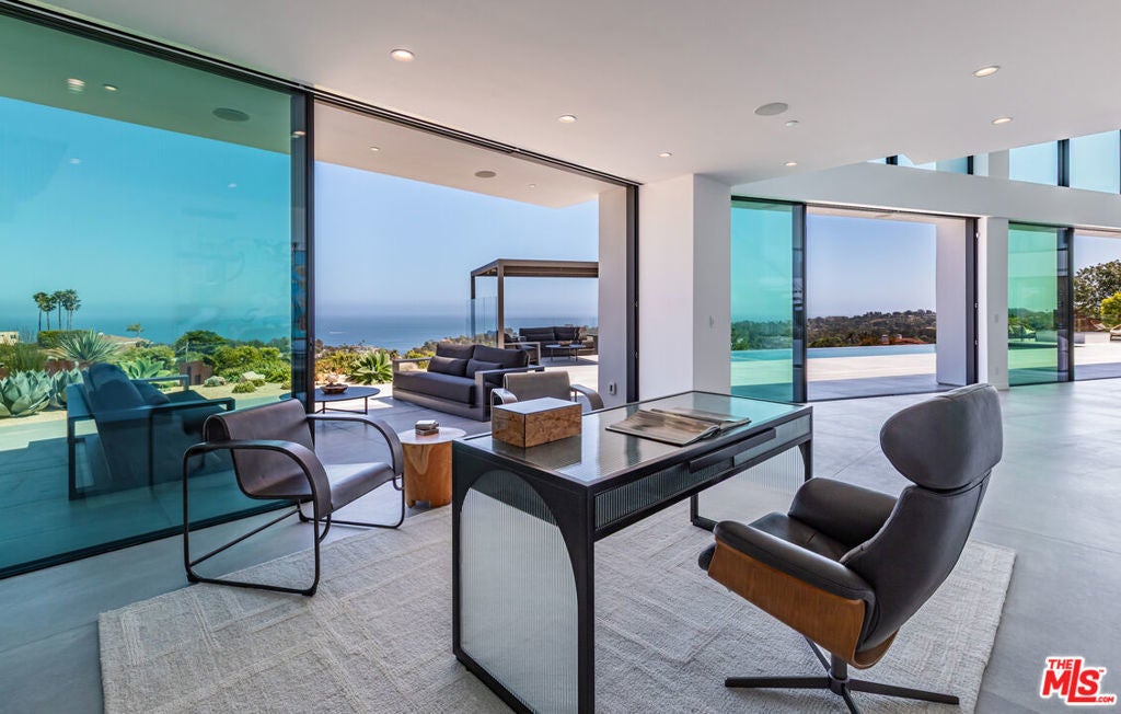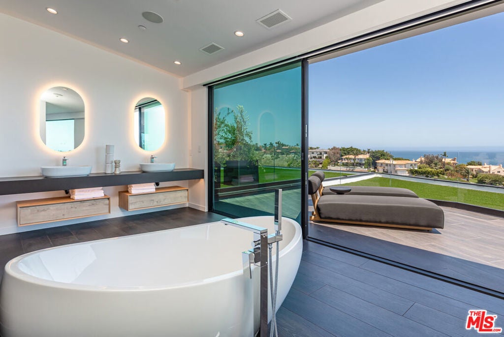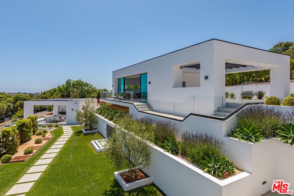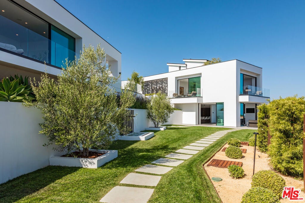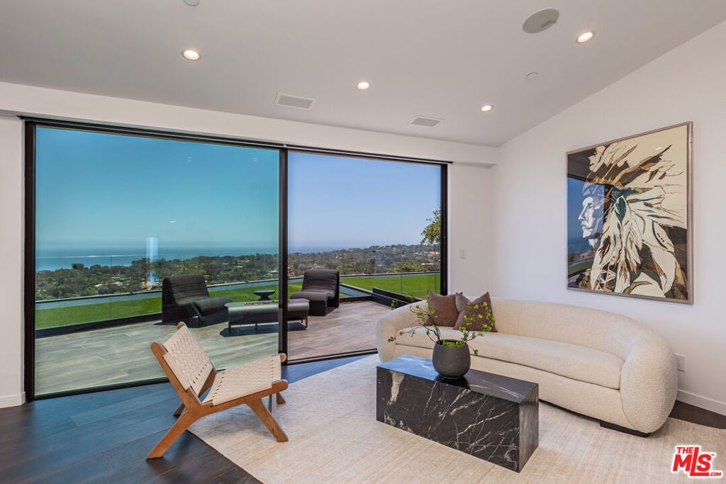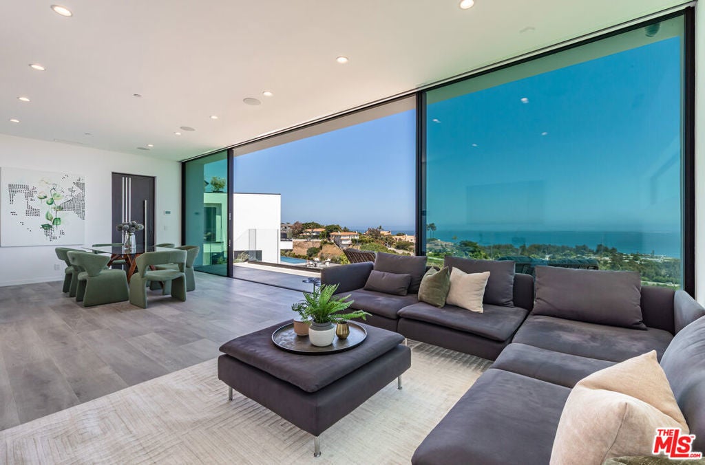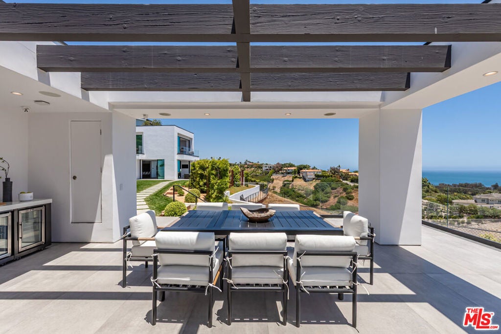 Perched on two pristine acres in Malibu, this brand-new, gated contemporary estate, spans 7,200 square feet and showcases dramatic ocean views through floor-to-ceiling glass walls. The main house features airy living spaces, including a great room with 21' ceilings that opens to a 54' long infinity pool blending into the Pacific Ocean, a seamless flow into a Leicht European kitchen and dining area, a wine cellar, study, and state-of-the-art theater. The entire top-floor primary suite offers a wraparound deck, luxurious bathroom with freestanding tub, and expansive walk-in closet, complemented by four additional ensuite ocean-view bedrooms. Manicured grounds with fire pits, fountains, and a grassy lawn lead to a BBQ pavilion with a full outdoor kitchen, fireplace, and TV, while a detached 815-square-foot guest house mirrors the estate's stunning views. Complete with an elevator, Control4 automation, camera security, a 4-car garage, and a gated motor court, this architectural masterpiece redefines coastal luxury.