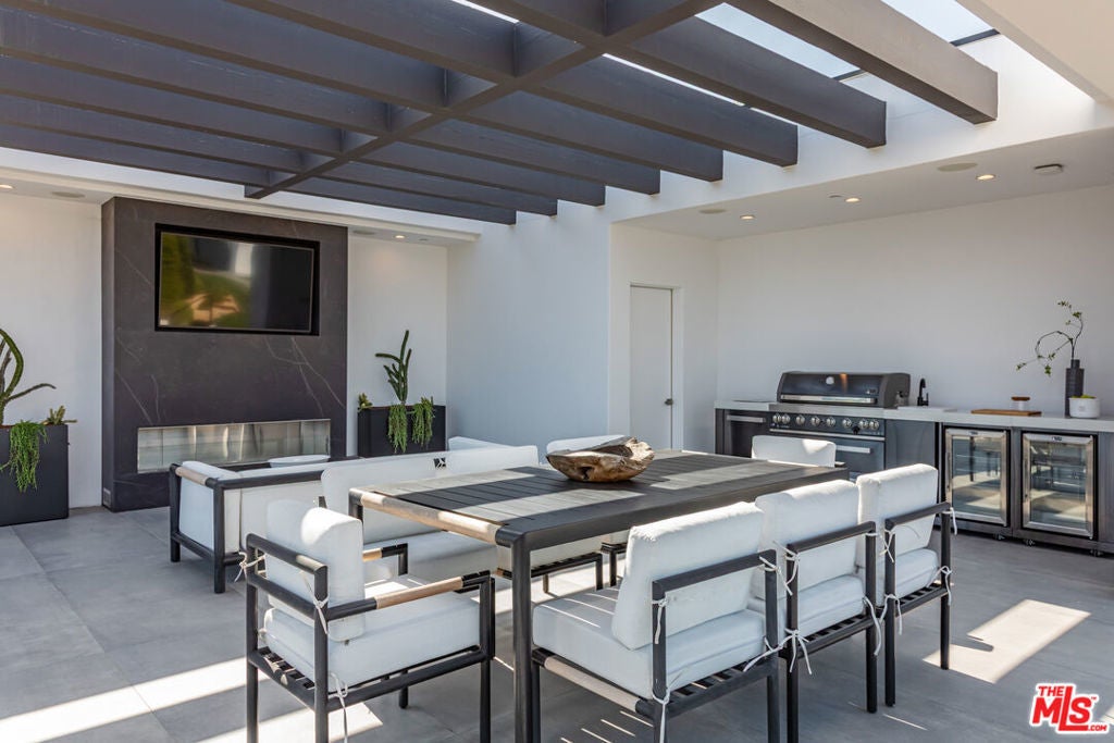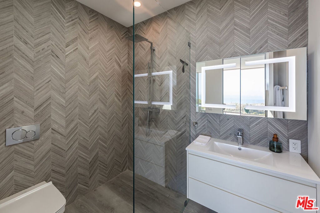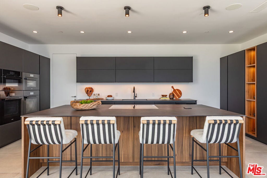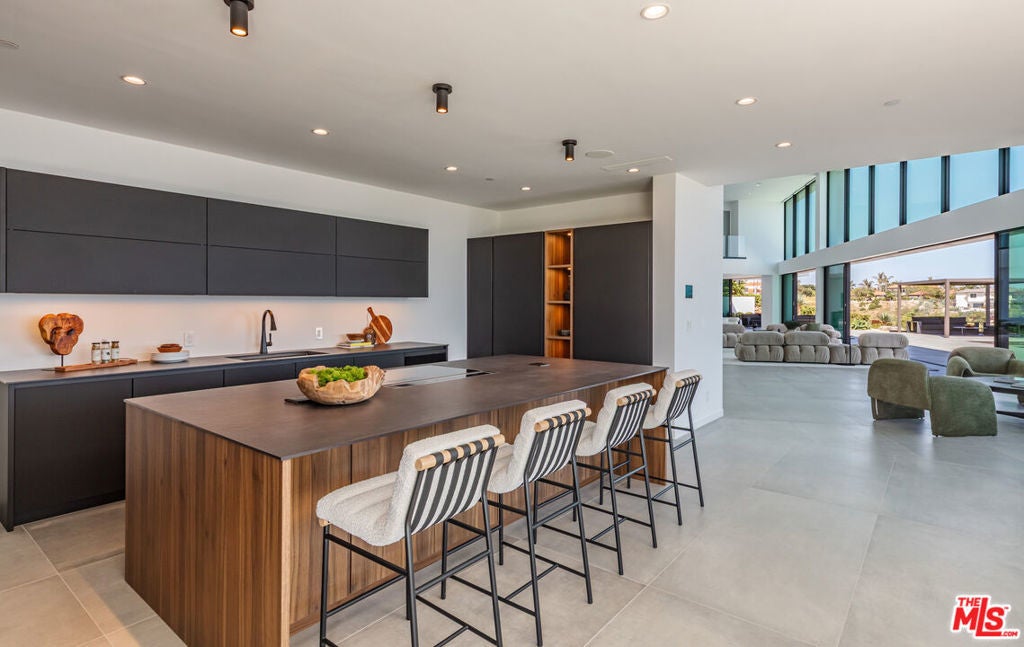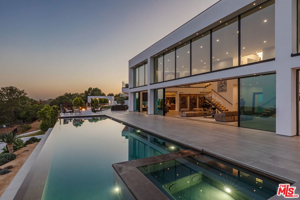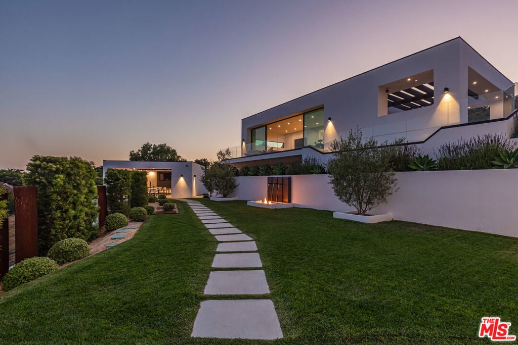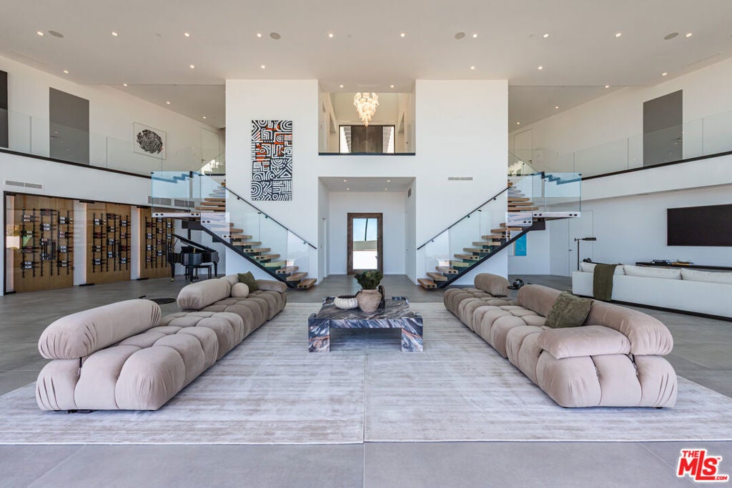 Perched on two pristine acres in Malibu, this brand-new, gated contemporary estate, spans 7,200 square feet and showcases dramatic ocean views through floor-to-ceiling glass walls. The main house features airy living spaces, including a great room with 21' ceilings that opens to a 54' long infinity pool blending into the Pacific Ocean, a seamless flow into a Leicht European kitchen and dining area, a wine cellar, study, and state-of-the-art theater. The entire top-floor primary suite offers a wraparound deck, luxurious bathroom with freestanding tub, and expansive walk-in closet, complemented by four additional ensuite ocean-view bedrooms. Manicured grounds with fire pits, fountains, and a grassy lawn lead to a BBQ pavilion with a full outdoor kitchen, fireplace, and TV, while a detached 815-square-foot guest house mirrors the estate's stunning views. Complete with an elevator, Control4 automation, camera security, a 4-car garage, and a gated motor court, this architectural masterpiece redefines coastal luxury.