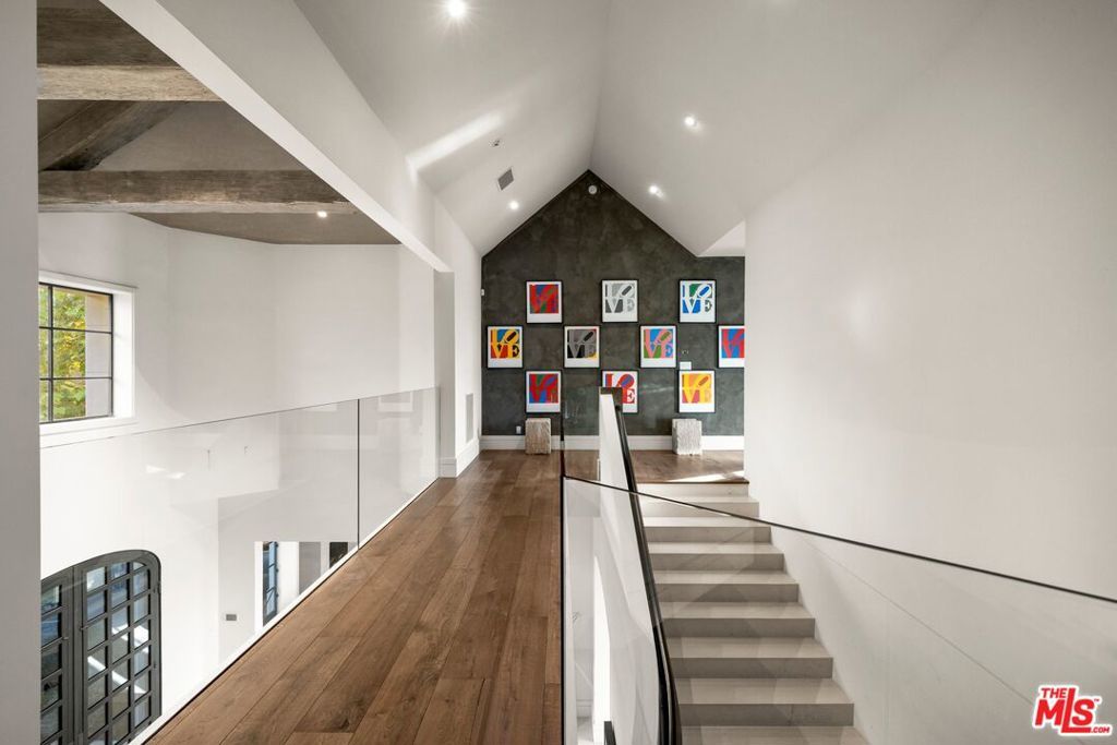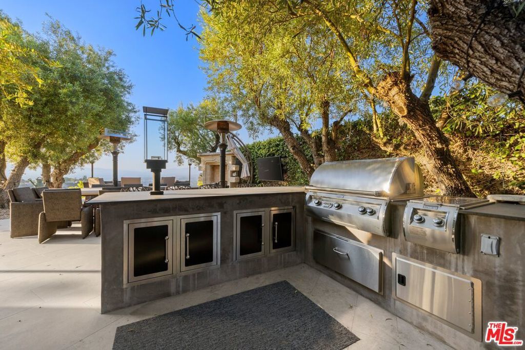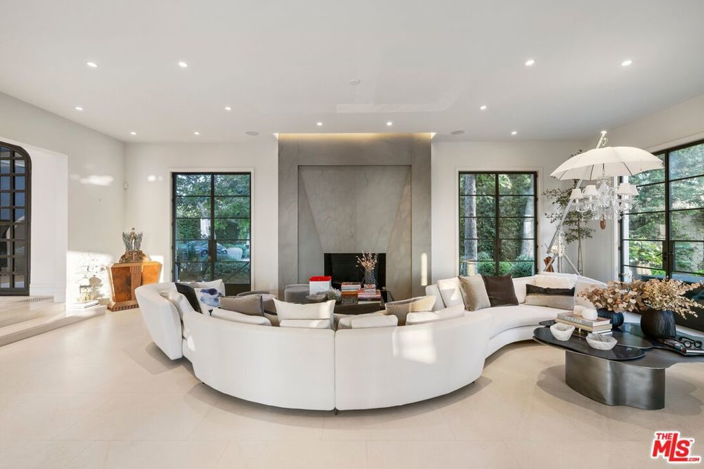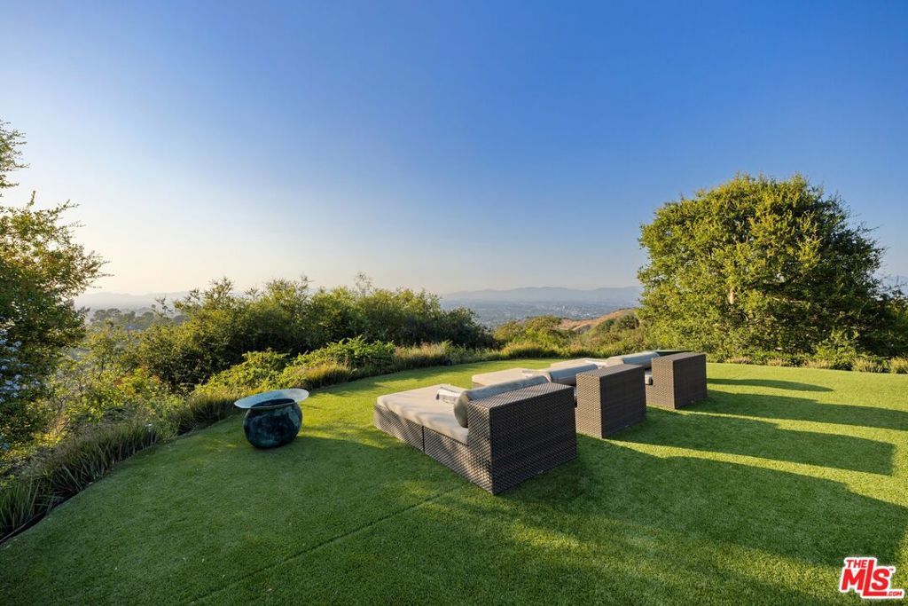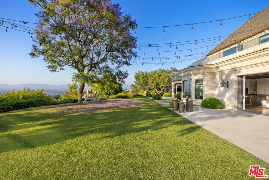 Experience ultimate exclusivity and unparalleled luxury in this French modern transitional. Located in Bel-Air's Stone Ridge Estates situated in a guard-gated community of only 11 homes, the residence is positioned at the back of the private cul de sac optimizing breathtaking city views and privacy. A very rare combination of privacy, 24 hour gated security, a modern home with 180 degree city and mountain views in an estate setting with large grounds. Step inside and discover expansive open living spaces, tasteful finishes and a seamless blend of classic and modern design with wide plank wood floors throughout There is a causal sophistication which gives you the optionality to live relaxed on a daily basis and entertain a large group in a magical setting. The heart of this home is its open-concept family room flowing into a gourmet kitchen equipped with a double island, 60 inch La Cornue dual oven range with 9 burners and top-tier appliances. There is a quaint breakfast area overlooking the garden and a formal dining and living room, where large windows fill the home with natural light. There is an elegant office overlooking the views, a top of the line fitness center, a poker-game room or optional maids room. Move upstairs to the private spaces which are tranquil and quiet and an inviting corridor takes you into the grand primary suite which has a luxurious bathroom, a generously sized walk-in closet and a terrace overlooking the skyline. There are four more well-proportioned bedrooms upstairs including a junior primary suite and a cozy den on the landing. There is a secondary back staircase for convenience and a basement level with polished concrete floors which holds multiple wine refrigerators and has wall to wall built-in cabinetry to maximize storage. The enchanting grounds has sprawling lawns, beautiful gardens and citrus, pomegranate, Jacarandas, Sycamores and Oak trees. The magnificent pool and jacuzzi anchors the yard and soaks up the sunshine throughout the afternoon. There is an outdoor barbecue-kitchen area as well as numerous moments to chill around three fire pits and take in the views. When you are in the mood for movement and fitness there is a sports court, outdoor wellness area with an infrared sauna and cold plunge. Available to Lease fully furnished. Located near several private schools.