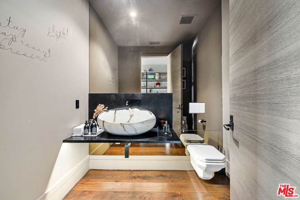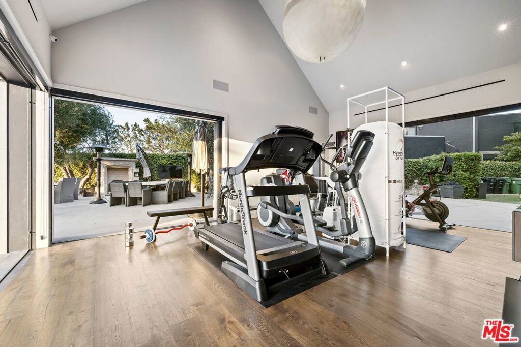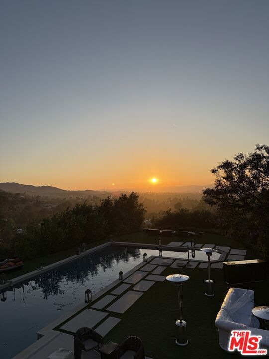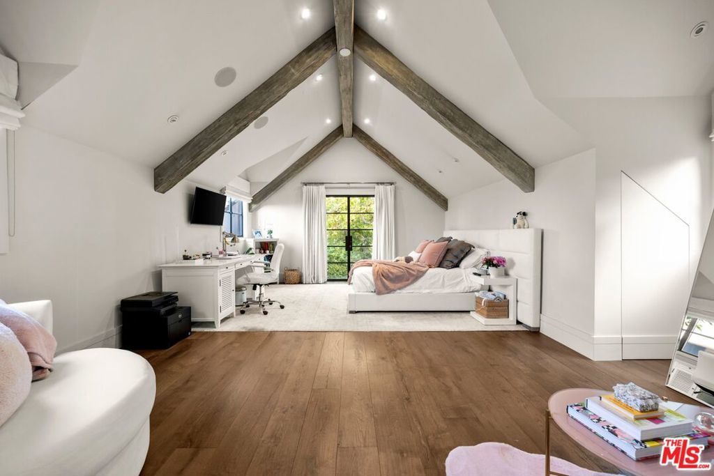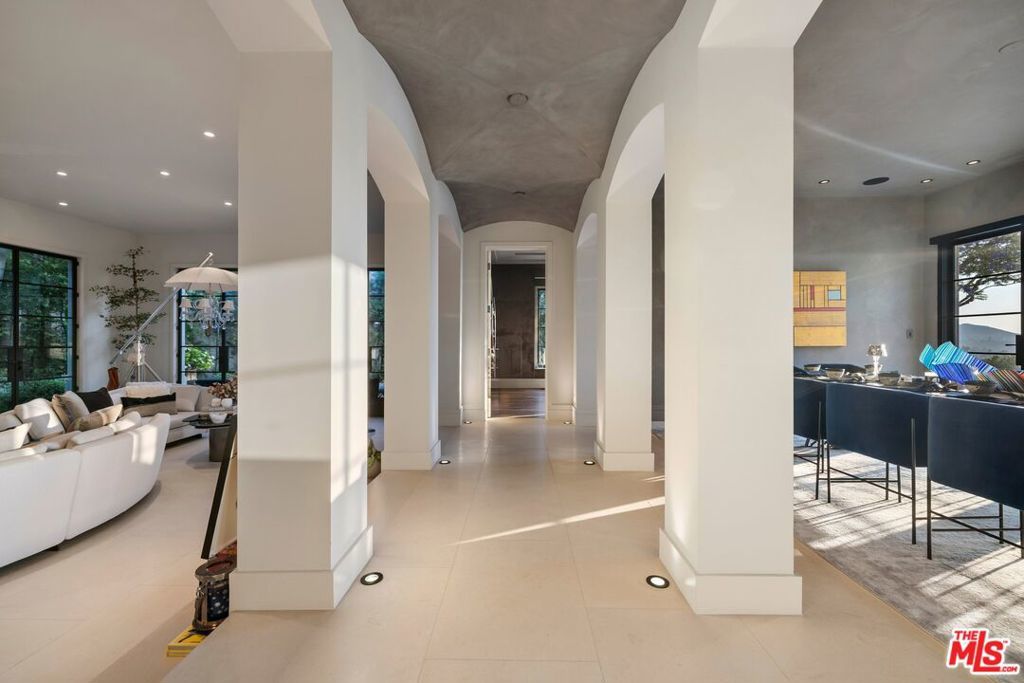 Experience ultimate exclusivity and unparalleled luxury in this French modern transitional. Located in Bel-Air's Stone Ridge Estates situated in a guard-gated community of only 11 homes, the residence is positioned at the back of the private cul de sac optimizing breathtaking city views and privacy. A very rare combination of privacy, 24 hour gated security, a modern home with 180 degree city and mountain views in an estate setting with large grounds. Step inside and discover expansive open living spaces, tasteful finishes and a seamless blend of classic and modern design with wide plank wood floors throughout There is a causal sophistication which gives you the optionality to live relaxed on a daily basis and entertain a large group in a magical setting. The heart of this home is its open-concept family room flowing into a gourmet kitchen equipped with a double island, 60 inch La Cornue dual oven range with 9 burners and top-tier appliances. There is a quaint breakfast area overlooking the garden and a formal dining and living room, where large windows fill the home with natural light. There is an elegant office overlooking the views, a top of the line fitness center, a poker-game room or optional maids room. Move upstairs to the private spaces which are tranquil and quiet and an inviting corridor takes you into the grand primary suite which has a luxurious bathroom, a generously sized walk-in closet and a terrace overlooking the skyline. There are four more well-proportioned bedrooms upstairs including a junior primary suite and a cozy den on the landing. There is a secondary back staircase for convenience and a basement level with polished concrete floors which holds multiple wine refrigerators and has wall to wall built-in cabinetry to maximize storage. The enchanting grounds has sprawling lawns, beautiful gardens and citrus, pomegranate, Jacarandas, Sycamores and Oak trees. The magnificent pool and jacuzzi anchors the yard and soaks up the sunshine throughout the afternoon. There is an outdoor barbecue-kitchen area as well as numerous moments to chill around three fire pits and take in the views. When you are in the mood for movement and fitness there is a sports court, outdoor wellness area with an infrared sauna and cold plunge. Available to Lease fully furnished. Located near several private schools.