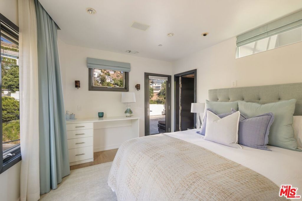 Perched above the iconic Sunset Strip, this entertainer's paradise masterfully balances form and function with an open floor plan and seamless indoor-outdoor flow, ideal for California living. A grand entry leads to a dramatic double-height living room with soaring 30-foot ceilings and walls of glass that frame panoramic views while bathing the space in natural light. The professional-grade chef's kitchen is appointed with dual sinks, dual refrigerators, a separate breakfast area, soapstone countertops, and premium Wolf and Sub-Zero appliances. A formal dining room with French doors opens directly to the outdoors, creating an effortless transition for entertaining. Throughout, solid walnut flooring and lofty ceilings lend a sense of timeless sophistication.The oversized primary suite is filled with natural light and boasts its own fireplace, an expansive walk-in closet with skylight, and a spa-inspired bath with dual sinks, soaking tub, heated tile floors, and a dual shower with exquisite mosaic tile detail and a picture window perfectly capturing the city skyline. Three spacious guest bedrooms each feature en suite bathrooms, providing exceptional comfort and privacy for visitors.The lower level of this home provides an incredible escape with a large saloon appointed with a mahogany bar, a 14-seat movie theater and spacious gym. The rooftop deck and infinity pool seem to hover above Los Angeles, offering a truly breathtaking vantage point for unforgettable evenings.