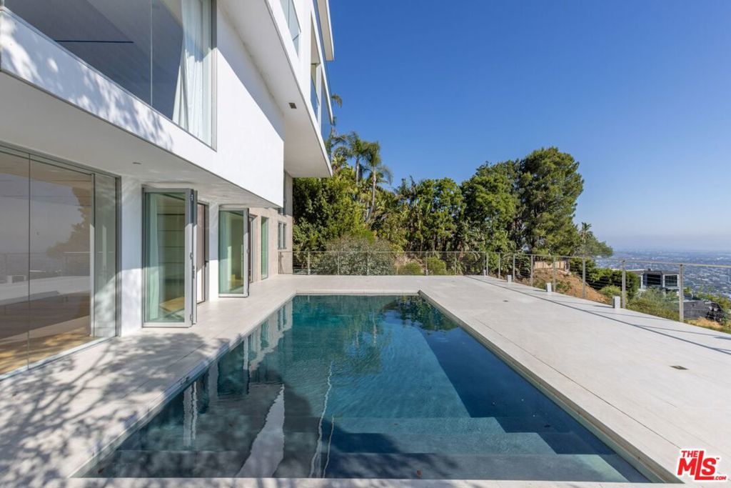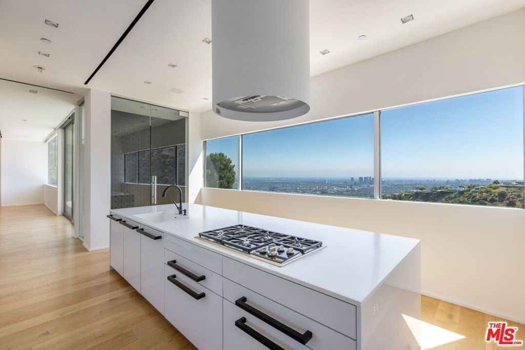 Perched above the city with unobstructed panoramic views from Downtown Los Angeles to the Pacific Ocean and Catalina Island, this contemporary masterpiece defines elevated living. Located just moments from the iconic Sunset Boulevard, the home offers the rare combination of architectural distinction, refined design, and everyday comfort.With 4 spacious bedrooms and 6 elegantly appointed bathrooms, the layout is designed for both grand entertaining and relaxed day-to-day living. The oversized primary suite is a true sanctuary featuring dramatic floor-to-ceiling glass that captures breathtaking views, two luxurious full bathrooms, a large custom walk-in closet, and a private balcony perfect for morning coffee or sunset wind-downs.At the heart of the home, a stunning Boffi kitchen is outfitted with top-of-the-line Miele and Wolf appliances, ideal for hosting with both style and ease. The open-concept living areas flow seamlessly to the expansive pool deck, where sweeping city-to-ocean views set the stage for unforgettable entertaining or quiet relaxation under the stars.Additional highlights include a custom wine cellar, a spa-like steam shower, and smart home features such as Dom Vision automation, in-wall iPads, built-in surround sound, electronic shades, and sleek Boffi vanities and fixtures throughout.Whether you're hosting a lively soire or enjoying a private moment with the skyline, this home offers a lifestyle that's as luxurious as it is livable.