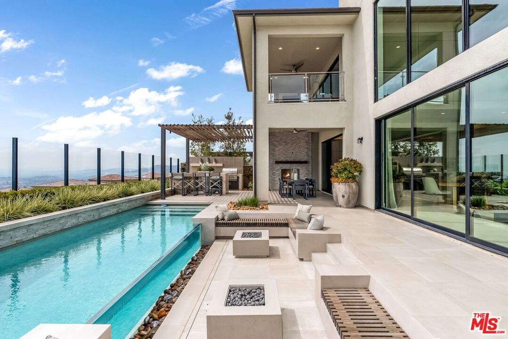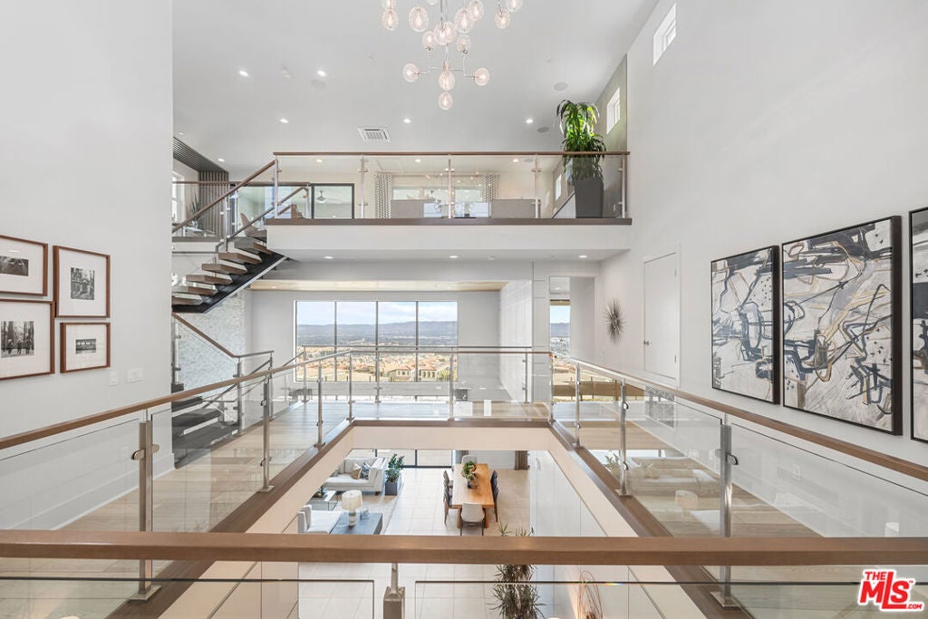 Welcome to unparalleled elegance in the prestigious, guard-gated community of Westcliffe at Porter Ranch Summit Collection. This never-before-lived-in Santi Elite MODEL HOME is a one-of-a-kind masterpiece, meticulously curated by Toll Brothers' award-winning interior design team with sophisticated finishes and designer details throughout. Perched high on a scenic hillside, the home offers breathtaking panoramic views of city lights stretching across the valley to the south an extraordinary backdrop for luxurious daily living. Step through the inviting covered entry into a grand two-story foyer, which flows seamlessly into a stunning great room, an expansive casual dining area, and a luxury outdoor living space perfect for entertaining or relaxing in style. The gourmet kitchen is a chef's dream, featuring a large center island with breakfast bar, ample cabinetry, extensive counter space, and a spacious walk-in pantry. This highly upgraded residence features 5 spacious bedrooms, each with its own private en-suite bathroom, including a convenient first-floor guest suite perfect for multigenerational living or accommodating visitors in comfort. A dedicated office/flex space offers versatility for remote work, a study zone, or a creative studio. On the third floor, an expansive media/bonus room includes a powder room and a covered deck an ideal setting for a home theater, lounge, or private escape. The luxurious primary suite is a true sanctuary, highlighted by a massive walk-in closet and a spa-inspired bathroom with dual vanities, a deep soaking tub, a luxe walk-in shower with seating, and a private water closet. Upstairs, a generous loft connects the secondary bedrooms, all offering ample closet space and private en-suite baths, ensuring comfort and privacy for every member of the household. Additional features include a stylish main-level powder room, a centrally located laundry room, and thoughtfully designed built-in storage throughout the home. Ideally located just minutes from the highly rated K-8 Porter Ranch Community School and the prestigious Sierra Canyon School, this extraordinary residence offers a rare blend of comfort, convenience, and sophistication. This is the final opportunity to own this exclusive designer model home. Luxury, elevated your dream lifestyle awaits.