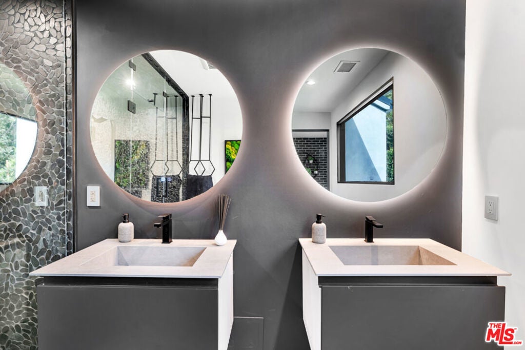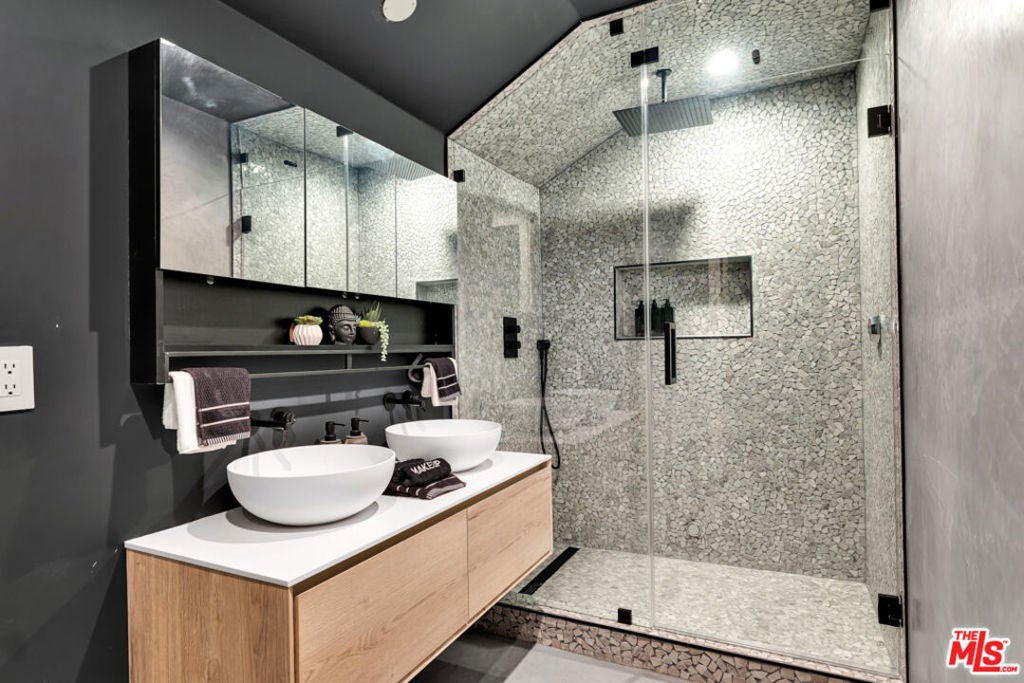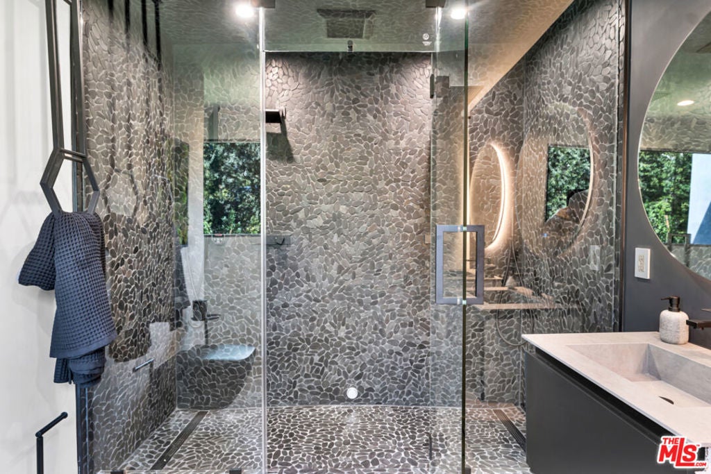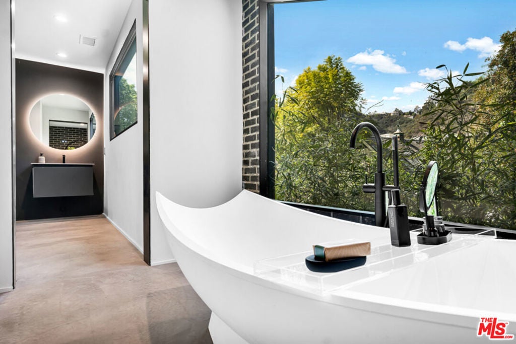 Highly motivated sellers! BRING ALL OFFERS!! Seller says "Just sell it!" Presenting an unparalleled masterpiece of modern architecture! This newly reimagined estate is located within one of the most coveted enclaves of prestigious Lower Bel Air and just mere moments from the iconic Bel Air Hotel. Resting on over half an acre of verdant grounds, this elegant retreat is a rare find, offering the perfect balance of sophisticated luxury and serene privacy. Expertly curated for the most discerning buyer by famed residential design-guru "Claudia" and her AZUL design team, this extraordinary 5-bedroom, 5.5-bathroom residence boasts soaring and sky-lit 18-foot ceilings that create a bright and airy, loft-inspired atmosphere throughout. With fire-proof metal roofing and interlocking fold-away steel and glass walls, every detail has been thoughtfully considered for a lifestyle of indoor-outdoor enjoyment and understated elegance. The well proportioned floorplan features lavish en-suite bedrooms, with exceptional finishes and indulgent steam showers. Every bathroom is an ode to refined luxury, outfitted with Graff designs and stunning Italian fixtures from Gessi and Fantini. The private primary suite is nothing short of a sanctuary, with a spa-inspired bathroom that includes a freestanding soaking tub, walk-in steam shower, and generous dual vanities, a cavernous walk-in closet, along with private indoor and outdoor lounging areas. The one-of-a-kind kitchen, curated by the renowned DI Group, is a modern chef's dream, complete with top-tier (hidden) Miele appliances, bespoke cabinetry, a drinking water system purified via reverse osmosis and a hyper-filtration system, and an expansive open-plan layout that seamlessly connects the kitchen, living areas, and a resort-like backyard, creating the ultimate setting for both intimate gatherings and grand entertaining. Step outside seamlessly to discover a spectacular private oasis, offering a sophisticated alfresco dining experience with corner bar, an elevated pickleball court with private lounging area, along with a breathtaking knoll top platform that overlooks lush tree tops, villas and sunsets over the mountains, an idyllic space for both relaxation and celebration. In addition, the property includes an impeccably designed and permitted guest house (ADU) for visitors, extended family, exclusive office or potential for rental income. This unique Bel Air estate offers an unmatched level of exclusivity, craftsmanship, and timeless elegance. Opportunities like this are rare. Your private Bel Air sanctuary awaits!