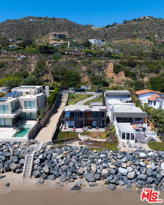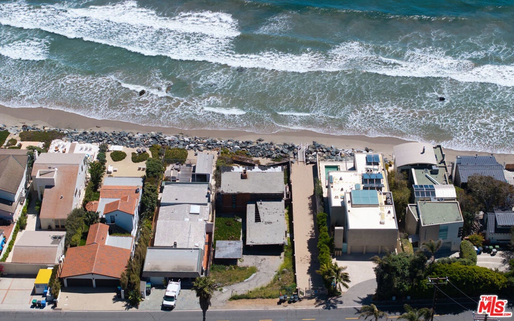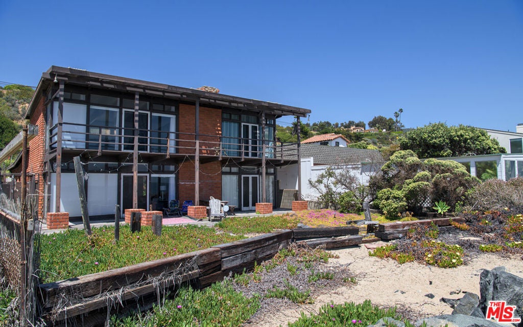 An exceptional opportunity on the prestigious and highly sought-after Broad Beach Road. This classic mid-century home, built in 1953, offers breathtaking ocean views and direct access to one of Malibu's most iconic stretches of coastline. The main level welcomes you with exposed brick, rustic hardwood floors, soaring beamed ceilings, and expansive floor-to-ceiling windows that bathe the interior in natural light. A wood-burning fireplace adds warmth and charm, while the lush backyard, adorned with mature succulents, invites you to unwind in a serene coastal setting.Upstairs, the primary bedroom is complemented by a secondary living area featuring another wood-burning fireplace and opening onto a generous deck with sweeping views of the Pacific. With approximately 50 feet of beach frontage and nearly 2,000 square feet of living space, this property presents the perfect canvas to create your dream Malibu retreat.