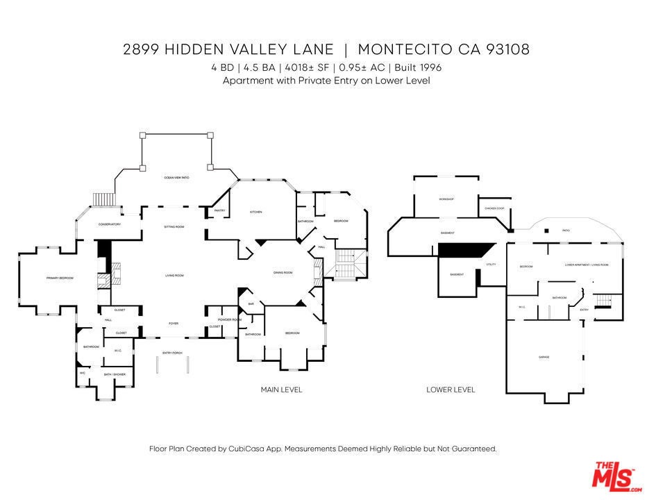 Elegance meets tranquility at this stunning Palladian style estate in Montecito. Custom built by craftsmen in 1996 to last for centuries, the architectural elements add character and offer timeless appeal. Spanning an impressive 4,018 square feet with 4 bedroom/5 baths, this unique Italianesque residence showcases picturesque ocean views and peaceful mountain vistas.Step inside to discover interiors adorned with original iron fixtures, classic lighting and wide plank authentic Douglas fir floorsall showcasing a rich patina that adds timeless character. The main floor has a historic cruciform layout with two companion fireplaces at each end anchoring the great room and adjacent oversized dining room, creating a warm and ambient atmosphere for gatherings and setting the tone for a grand retreat. An impressive wrought iron chandelier adorns the soaring vaulted ceilings in the center. A formal power room greets you upon entering the home. The charming original ocean view kitchen has a classic layout with a traditional center table with easy flow to the dining and great rooms.On the primary wing you will find the oversized private suite with high vaulted ceilings with cozy fireplace. There is no shortage of closets and a spacious spa like bathroom. Two additional well appointed guest rooms with en suite bathrooms also reside on the main level.The expansive back terrace offers an ideal setting for al fresco dining and relaxation where you can soak in the stunning ocean and mountain views while enjoying the gentle coastal breeze. Or escape to the cozy glass window enclosed conservatory off the living room to connect with nature, meditate or relax with a book.The lower level retreat offers an oversized private apartment with a well-equipped kitchen and family roomperfect for extended family or accommodating guests. The separate entrance ensures that visitors can enjoy their stay without intruding on the main living spaces.As you explore the nearly one acre grounds, you'll be captivated by the vast gardens that surround the estate with plenty of room to expand on the existing landscaping or add a pool or ADU.This property embodies a traditional legacy estate compound offering incredible upside potential and the relaxed Montecito lifestyleperfect for those who appreciate the harmony of luxury and nature. Experience the best of both worlds in this serene and sophisticated haven.