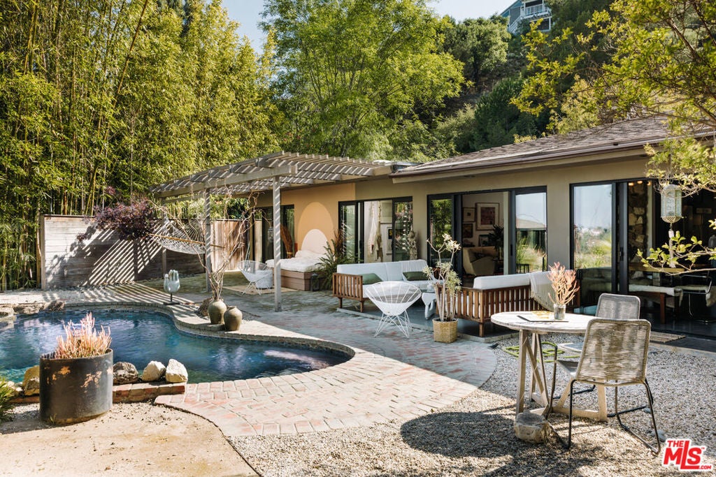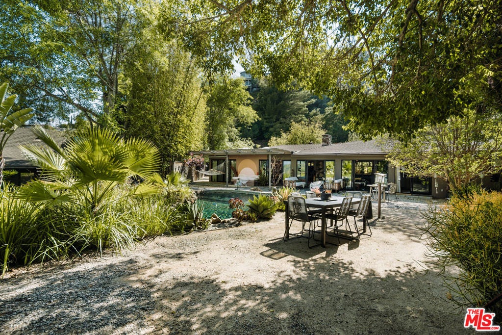 This listing features 2230 Banyan Drive as a standalone offering. It may also be purchased in conjunction with the adjacent residence at 2220 Banyan Drive for an additional cost of $6,250,000. This midcentury-inspired retreat spans 2,700 square feet with 3 bedrooms and 2.5 bathrooms, thoughtfully situated on a generous 9,352 square foot lot. As you enter the courtyard, you're greeted by a rare baobab tree, setting a unique and calm tone for rest of the home. Designed to evoke warmth and tranquility, the structure centers around a dramatic stone fireplace that anchors the open-concept living space, truly balancing elegance with comfort as soon as you enter the home. The custom kitchen flows effortlessly into the dining room and other living spaces, while an entire eastern wall of glass sliding doors welcomes in the morning light that extends out to the patio and pool. The north wing features two delightful bedrooms, a full bath, and a laundry area; ideal for guests, children, or a quiet work-from-home zone. Tucked away in its own private wing, the primary suite opens to a secluded courtyard that feels like a personal wellness retreat. Additional sliding doors lead directly from the suite to the backyard pool, blending indoor serenity with outdoor ease. Warm hardwood floors, thoughtful sightlines, and a true sense of privacy elevate the experience throughout. Outside, a sunlit backyard invites you to unwind with a sparkling pool, shaded lounge areas, and mature landscaping that completes the tranquil atmosphere. Sophisticated, soulful, and serene, 2230 Banyan is a timeless offering.