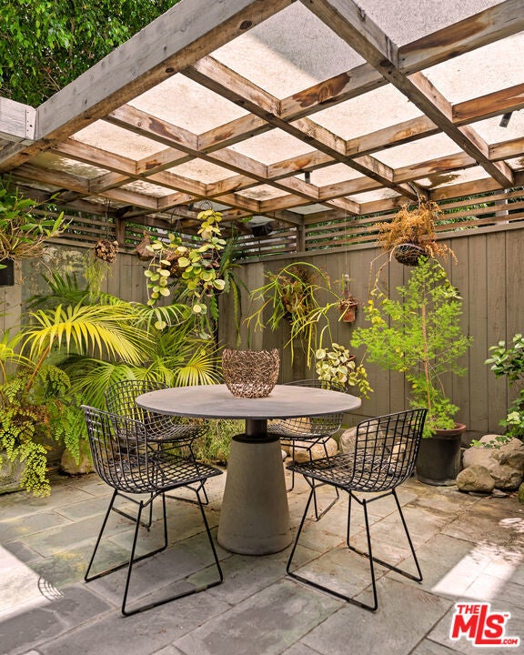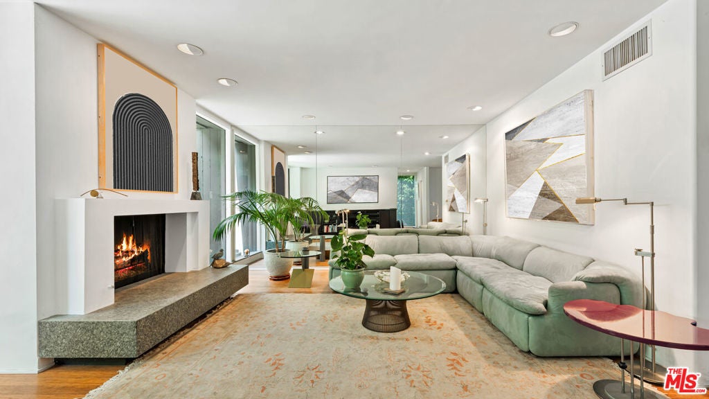 Located in a prestigious enclave, this sophisticated coastal condo offers refined living with every modern convenience. A private community pool and exterior camera system provide peace of mind and an elevated lifestyle. The entry welcomes you with stone tile floors and a mirrored accent wall, setting a polished tone. Ascend the stairs to the main living floor where curated details and natural textures define the space.The powder room features stone counters, a modern sink, and a sleek vanity. Just ahead, the living room boasts warm wood floors, a fireplace with a stone hearth, recessed lighting, and sliding glass doors that open to a private patio. Ideal for seamless entertaining, the adjacent dining area features additional built-ins and a stone sideboard. A nearby wet bar includes granite counters, a sink, wine storage racks, and ample cabinetry, perfect for hosting.The chef's kitchen is thoughtfully appointed with granite counters, a four-burner range, Gaggenau oven and hood fan, Miele dishwasher, and Liebherr fridge and freezer. A sliding glass door opens to a tranquil seating area with a fountain, enhancing the indoor-outdoor flow. The Nest smart thermostat system adds intuitive climate control throughout.Upstairs, the first landing offers convenient built-in storage. The expansive primary suite impresses with carpeted floors, soaring wood-beamed ceilings, a fireplace, and a large sitting area with built-in shelving and a TV. A secondary closet includes a built-in bar and mini fridge, while the large wardrobe features custom built-ins. The primary bath includes a high skylit ceiling, stone details, a spacious shower stall, and a refined vanity with built-in storage.A secondary bedroom also includes closet space with mirrored doors, built-in drawers and shelves, and a sliding wood door leading to a luxurious en-suite bathroom with stone counters, a makeup vanity, and a shower over tub.The private patio extends the home's appeal with stone tile floors, a partial cover, a built-in music system, an outdoor fireplace, storage, and a charming fountain. Additional amenities include central air and heat, a mudroom/laundry area with stacked Miele units, and a two-car garage with ample storage. This condo is a true turnkey sanctuary in a coveted coastal setting.