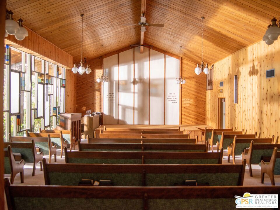 A rare and creative opportunity in the heart of Idyllwild, this architecturally unique former church is full of character and midcentury charm. Built in 1956, the structure spans 3,248 square feet on a .24-acre lot with R-3A zoning. It's a great fit for a daycare, community space, or residential conversion (see provided renderings).The midcentury details really stand out here-soaring ceilings, clean lines, and those colorful panel-stained glass windows that pour in light and give the whole space a warm, welcoming feel. The layout includes a formal lobby, three half-baths, several versatile rooms, and plenty of storage, offering flexibility for all kinds of creative or commercial ideas.Out back, there's a private courtyard for outdoor gatherings or quiet moments. And just across the street, Strawberry Creek adds a peaceful, natural element to the setting. All of this is just steps from the center of town. Properties like this don't come along often. This one has soul and endless potential.
