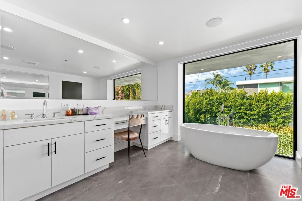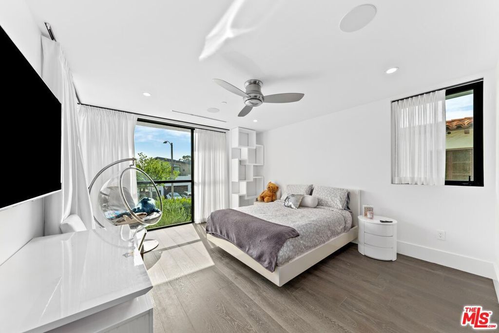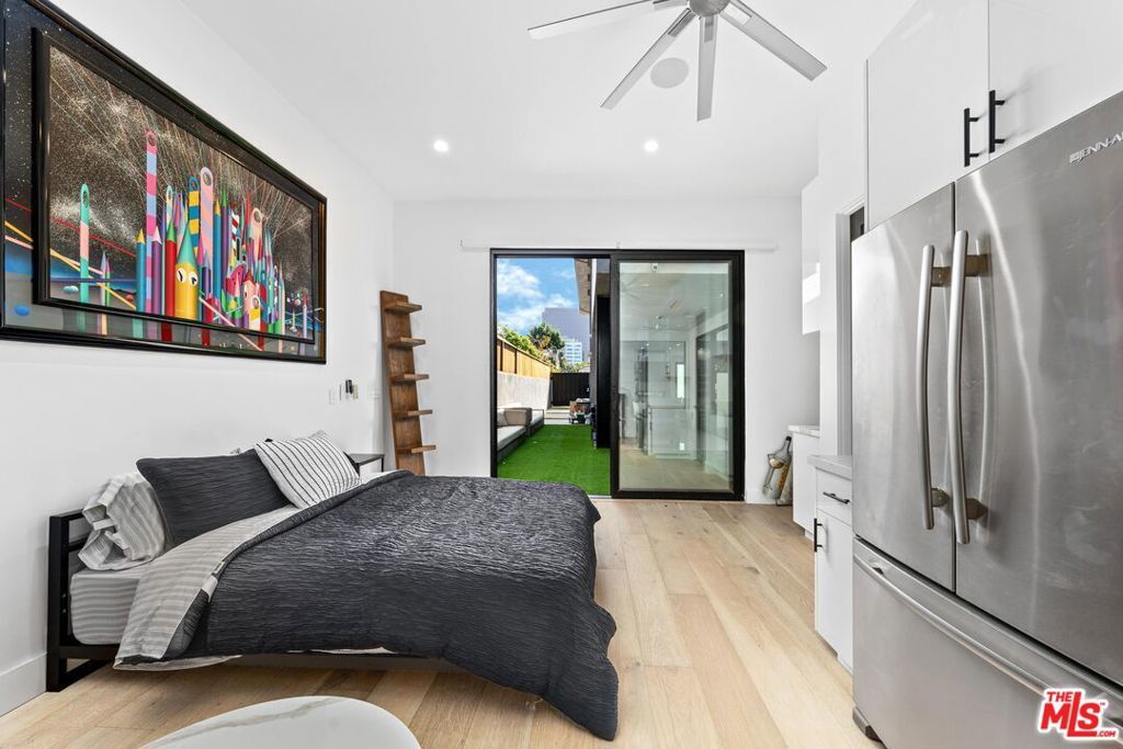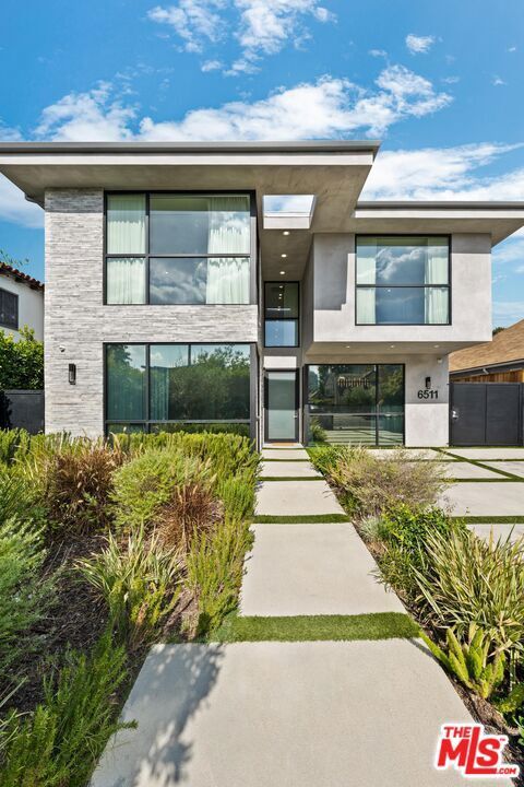 Breathtaking new construction in prime Beverly Grove! Access through your own private automatic gate where you are greeted with expansive floor to ceiling Fleetwood windows and doors. First floor features 1 en-suite bedroom and additional powder room. Four more bedrooms and a large family room are on the second floor. The master suite is complete with a private balcony, expansive bathroom, large soaking tub, and a spacious walk-in closet! The main floor features a gourmet open-plan kitchen perfect for entertaining guests! Large dining area and living room on first level flow easily to a beautiful patio. A separate guest house has a big bedroom (currently used as a family room ) with kitchen and full bathroom - great maid's quarters for the right buyer. The backyard has lush green grass, built in BBQ, pool, hot tub, waterfall, and open air cabana! Detailed finishes include hardwood floors; Italian porcelain bathrooms; Nest air on each floor; surround sound; cameras; DVR; alarm and full Control 4 smart home system. Home comes complete with a large rooftop deck with 360 degree panoramic views! Enjoy staying in or just being a walk away to the heart of W. 3rd St with trendy dining and shopping!