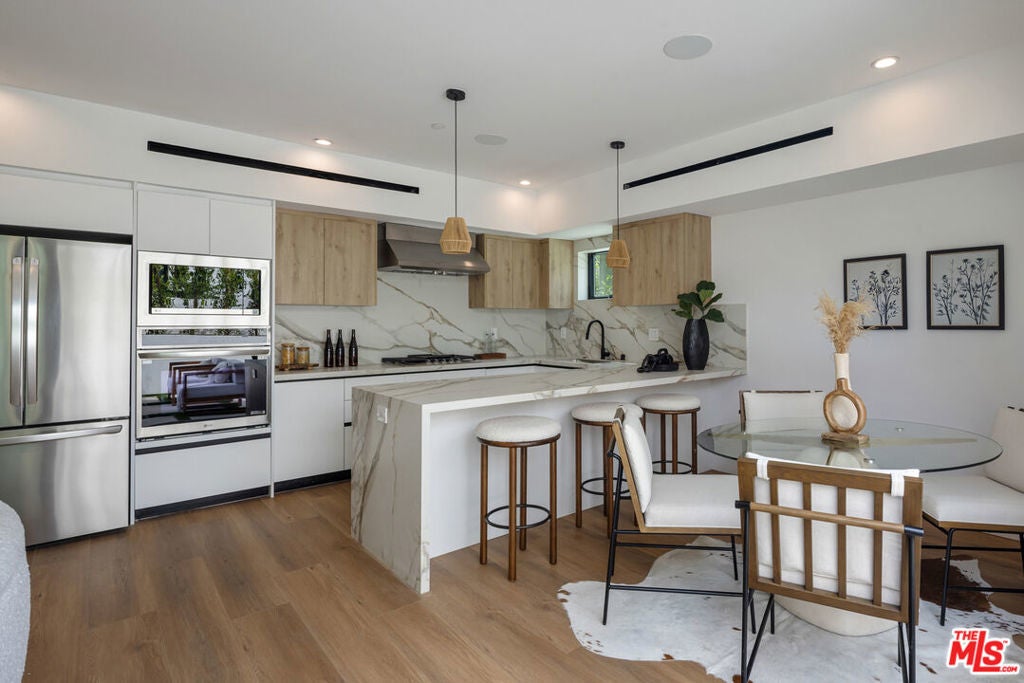 Introducing The Bellevue Collection, a rare and refined offering a brand-new luxury residence nestled on a private cul-de-sac in the heart of Echo Park. Upon entry, the home opens to a striking, light-filled layout where floor-to-ceiling windows and soaring ceilings give way to a bright, open-concept living experience. Ascend to the show-stopping rooftop deck, where panoramic views of the Downtown LA skyline take center stage. Whether enjoying morning coffee or an evening sunset gathering, the rooftop offers a serene and private retreat above the city, complete with room for lounging, dining and soaking in the surrounding beauty. The additional bedrooms are each with en-suite baths providing ideal spaces for guests home offices or creative studios. Additional features include a private backyard, a large two-car garage (approx. 500 SF) and an exclusive private deck (approx. 589 SF). The kitchen is designed for both form and function with high-end appliances, modern cabinetry and elegant surfaces that elevate the culinary experience. Every detail is crafted for comfort and style, offering ample storage, clean finishes and a refined palette that speaks to contemporary luxury. Located minutes from Echo Park Lake, Sunset Junction, Dodger Stadium and Downtown LA, this residence is surrounded by the best of Los Angeles living. Crafted for those with discerning taste, combining architectural integrity, functional design and breathtaking views into one stunning offering.
