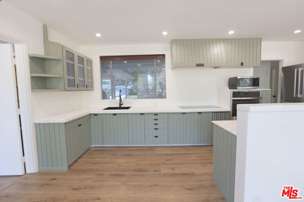 Come home to this reduced and reimagined stunning mid-century modern bungalow in highly sought after Lake Balboa. Introduced as the "Trade Secrets House," by builder Ernest A. Becker, it was designed with openness and natural light in mind. The gracious living room boasts massive windows that provide beautiful natural light. The charming kitchen comes fully equipped with stove and range hood, stainless steel refrigerator, dishwasher, and microwave. The adjacent dining area is ready for entertaining, and the built-in window seating is the perfect place for your morning cup of coffee. Three spacious bedrooms offer options galore. The primary suite contains contains ample space for a home office nook. The third bedroom is currently set up as a den/office that could easily be converted. The renovated primary bath provides a spa-like retreat. Step outside to find ample entertaining space under the covered patio, with lush greenery and abundant seating options in the backyard. Recent upgrades include new double-pane windows in multiple rooms, complete bathroom renovations, new flooring, and an updated kitchen. In addition, both the exterior and interior have been lovingly repainted. This is a must see! Current owners have an assumable mortgage (under 3)!