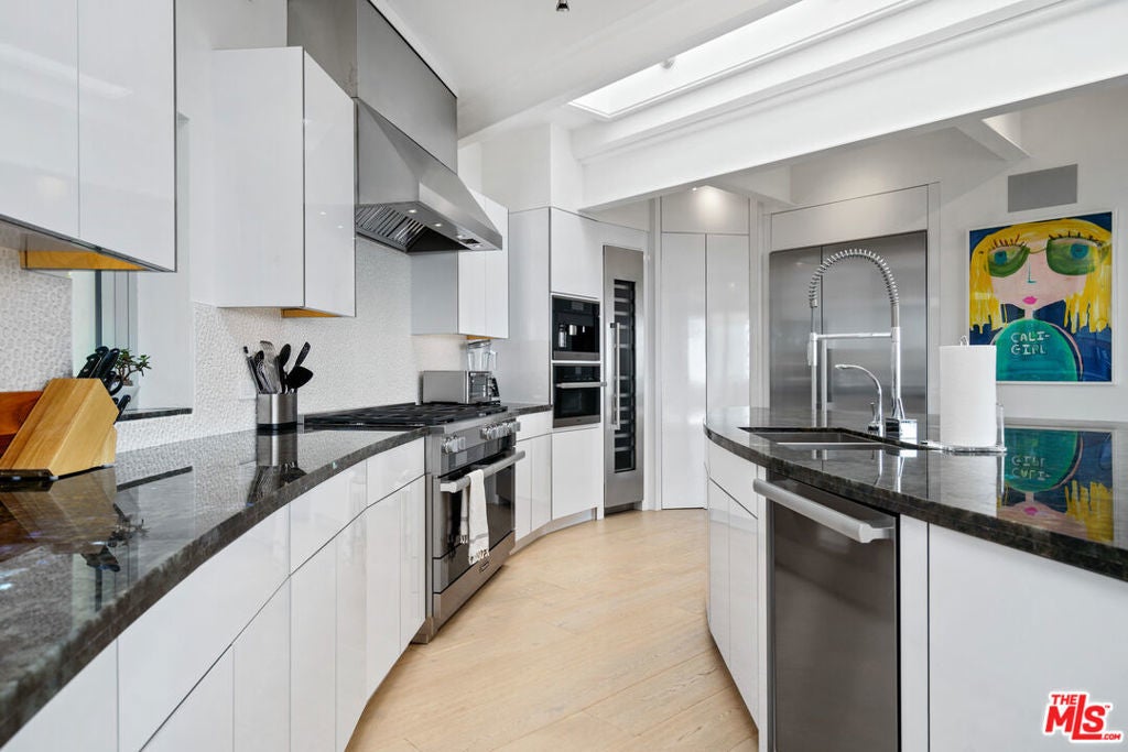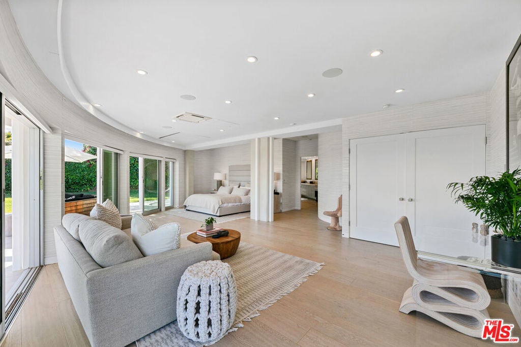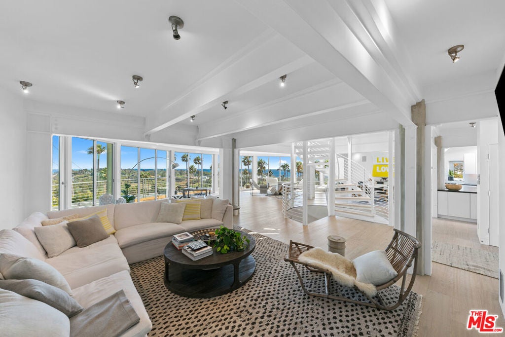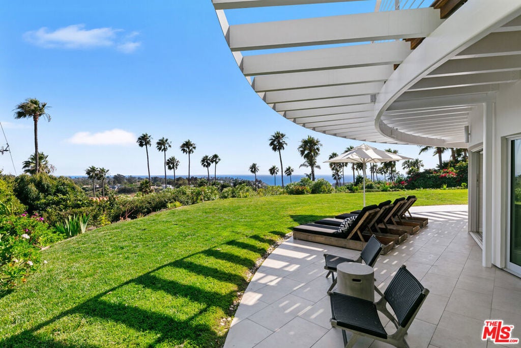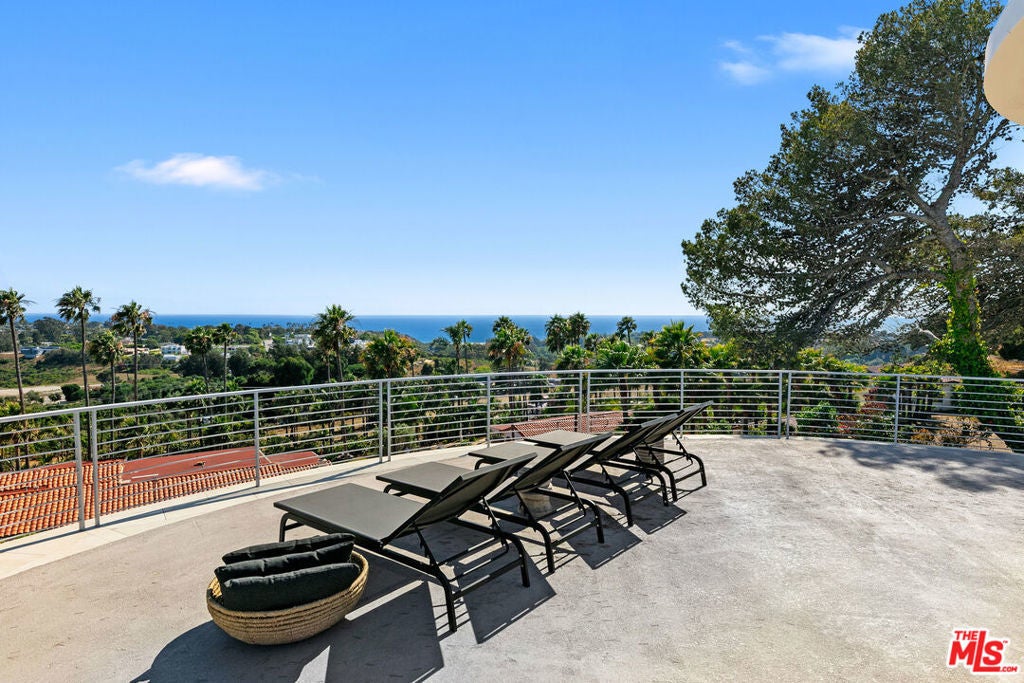 A stunning architectural masterpiece where privacy and creativity converge in the exclusive gated enclave of Cavalleri. Fully renovated with impeccable designer finishes, this home features floor-to-ceiling glass walls, White Oak floors, and a central spiral staircase. Enjoy panoramic ocean and mountain views from multiple decks, including a newly redone rooftop deck offering 360-degree vistas, an indoor wet bar, a built-in BBQ, and a fire pit. The entry level is an entertainer's dream with an open-concept layout, featuring multiple seating areas, serene coastal views, and stacking glass doors that lead onto a wrap-around deck. The dining area flows seamlessly into the chef's kitchen, boasting Miele appliances, Labradorite stone countertops, a gas range with dual ovens, and a large island with breakfast bar seating. The luxurious primary suite overlooks the sparkling Pacific and includes a comfortable sitting area, motorized drop-down television, spa-like bath with dual rain steam shower, free-standing porcelain soaking tub, and direct access to a sun-soaked patio. Two additional en-suite bedrooms and a detached guest suite provide ample space for family and guests. Outside, a grassy lawn wraps around the home, and there are plans available for a future pool. Additional features include a full-home Sonos system, remote-controlled blackout shades, a laundry room, and a 2-car garage. All set within a private, gated community on a quiet cul-de-sac with convenient trail access and a central location near local markets, schools, restaurants, pristine beaches, and more. Experience Malibu at its finest, where breathtaking beauty and refined coastal elegance come together in one remarkable home.