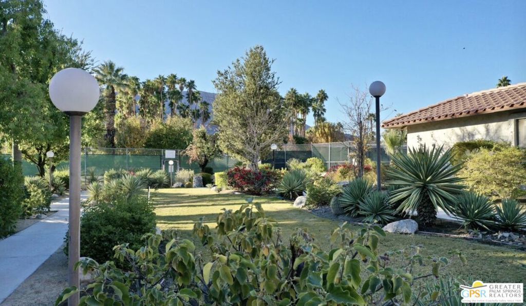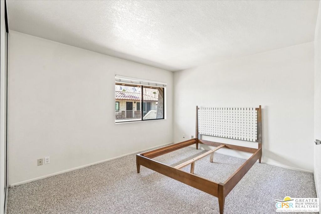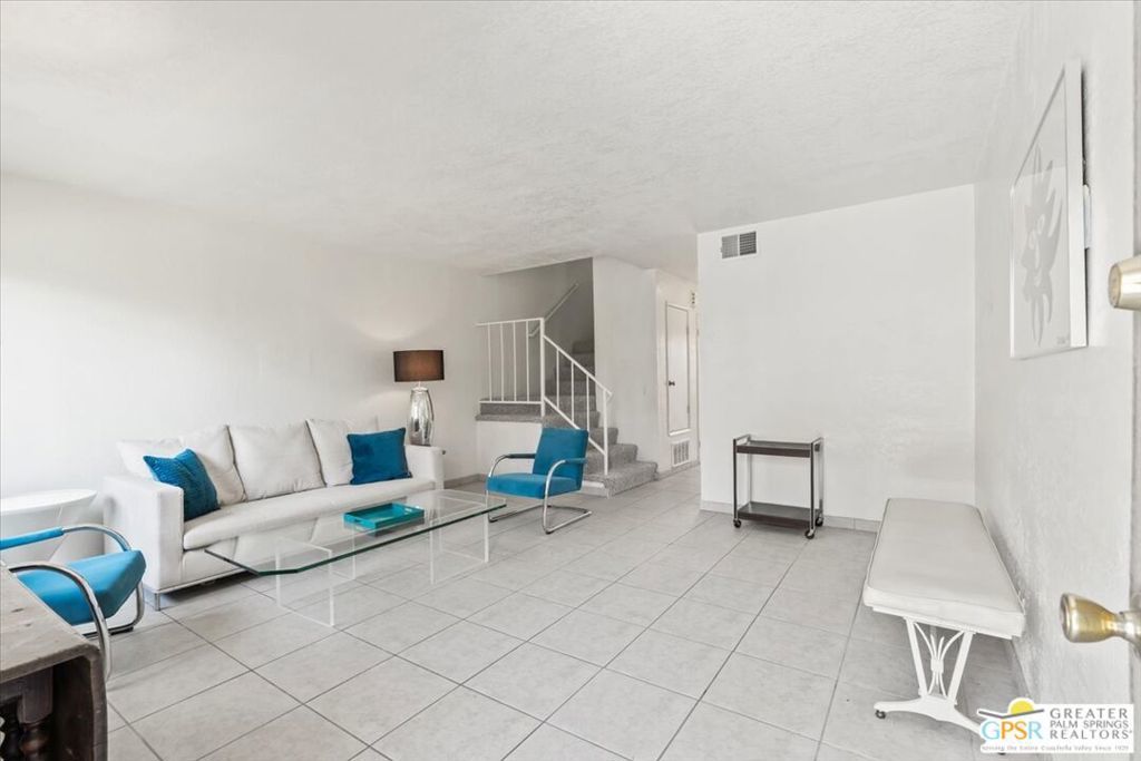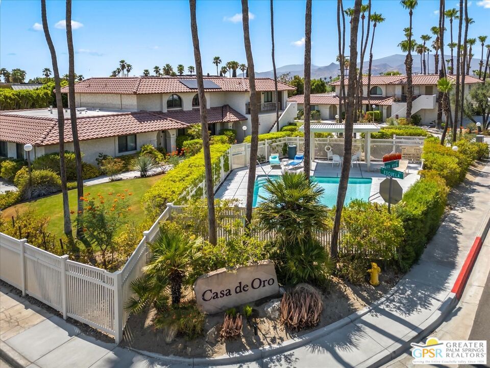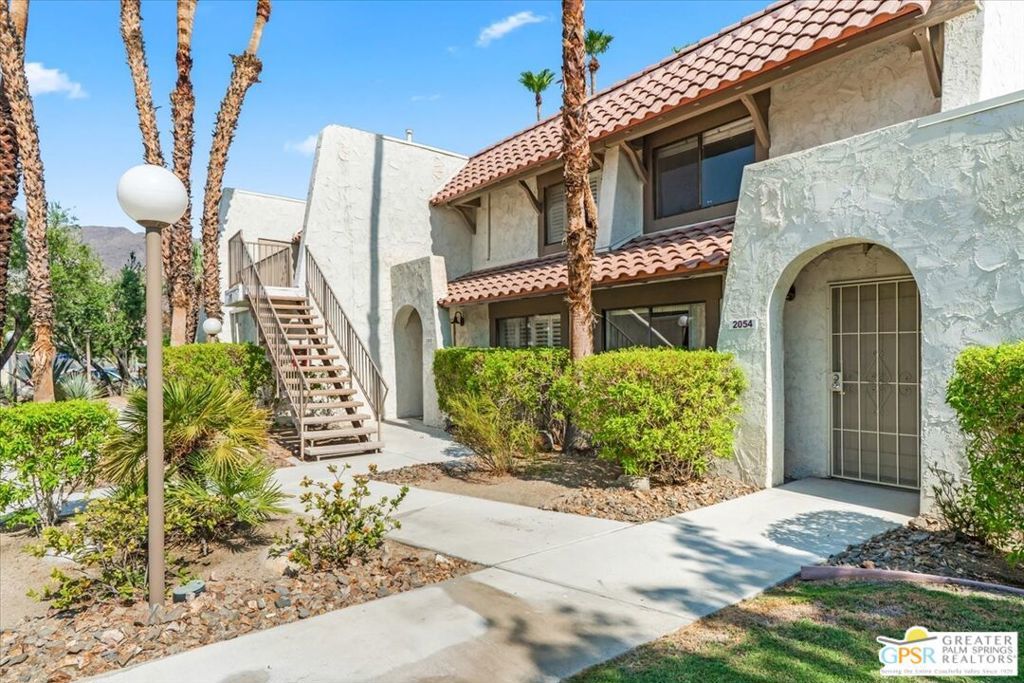 Most affordable Palm Springs condo with a private garage as of 10/8/25. Own your own fee simple condo! Welcome to the Casa De Oro subdivision in the Little Tuscany area of Palm Springs! This 2 bedroom 2 bath townhome features new carpet upstairs! MLS data shows unit had plumbing and electrical updates in 2005. Kitchen has recessed lighting and there is a large private patio to enjoy! Entertain at home, on the tennis court, by the pool or go out and enjoy wonderful uptown Palm Springs! Some famous nearby businesses include Billy Reed's Restaurant Est. 1975, The Rivera Palm Springs Hotel Est. 1959, Boozehounds Est. 2020, and Toucans Tiki Lounge!! Your quintessential Palm Springs lifestyle is here! Buyer to verify all info.