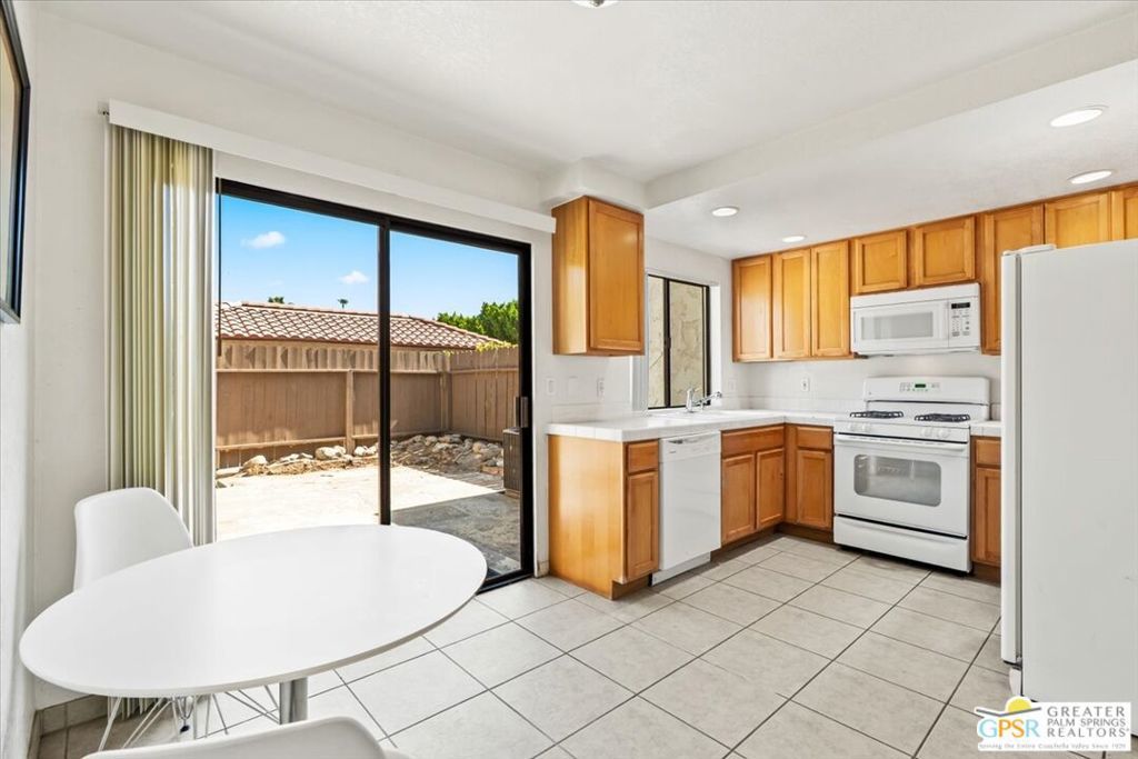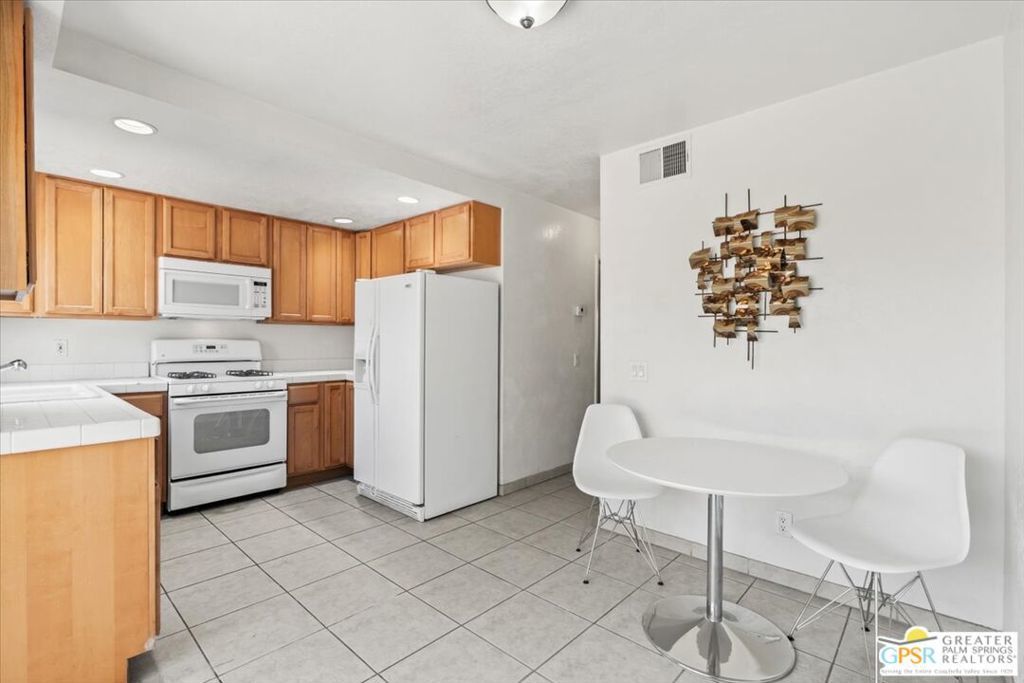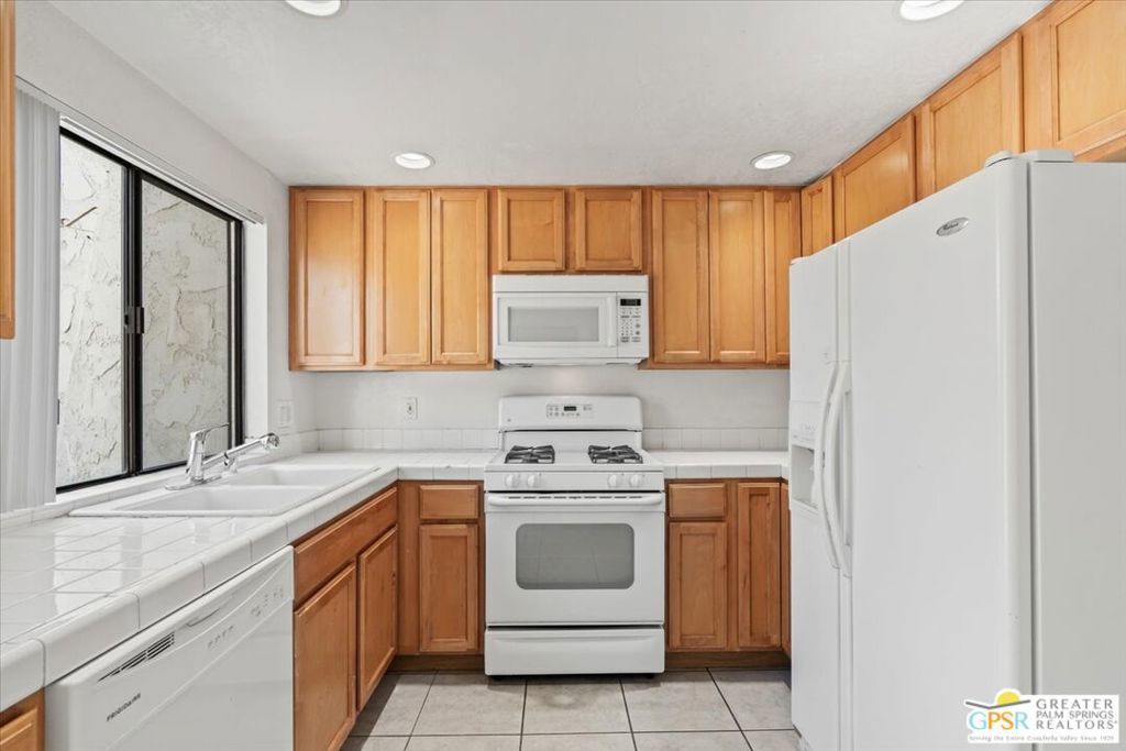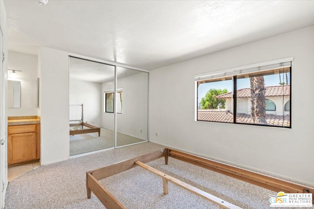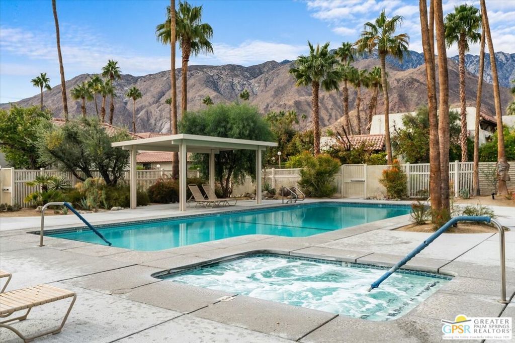 Most affordable Palm Springs condo with a private garage as of 10/8/25. Own your own fee simple condo! Welcome to the Casa De Oro subdivision in the Little Tuscany area of Palm Springs! This 2 bedroom 2 bath townhome features new carpet upstairs! MLS data shows unit had plumbing and electrical updates in 2005. Kitchen has recessed lighting and there is a large private patio to enjoy! Entertain at home, on the tennis court, by the pool or go out and enjoy wonderful uptown Palm Springs! Some famous nearby businesses include Billy Reed's Restaurant Est. 1975, The Rivera Palm Springs Hotel Est. 1959, Boozehounds Est. 2020, and Toucans Tiki Lounge!! Your quintessential Palm Springs lifestyle is here! Buyer to verify all info.