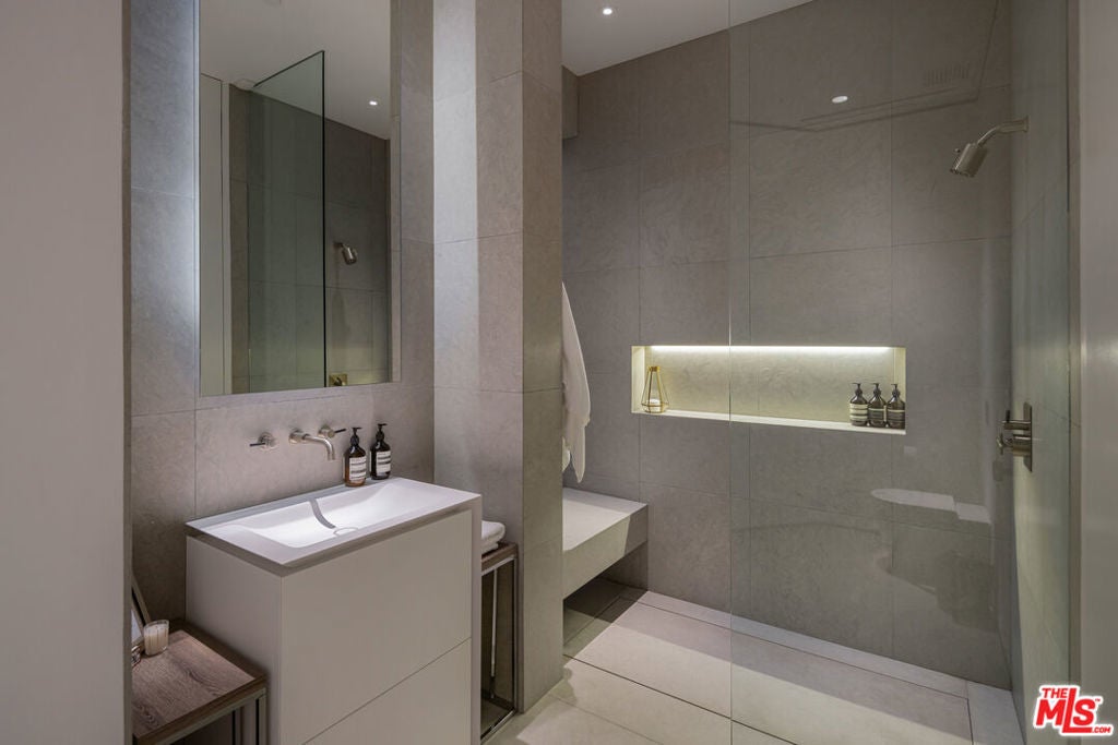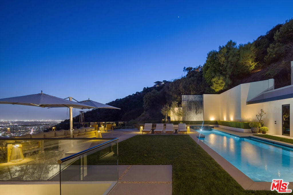 Tucked away in the prestigious Bird Streets, this private contemporary compound blends refined design with absolute privacy. Thoughtfully reimagined by the renowned AD100 firm Clements Design, the residence spans over 8,000 square feet on a generous 23,100-square-foot lot, offering a seamless indoor-outdoor lifestyle framed by sweeping city views through disappearing walls of glass.Light-filled living spaces include an airy great room with a striking fireplace and skylights that enhance the home's serene atmosphere. The chef's kitchen is equally impressive, outfitted with Miele appliances, an oversized island, WineMate-cooled wine wall, and a full butler's pantry.The primary suite is a calming retreat with a fireplace, motorized shades, direct access to the yard, and a spa-inspired bath featuring a soaking tub, glass-enclosed steam shower, and a custom walk-in closet. Designed for entertaining, the outdoor areas include an 80-foot pool with a dramatic marble waterfall, spa, multiple lawns, and a tiered deck with a thriving vegetable garden by Heart Beet Gardening. The lower level features a private guest suite, gym with separate entry, home office, and a state-of-the-art theater with lounge and bar. Additional highlights include a library with floating walnut shelves, secondary lounge with built-in bar, Crestron smart home system, and a resurfaced garage. Moments from the Sunset Strip and Beverly Hills, this one-of-a-kind estate offers the ultimate blend of luxury, privacy, and access to the best of Los Angeles.
