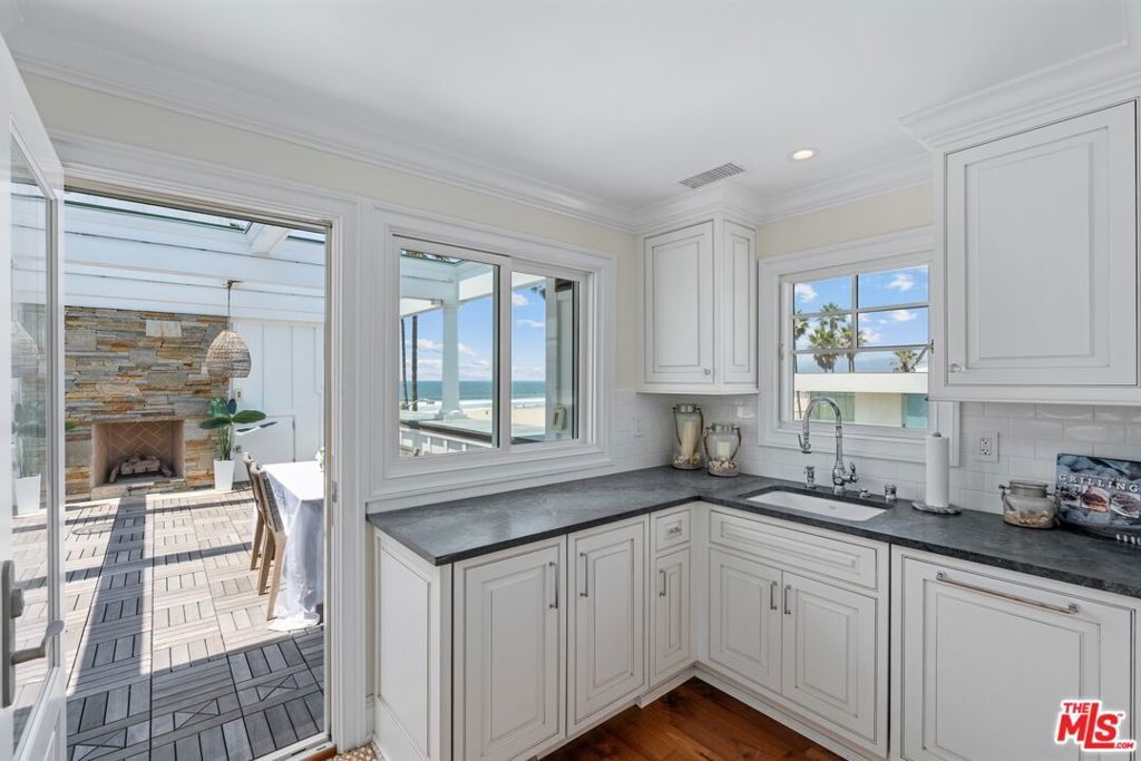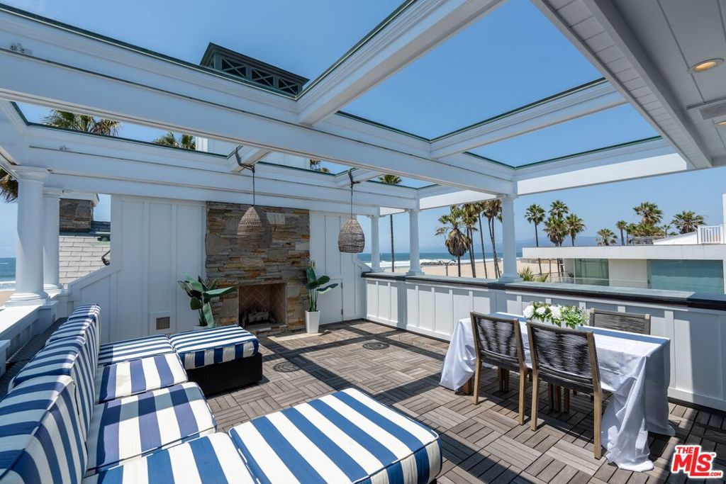 Stunning Cape Cod-style home situated in the most ideal location on Venice beach. Exquisite details and quality craftsmanship throughout plus a four stop elevator. Step into the living room where the beach views surround you with walls of sliding glass that lead to an expansive balcony with outdoor fire feature. Inside there are french limestone and walnut flooring, gorgeous fireplace with built-ins and stunning paneled ceilings. Chef's kitchen with island, custom cabinetry, stone counters, breakfast nook, walk-in pantry, built in espresso maker and bar seating. Oceanfront primary suite with outdoor balcony, fireplace, sitting area, walk-in closet. Primary spa bath done in Calcutta marble with steam shower and jetted tub. Additional office/den with balcony and laundry complete the primary space. There are two additional private en-suite bedrooms with walk-in closets and balconies. Spacious bonus room ideal for gym, home theater or studio. Incredible rooftop deck with fireplace, built in barbecue and an indoor kitchen perfect for entertaining. Private 2-car garage + 1 outdoor parking space. Steps to Venice Canals, Abbott Kinney, the Marina channel, weekly farmers markets and many fabulous eateries